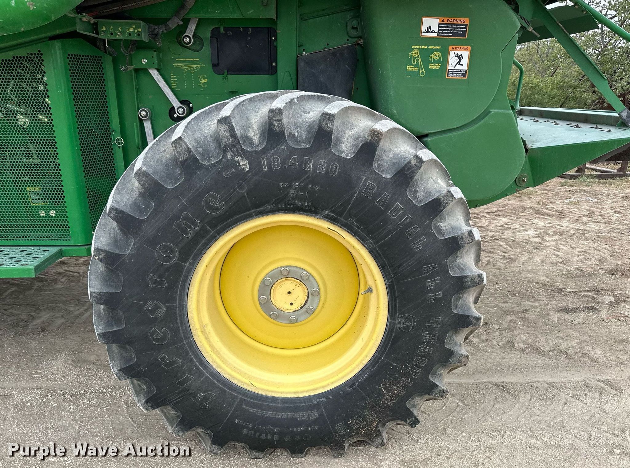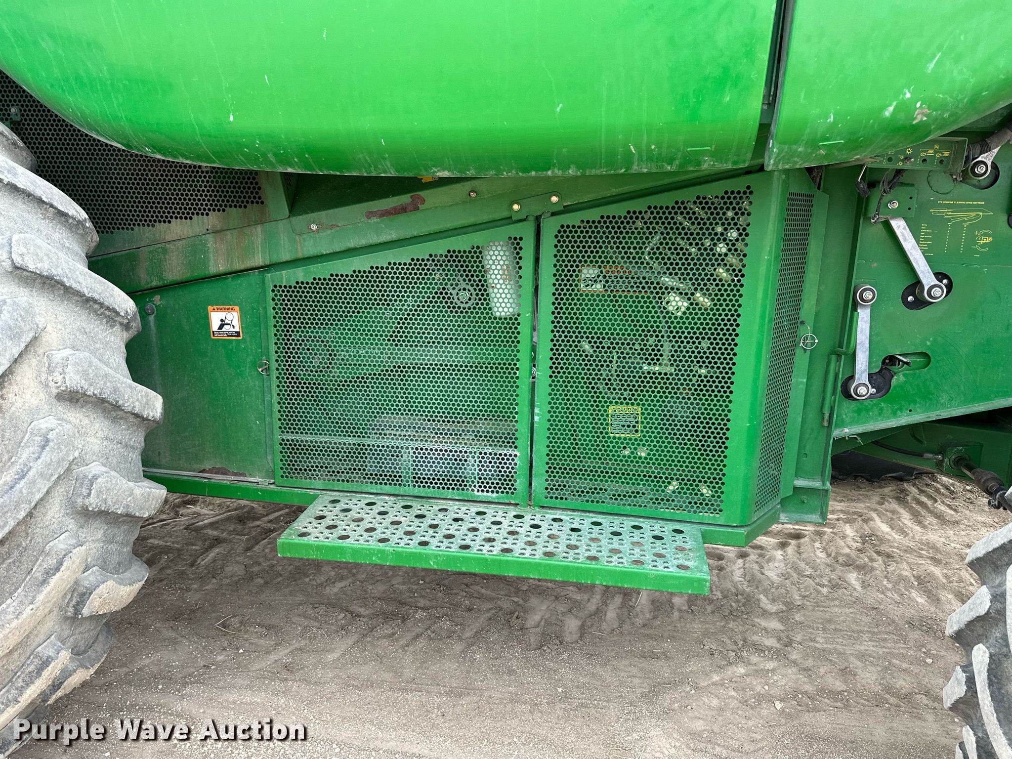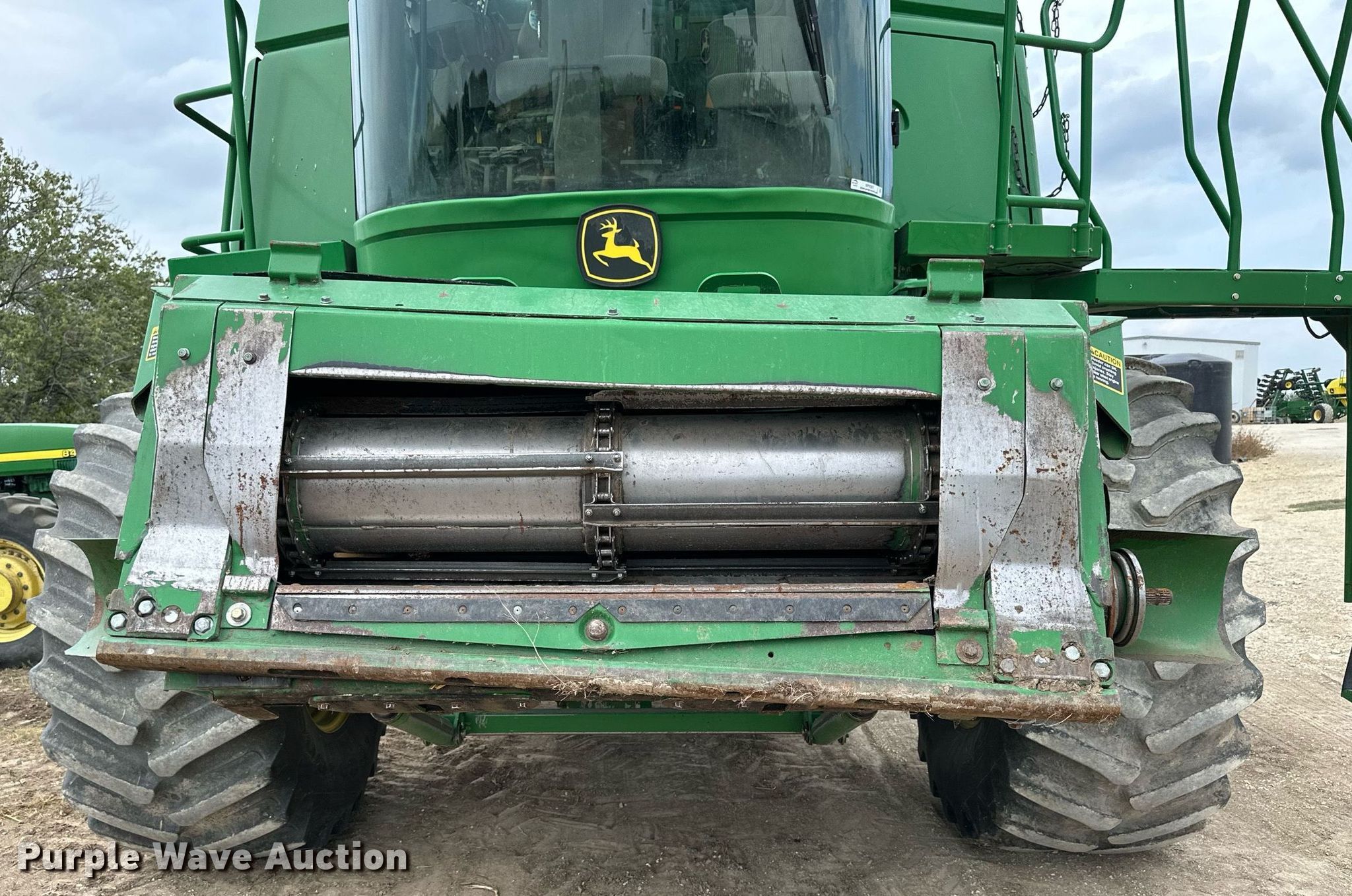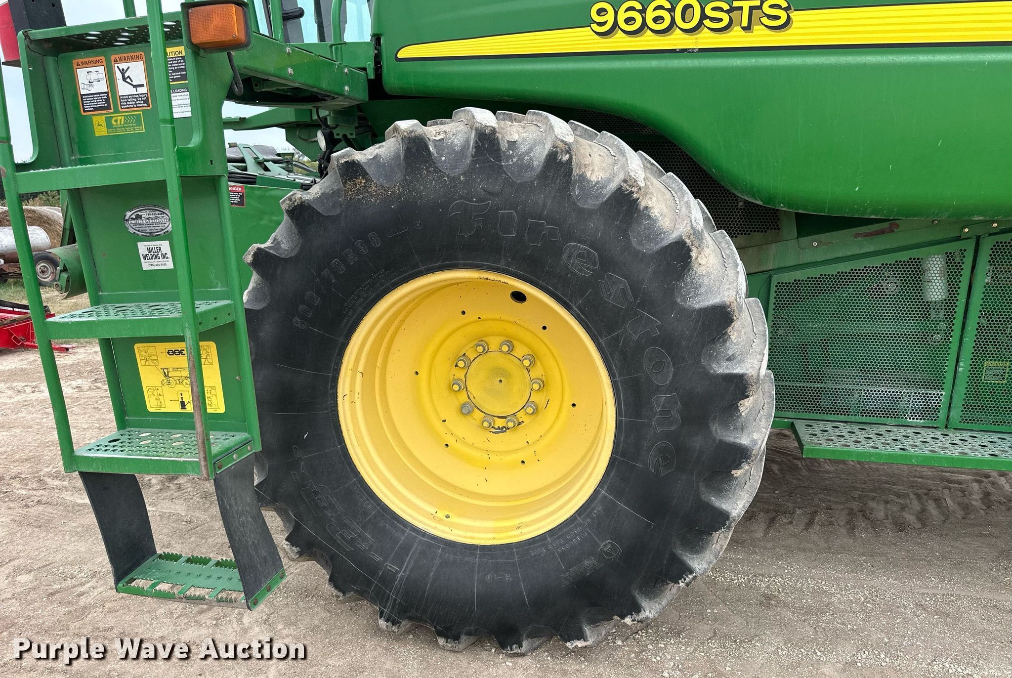 2005 John Deere 9660 STS combine. Engine hours: 4,557 on meter, Separator hours: 3,128 on meter, Serial: H09660S711791. Engine John Deere 6081HH013, Serial: RG6081H270204, Cylinders: 6, Fuel type: Diesel. Transmission Hydrostatic, 3F - 3R. Interior AC, Heat. Features Single point header coupler, Feederhouse: Lateral tilt, Variable speed, Reverser, Concaves: Small wire, Chaff spreader, Straw chopper, Bin: Extensions, Unloading auger length: 20'. Tires Front: 800/70R38, Rear: 18.4R26. Doane Family Farms - Open Inspection December 14. Downs, KS 67437