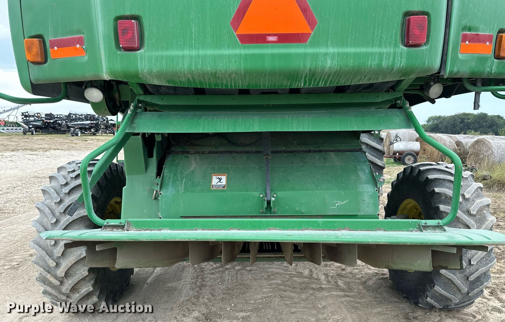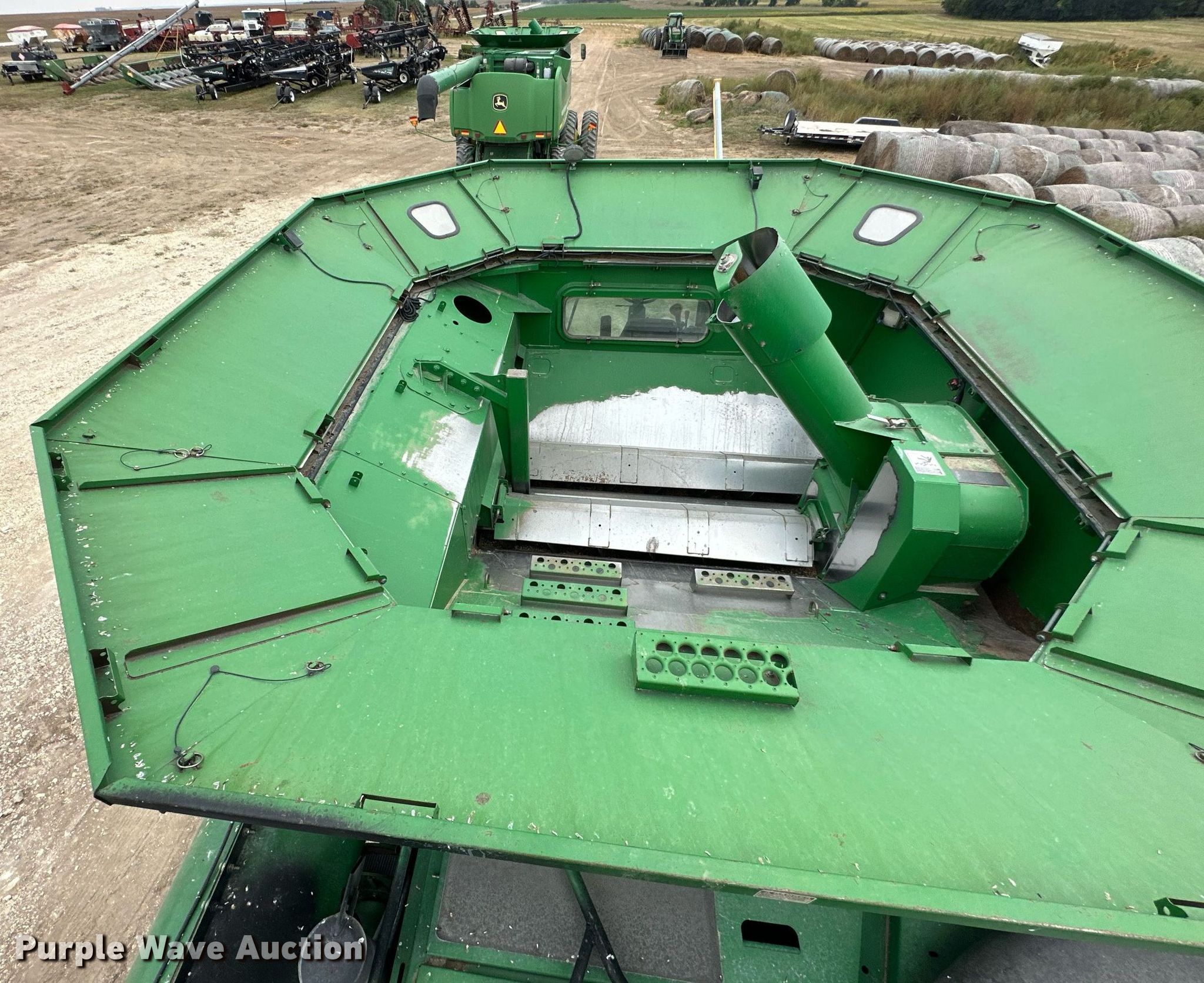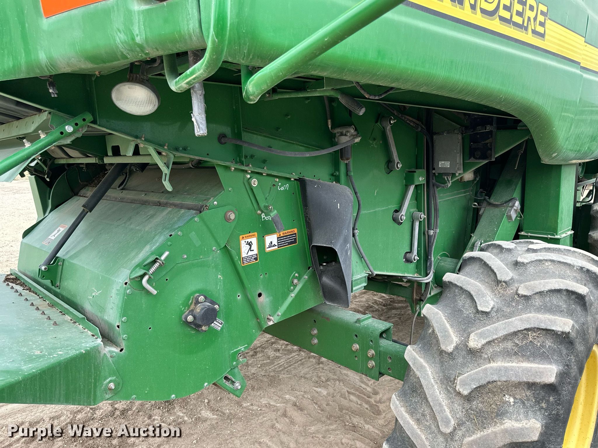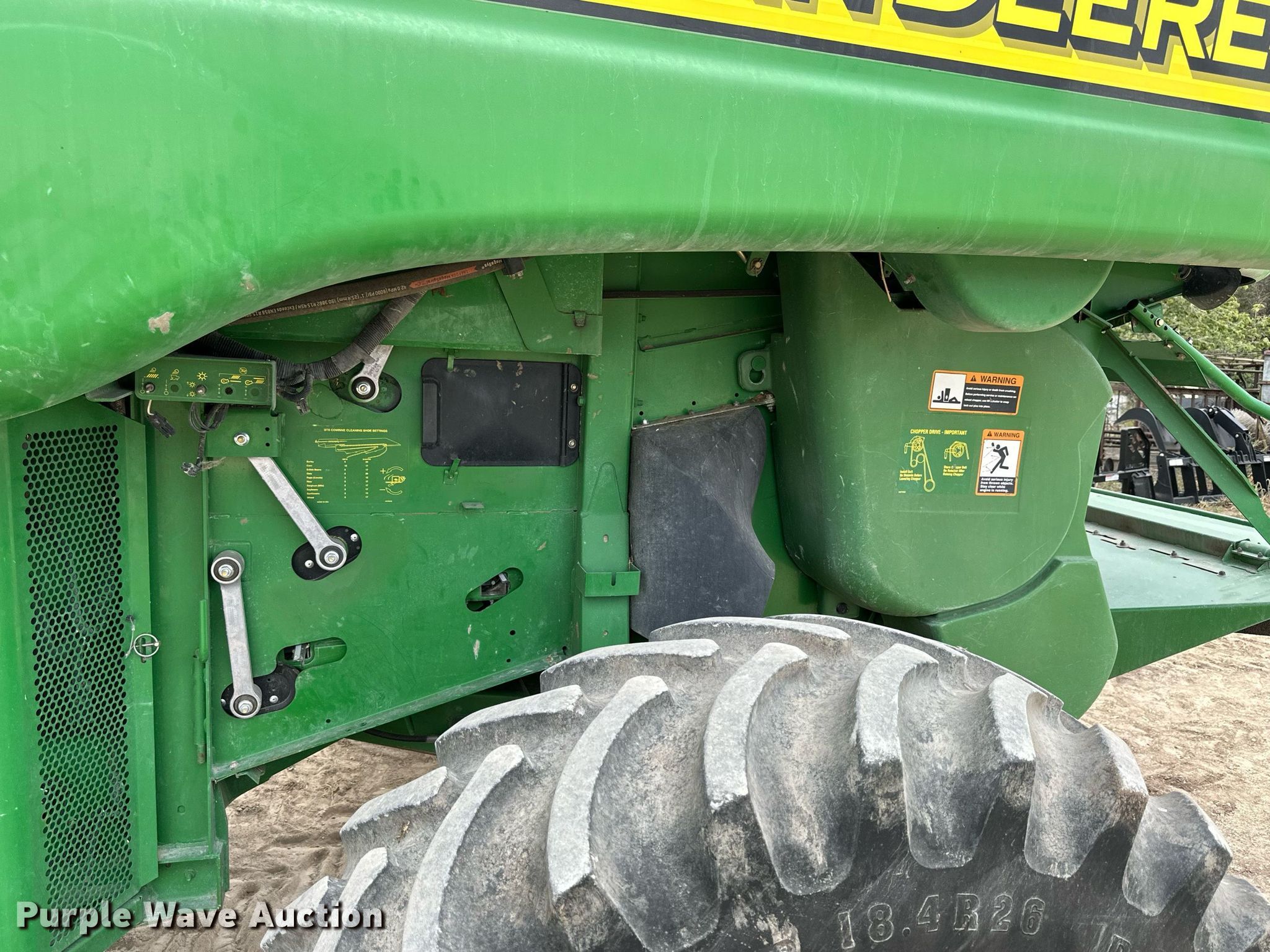 2005 John Deere 9660 STS combine. Engine hours: 4,557 on meter, Separator hours: 3,128 on meter, Serial: H09660S711791. Engine John Deere 6081HH013, Serial: RG6081H270204, Cylinders: 6, Fuel type: Diesel. Transmission Hydrostatic, 3F - 3R. Interior AC, Heat. Features Single point header coupler, Feederhouse: Lateral tilt, Variable speed, Reverser, Concaves: Small wire, Chaff spreader, Straw chopper, Bin: Extensions, Unloading auger length: 20'. Tires Front: 800/70R38, Rear: 18.4R26. Doane Family Farms - Open Inspection December 14. Downs, KS 67437