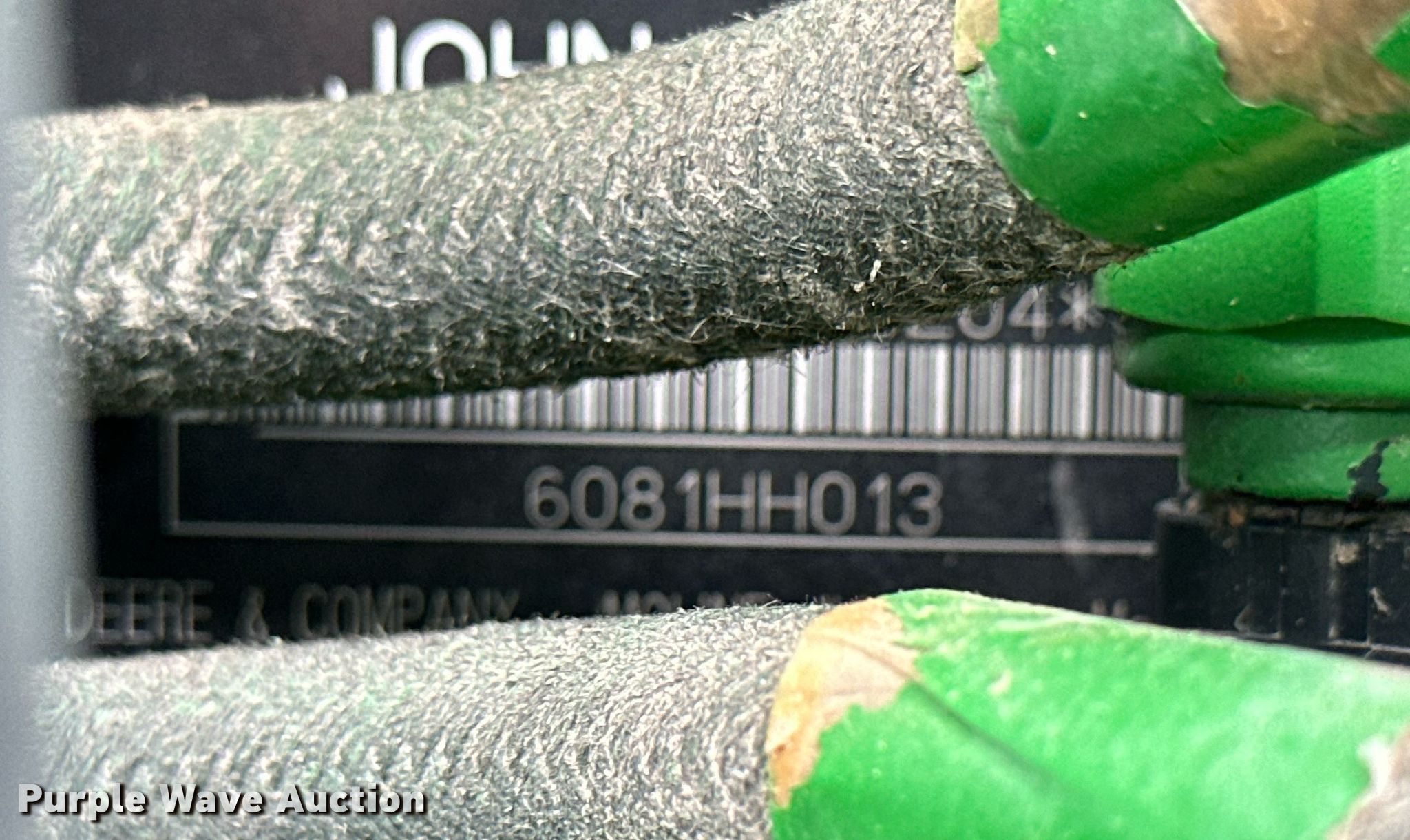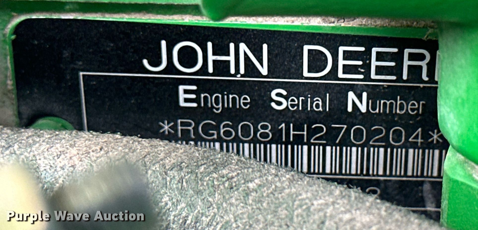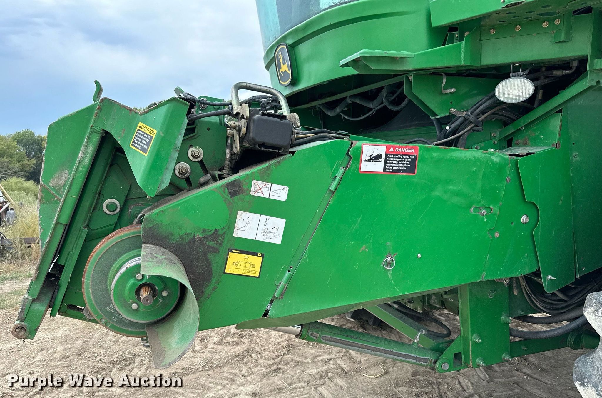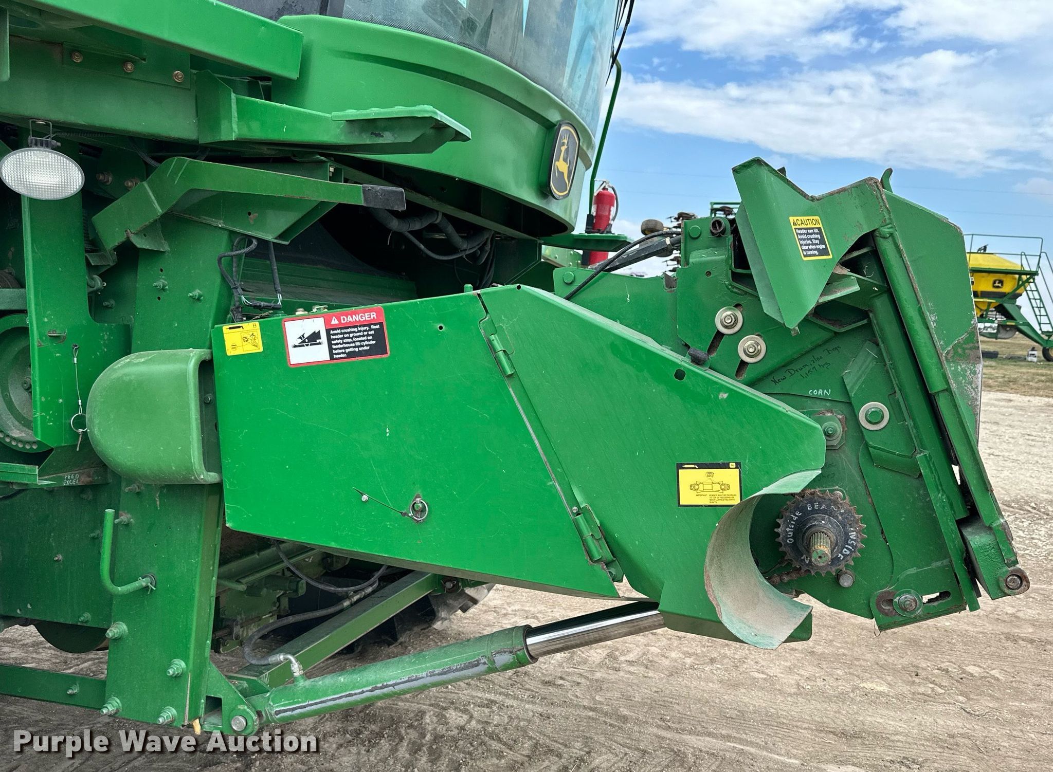 2005 John Deere 9660 STS combine. Engine hours: 4,557 on meter, Separator hours: 3,128 on meter, Serial: H09660S711791. Engine John Deere 6081HH013, Serial: RG6081H270204, Cylinders: 6, Fuel type: Diesel. Transmission Hydrostatic, 3F - 3R. Interior AC, Heat. Features Single point header coupler, Feederhouse: Lateral tilt, Variable speed, Reverser, Concaves: Small wire, Chaff spreader, Straw chopper, Bin: Extensions, Unloading auger length: 20'. Tires Front: 800/70R38, Rear: 18.4R26. Doane Family Farms - Open Inspection December 14. Downs, KS 67437