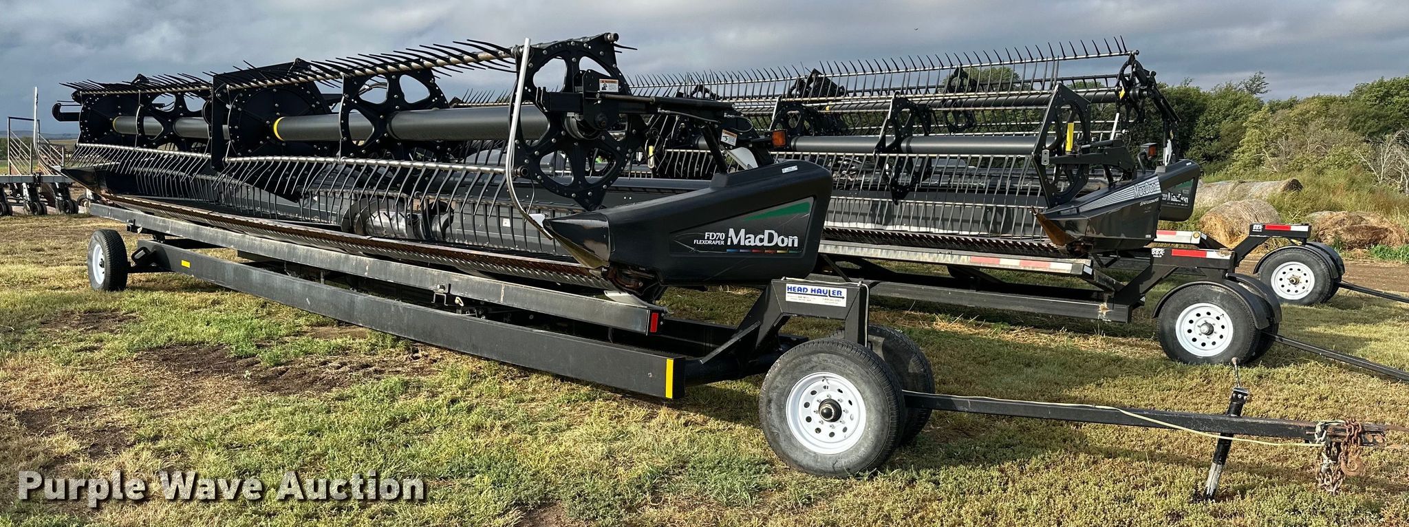 Purple Wave is selling a used Platform or Stripper Head in Kansas. This item is a 2010 MacDon FD70 flex draper head with the following: Serial: 199485