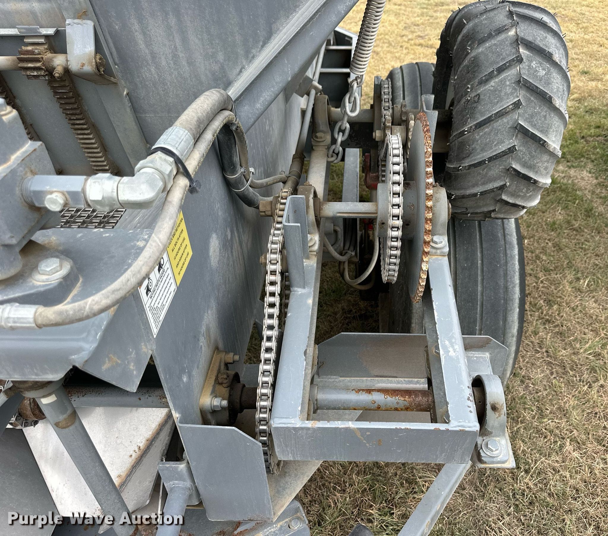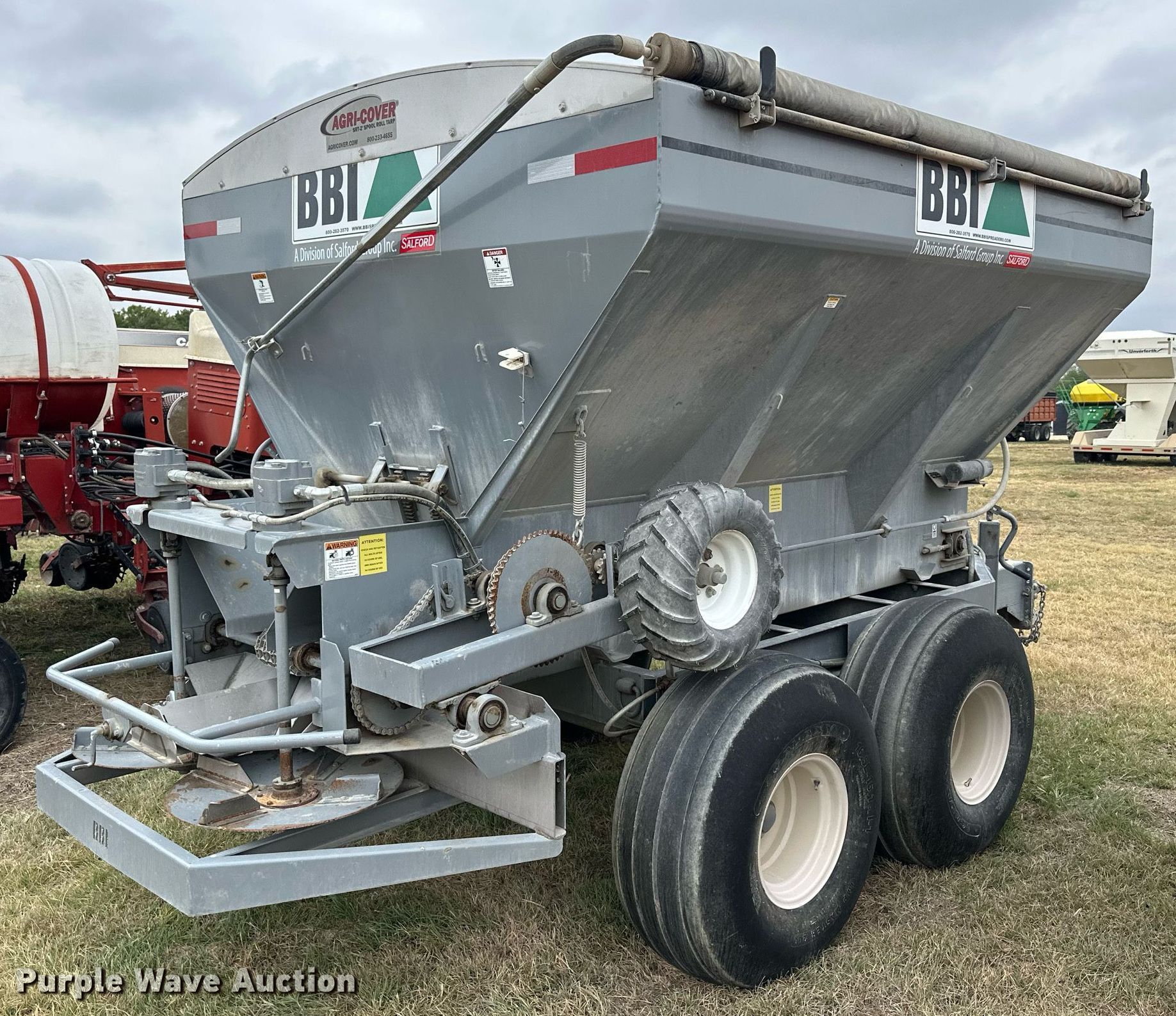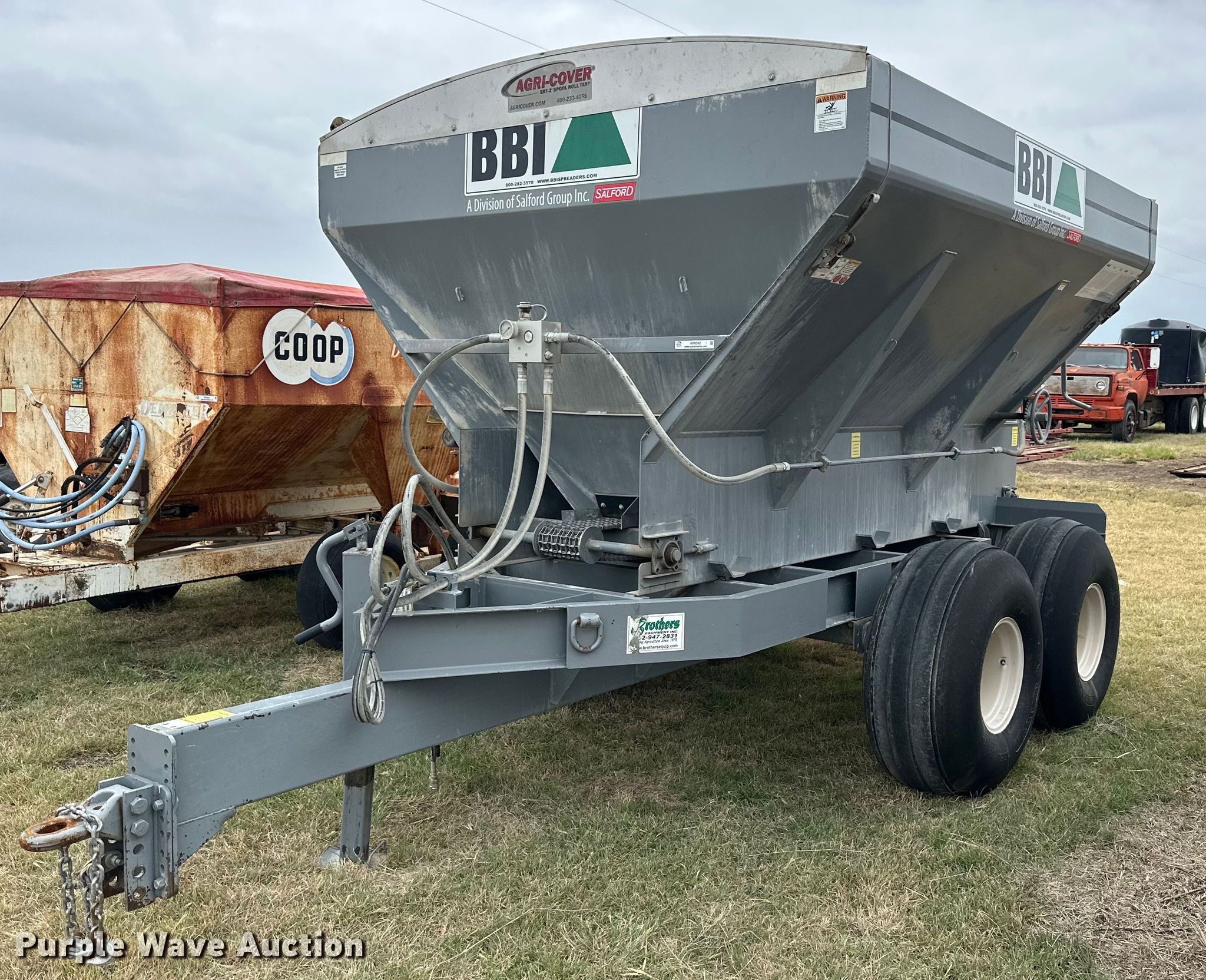 Salford BBI PTPG spreader. Serial: 3437. Features Dry fertilizer spreader Tons capacity: 10, Dual spinners, Roll tarp, Conveyor belt Width: 8".. Tires Size: 16.5L-16.1. Doane Family Farms - Open Inspection December 14. Downs, KS 67437