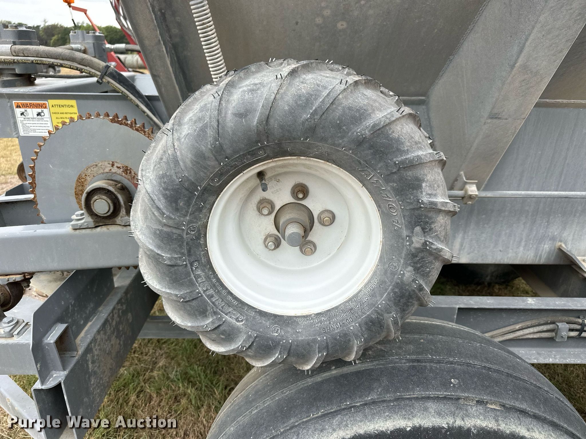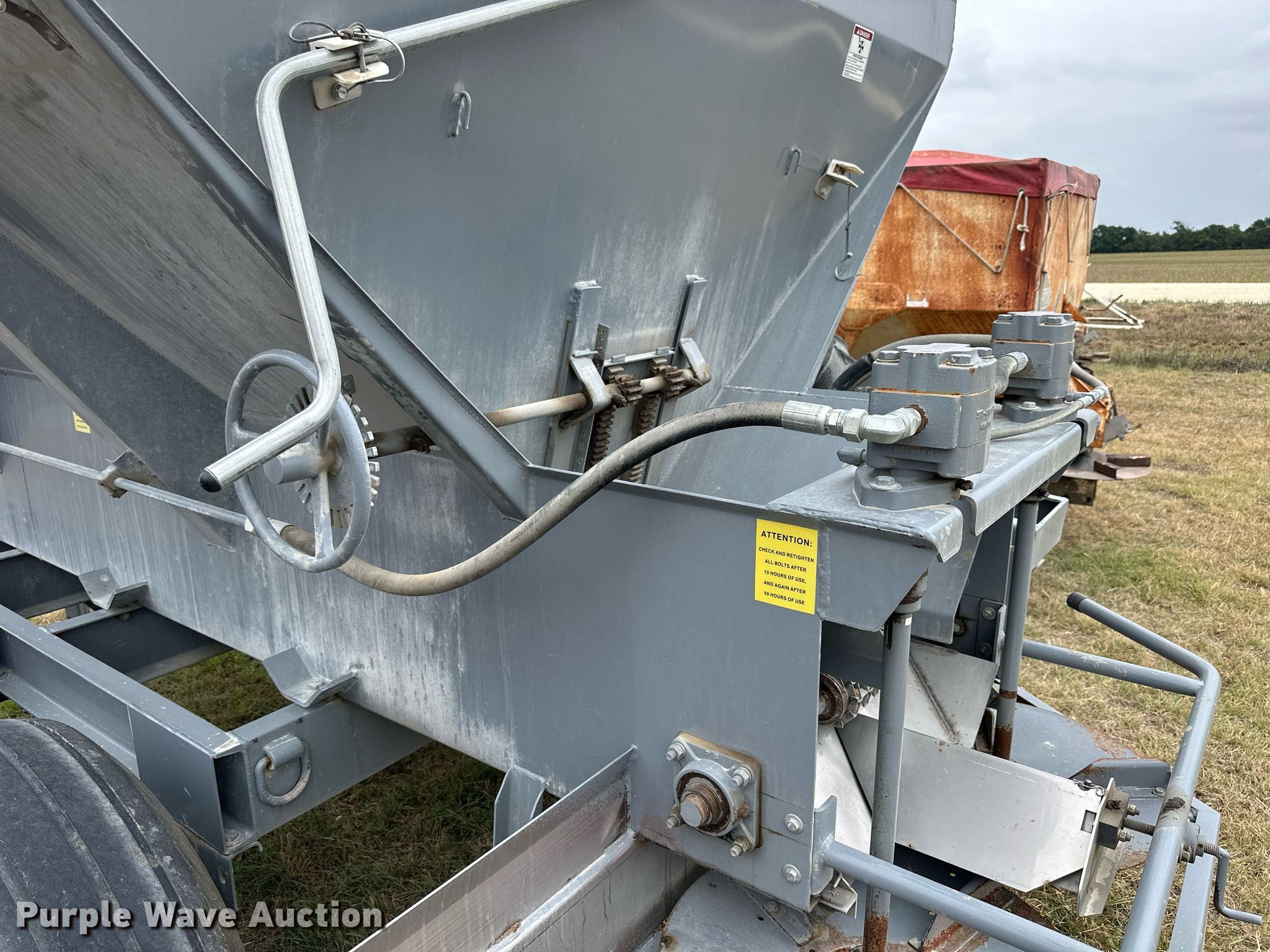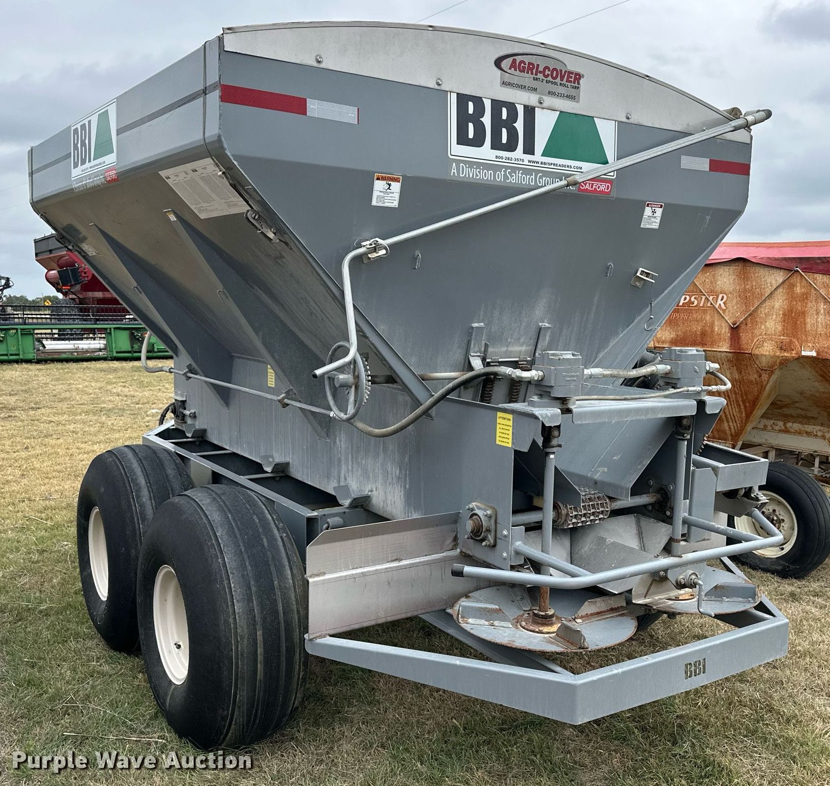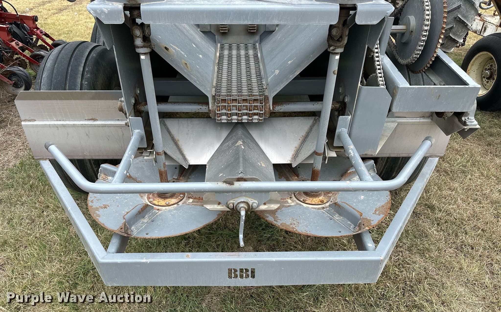 Salford BBI PTPG spreader. Serial: 3437. Features Dry fertilizer spreader Tons capacity: 10, Dual spinners, Roll tarp, Conveyor belt Width: 8".. Tires Size: 16.5L-16.1. Doane Family Farms - Open Inspection December 14. Downs, KS 67437