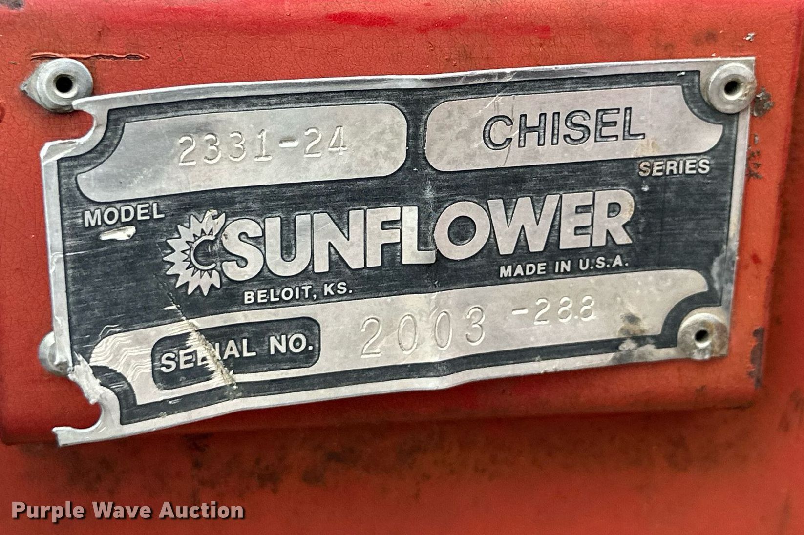 Sunflower 2331 chisel. Overall width: 24', Serial: 2003-288. Features Shanks: 26, Operation Hydraulic lift, Hydraulic fold, Attachments Tine harrow Harrow bars: 3.. Tires Tire size: 11L-15. Doane Family Farms - Open Inspection December 14. 123 C 685 Avenue. Downs, KS 67437