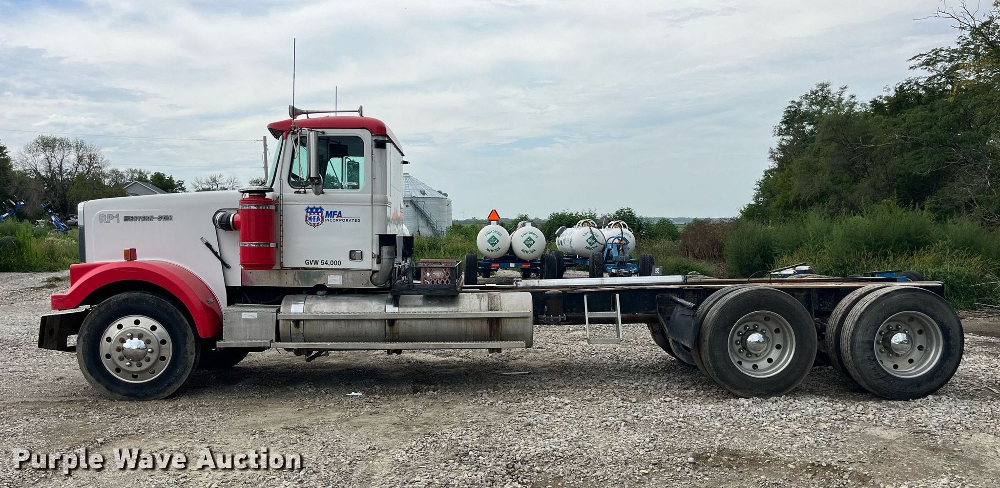 1986 Western Star 4900 semi truck. Miles: 94,665 on odometer, Hours: 7,068 on meter, VIN: 2WKPDCJG4GK914374. Engine Cummins, Displacement: 14.0L, Cylinders: 6, Fuel type: Diesel. Transmission Manual. Chassis Axles: Tandem, Differential lock: Inter-axle, Suspension: Air, Brakes: Air, Truck chassis: 226", GVWR: 49,000 lbs. Interior AC, Heat, Heated mirrors. Features Fuel tank: Dual. Tires Size: 11R24.5. Notes Windshield chipped or cracked, Dead battery, Exhaust stacks removed but included, Unknown operating condition. Missouri title. Mileage has not been verified. Exempt will be written in the odometer disclosure on the title. MFA Ag Inc.. 616 Main Street. Conception Junction, MO 64434