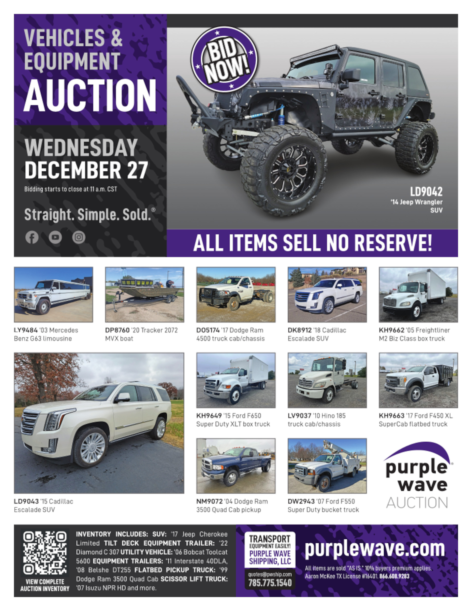 SOLD! Vehicles and Equipment Auction | 12-27-2023