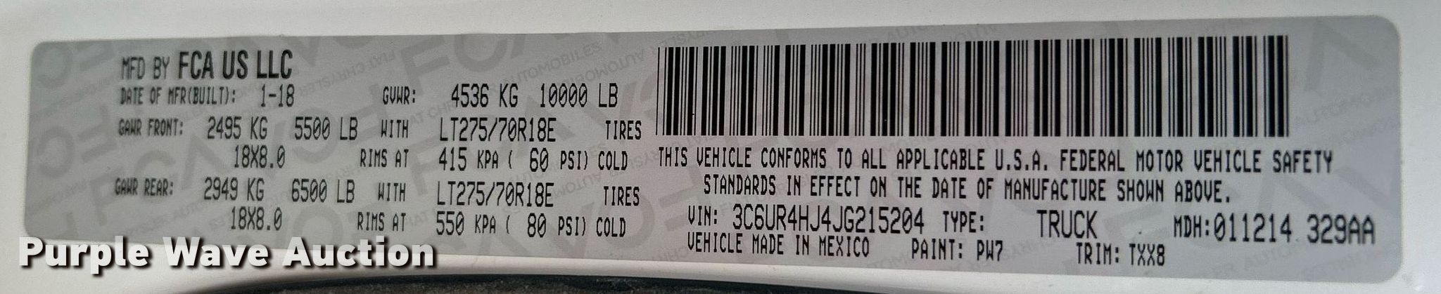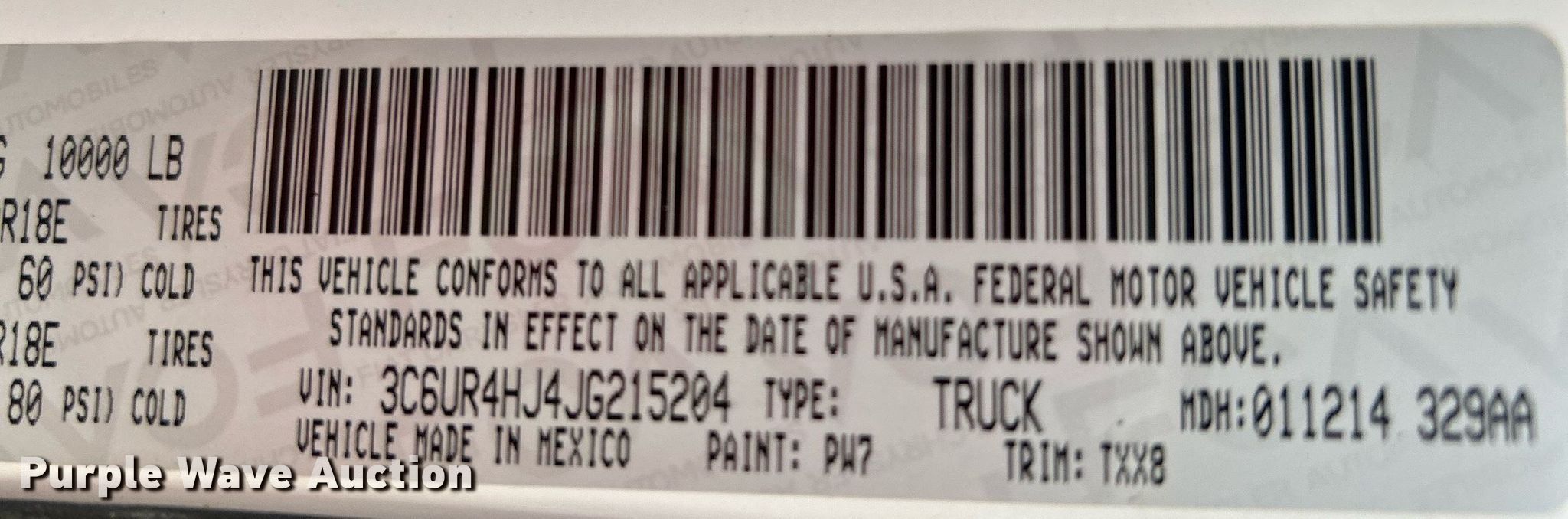 Purple Wave is selling a used 3/4 or 1 Ton Pickup or Van in Oklahoma. This item is a 2018 Dodge Ram 2500HD Crew Cab pickup truck with the following: Miles: 188,647 on odometer, VIN: 3C6UR4HJ4JG215204, Unit #: 10-656