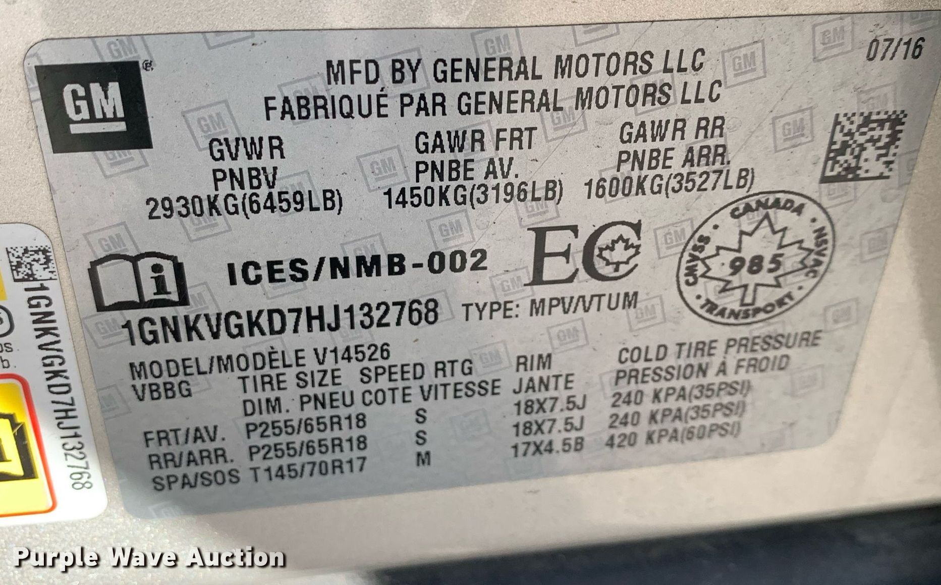 Purple Wave is selling a used Passenger Vehicle in Texas. This item is a 2017 Chevrolet Traverse SUV with the following: Miles: 103,708 on odometer, VIN: 1GNKVGKD7HJ132768