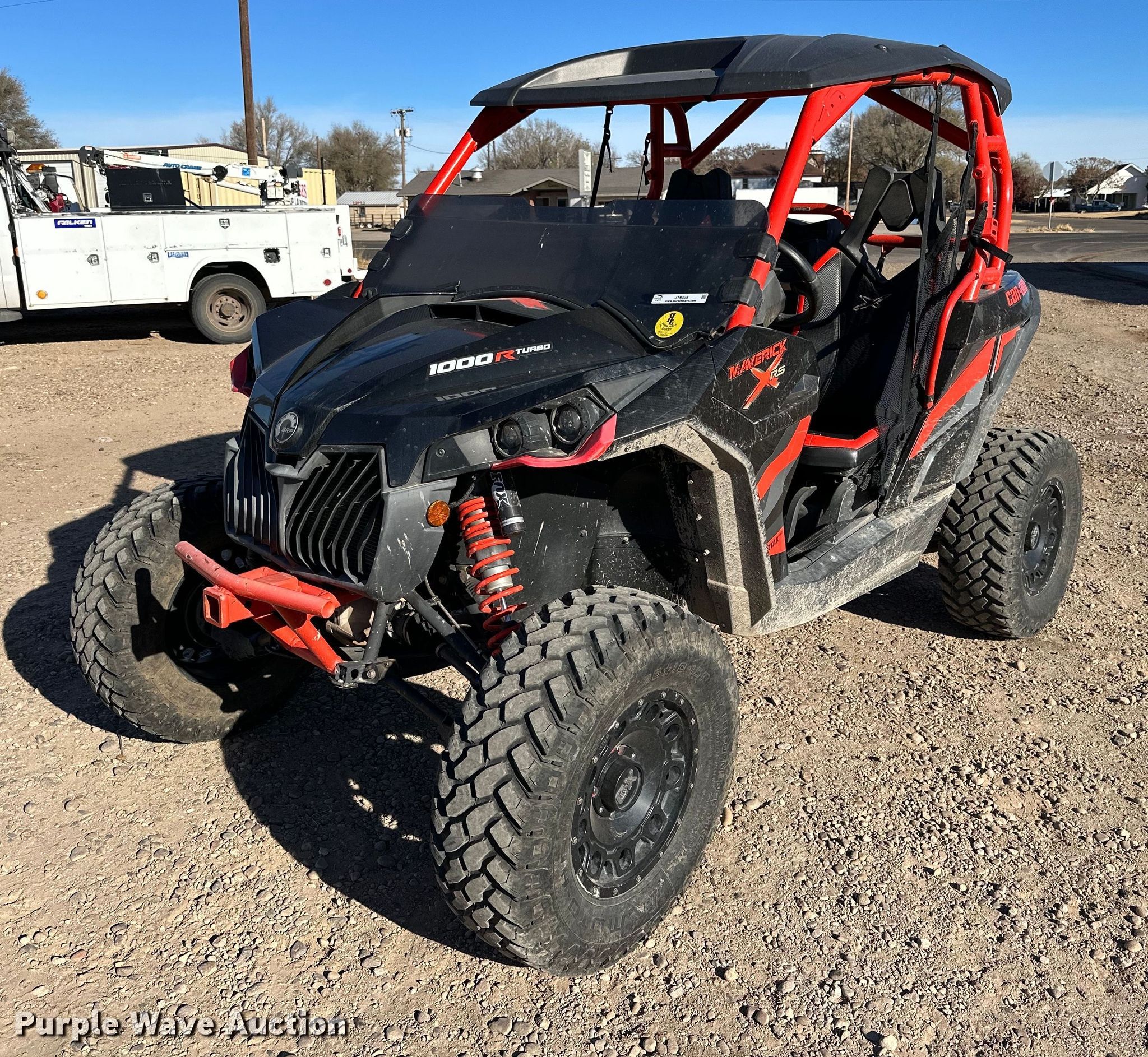 2016 Can-Am Maverick utility vehicle. Miles: 1,009 on odometer, VIN: 3JBPDAR29GJ002757. Engine Displacement: 976 cc, Cylinders: 2, Fuel type: Gas, HP: 131, Electric start. Transmission Automatic. Chassis Four wheel drive. Operators station Canopy. Features Receiver hitch. Tires Size: 30x10-15R. Texas off-highway use only title. Title has a lien that will be released following the close of the auction. Title distribution may be delayed up to 30 days from verification of funds. 506 Ware Avenue. Groom, TX 79039