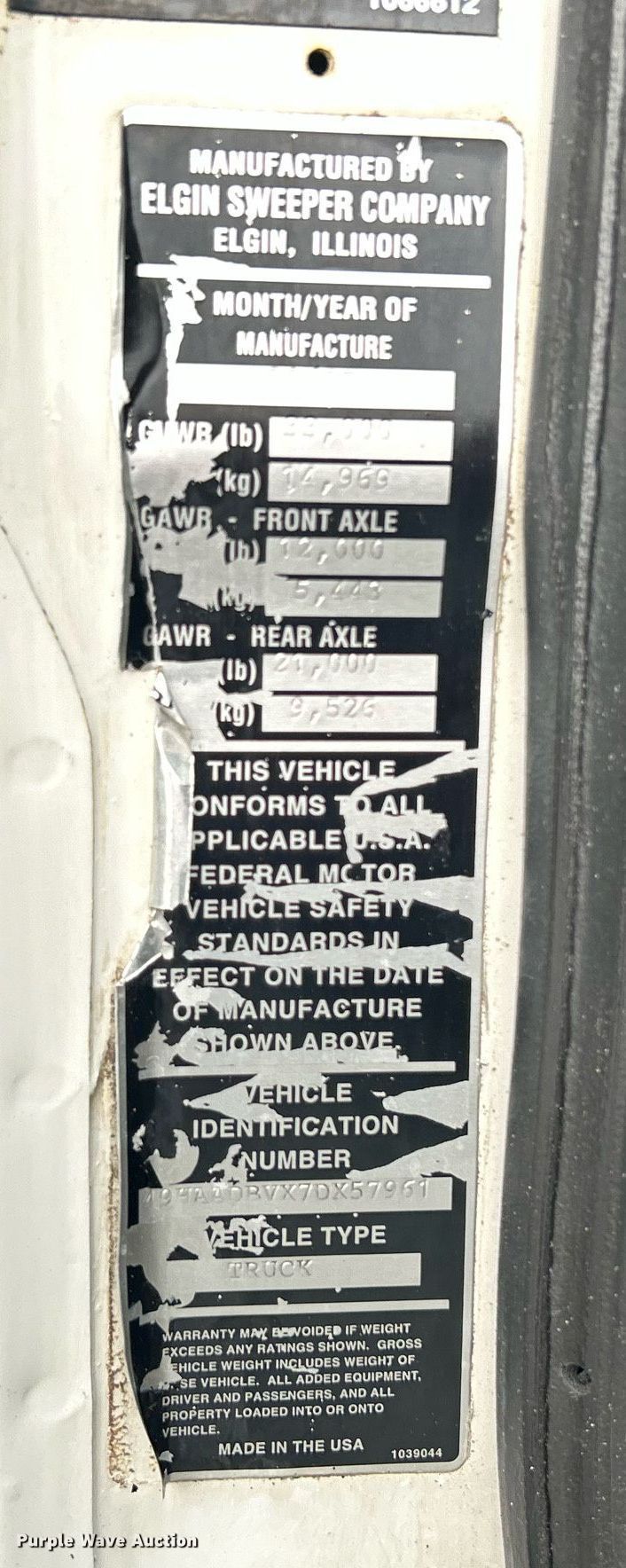 Purple Wave is selling a used Street Sweeper Truck in Oklahoma. This item is a 2007 Elgin Whirlwind street sweeper truck with the following: Miles: 14,907 on odometer, VIN: 49HAADBVX7DX57961