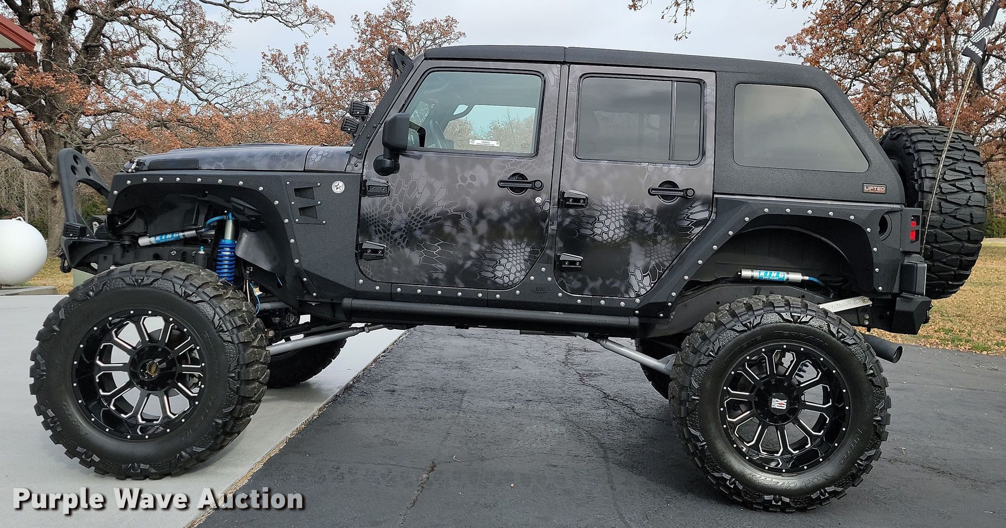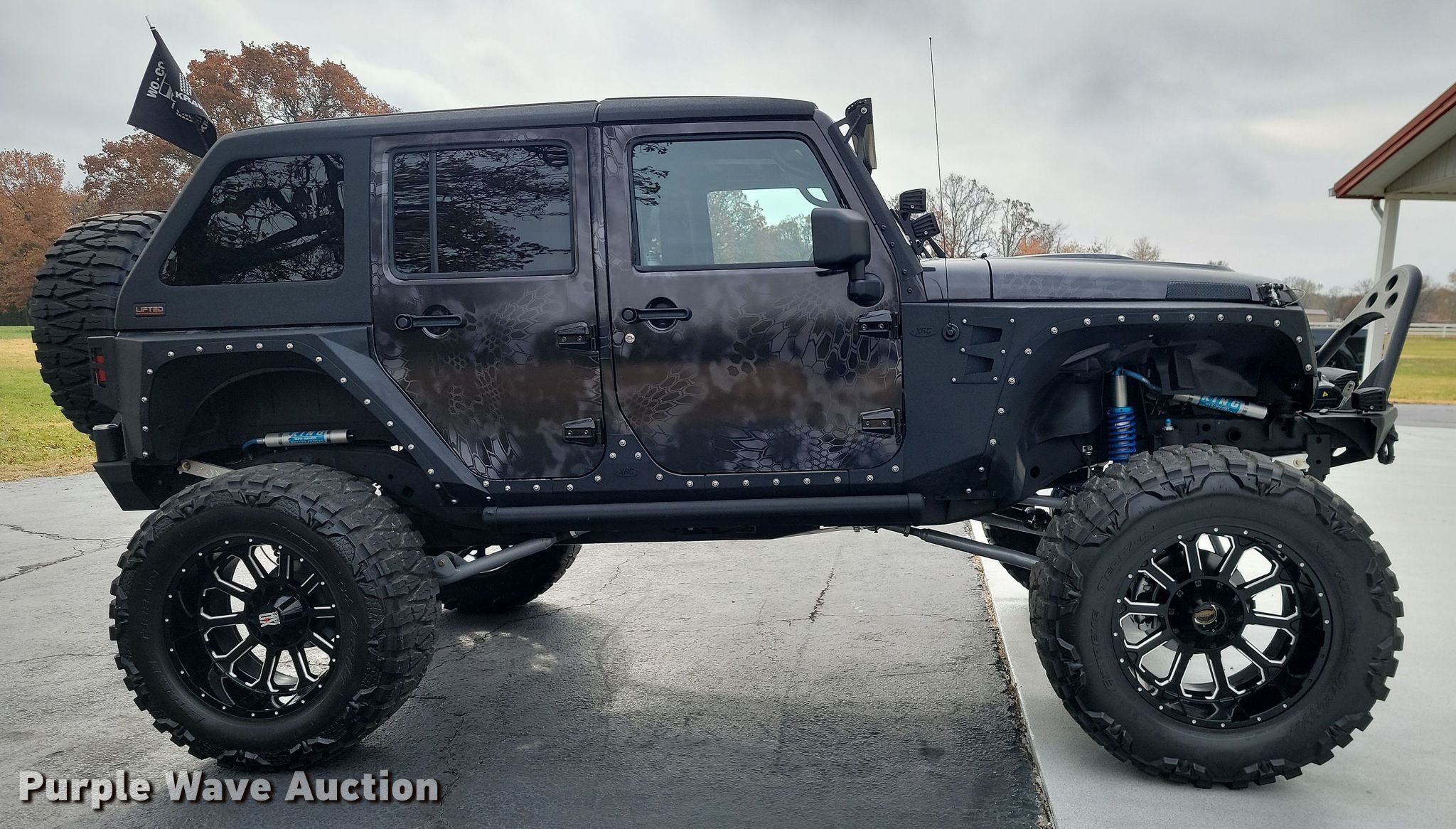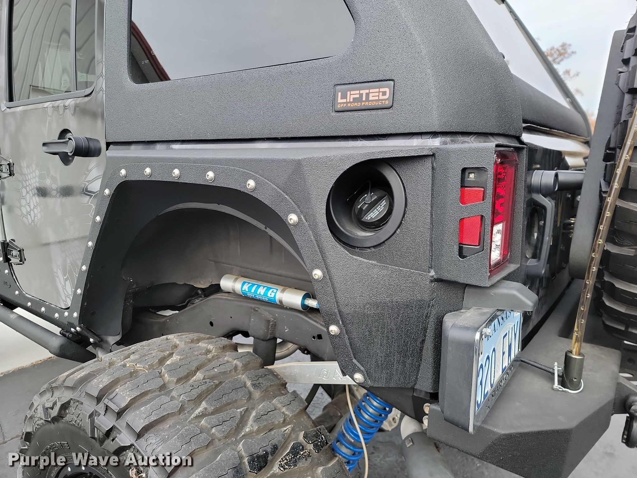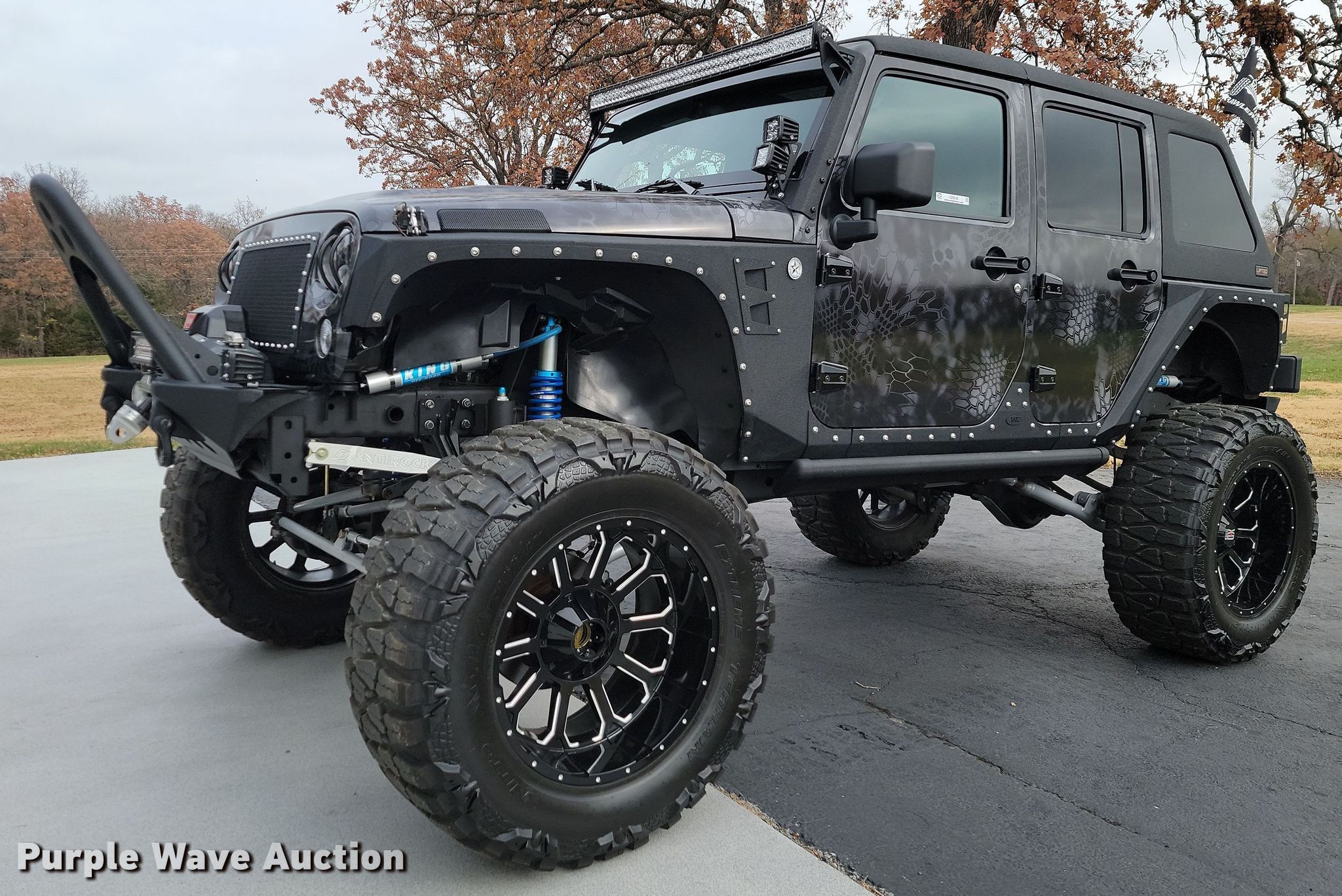 2014 Jeep Wrangler Starwood Customs SUV. Miles: 1,179 on odometer, VIN: 1C4BJWDG4EL159142. Engine Displacement: 3.6L V6 DOHC , Cylinders: 6, Fuel type: Gas. Transmission Automatic, Four wheel drive. Interior AC, heat, Power windows, power locks, Cruise control, Backup camera. Features Front and rear air lockers, Warn winch Capacity: 10,000 lbs. Tires Brand: Trail Grappler, Size: 40x15.50R22LT. View specifications. Kansas title. Title distribution may be delayed up to 14 days from verification of funds. Michael Laymon. Yates Center, KS 66783