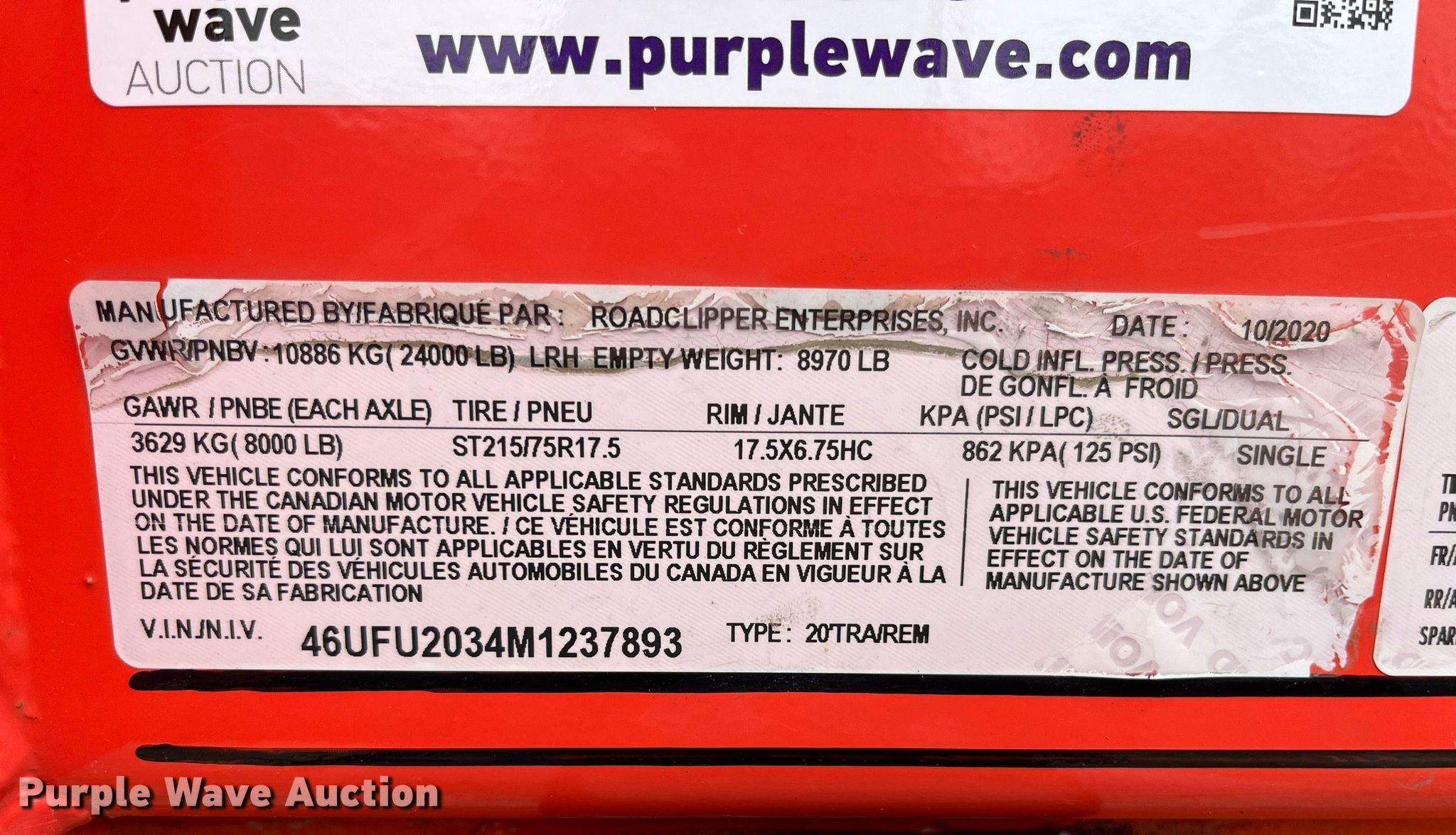 Purple Wave is selling a used Dump Trailer in Illinois. This item is a 2021 Road Clipper 46UFU2034M1237893 dump trailer with the following: VIN: 46UFU2034M1237893