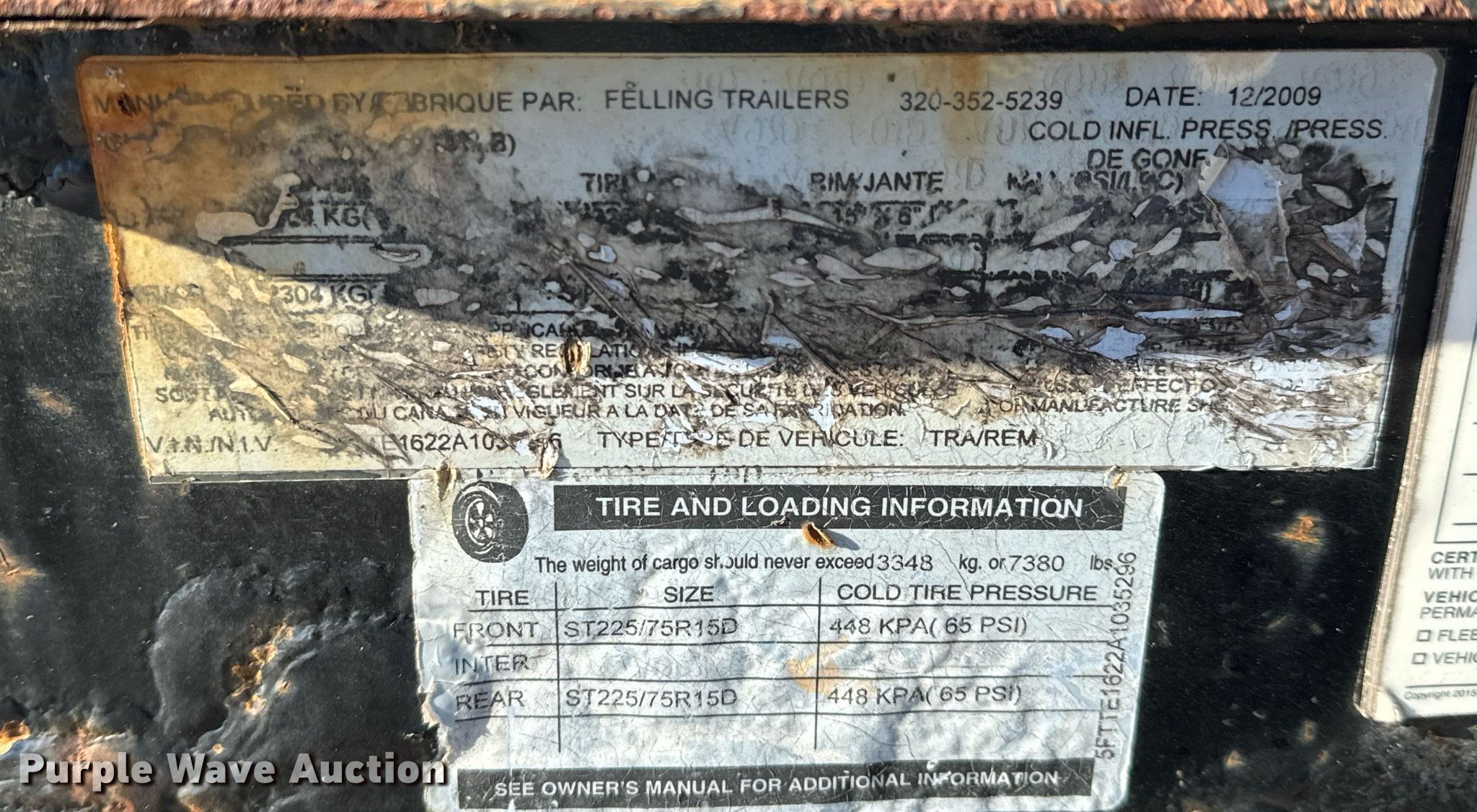 Purple Wave is selling a used Equip. Trailer in Kansas. This item is a 2010 Felling tilt deck equipment trailer with the following: VIN: 5FTTE1622A1035296, Unit #: 3836