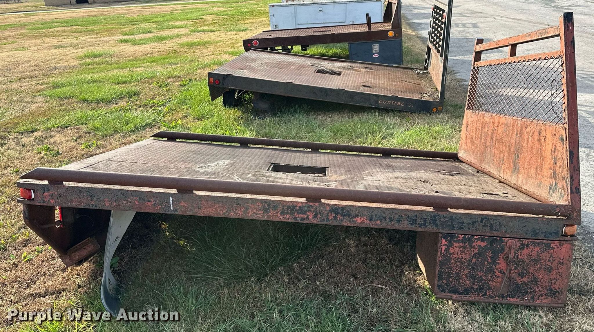 Purple Wave is selling a used Automotive Parts or Acces. in Oklahoma. This item is a Flatbed with the following: 8' 6" L x 7' W, Bed type: Steel, Gooseneck hitch