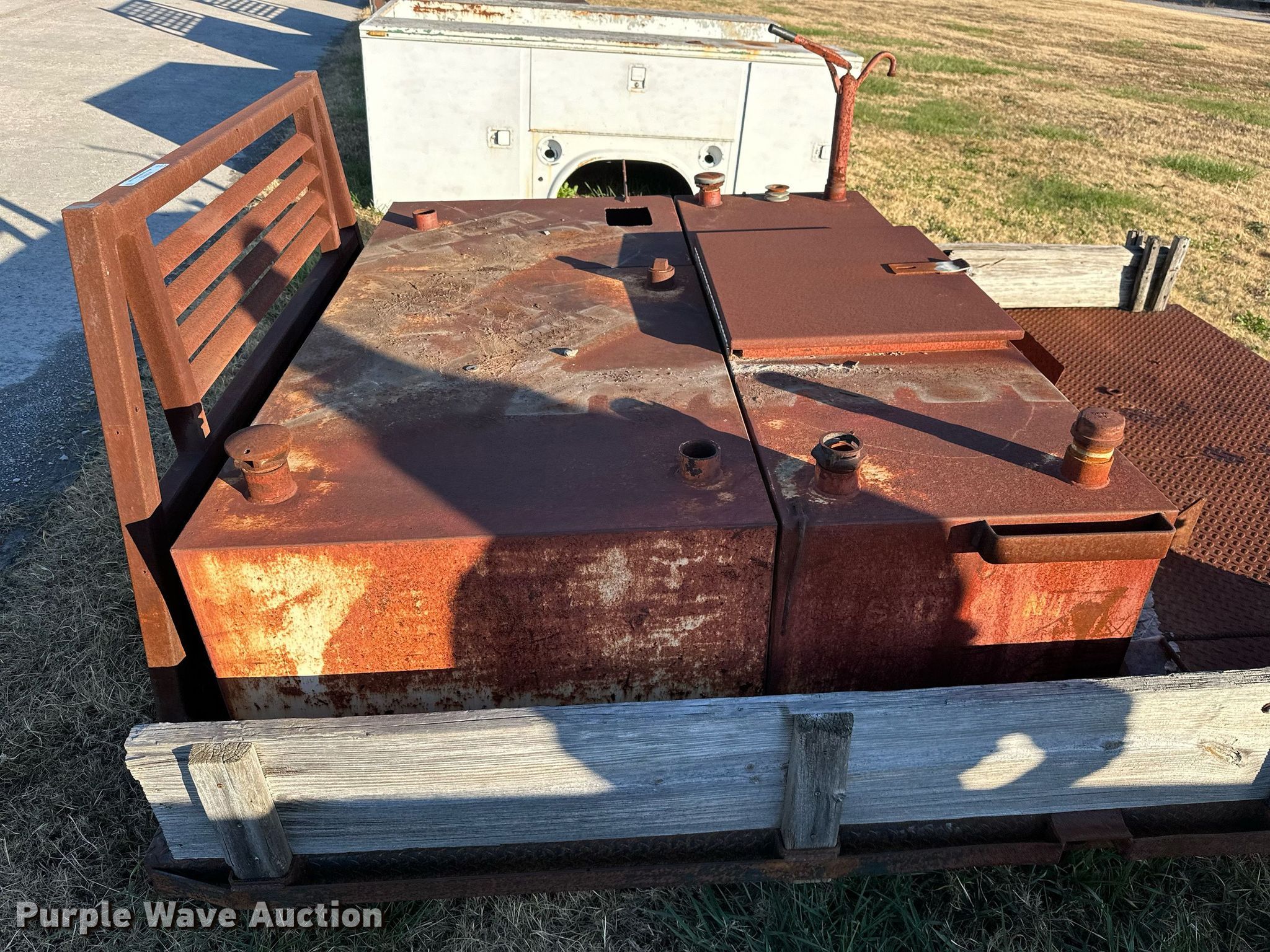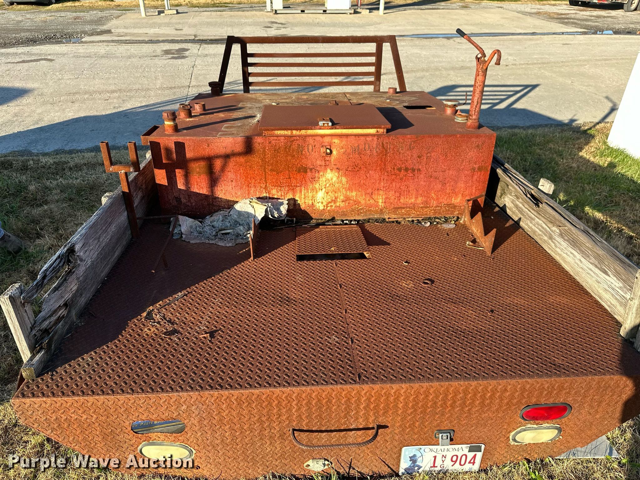 Flatbed. 10' L x 7' 6" W, Bed type: Steel, Oil/lube system Reservoirs, Fuel tank, Gooseneck hitch. Kemp Quarries. Pryor, OK 74361