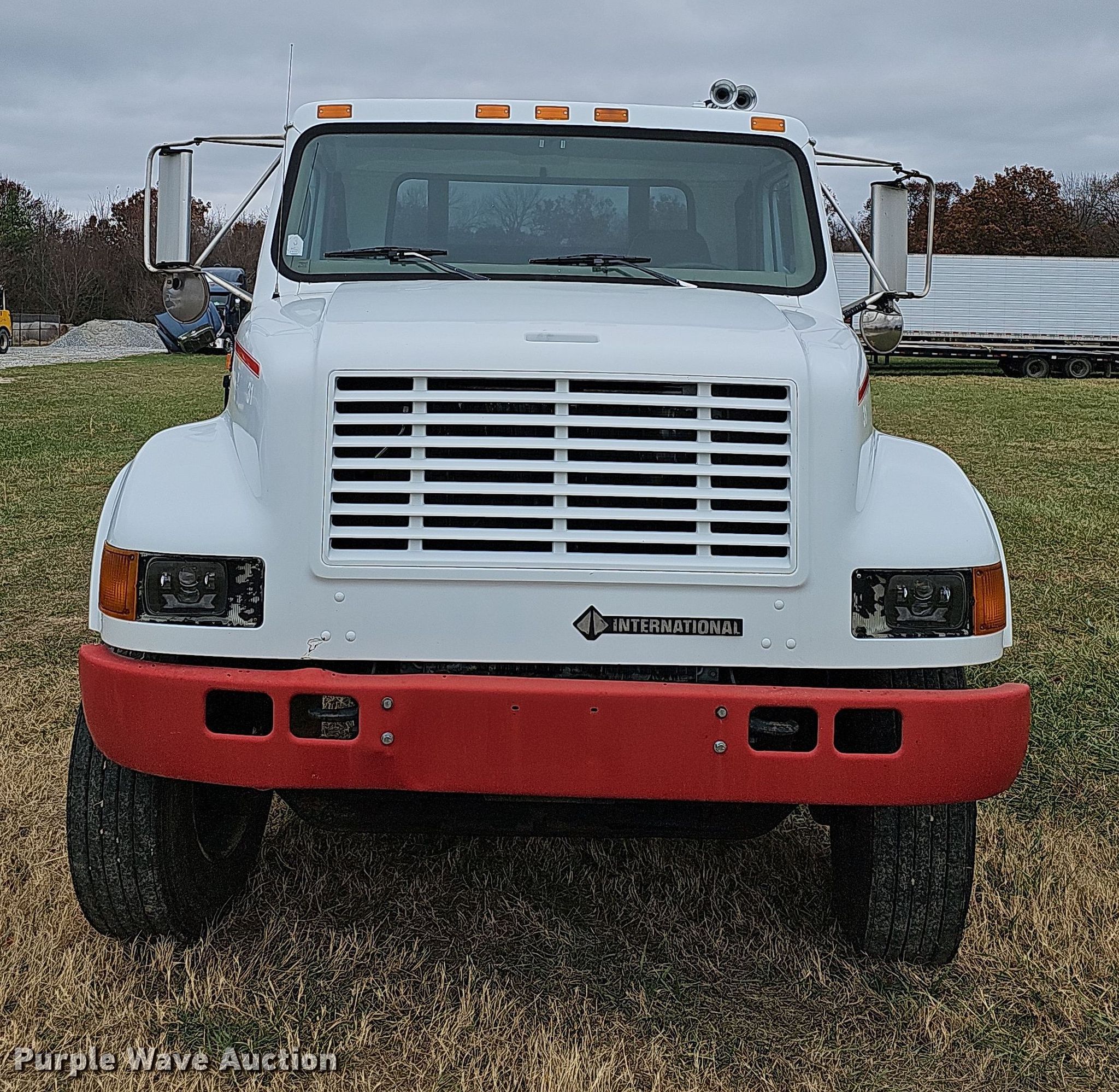 2001 International 4900 rollback truck. Miles: 218,930 on odometer, VIN: 1HTSHADR81H370022. Engine Navistar 530, Displacement: 8.7L , Cylinders: 6, Fuel type: Diesel. Transmission Eaton Fuller, Manual, Speed: 9. Chassis Axles: Tandem, Suspension: Spring, Brakes: Air, PTO, Wheelbase: 254". Interior AC, heat, Heated mirrors, Cruise control, Auxiliary controls. Features Rollback bed Century , 28' L x 96" W, Winch Capacity: 12,000 lbs., Rolling tailboard. Tires Size: 295/75R22.5. Arkansas title. Title distribution may be delayed up to 14 days from verification of funds. Decatur Wrecker. 8105 North Coffelt Cemetery Road. Bentonville, AR 72712