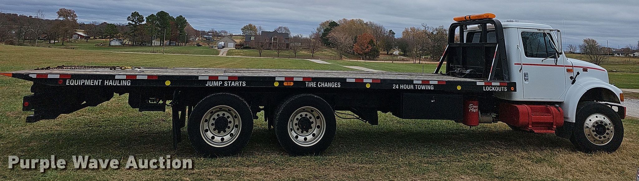 This 2001 International 4900 rollback truck will sell to the highest bidder regardless of price.