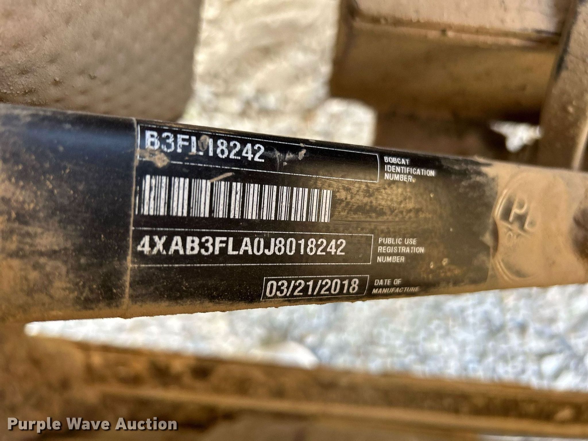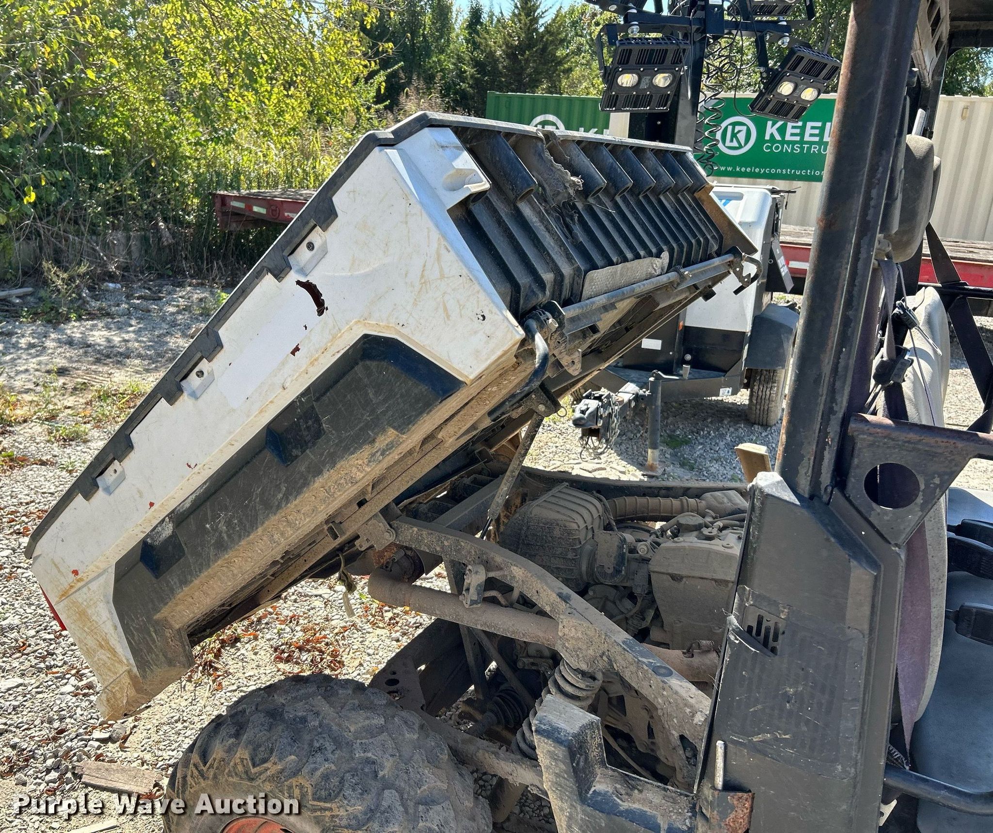 2018 Bobcat 3400 utility vehicle. Miles: 3,682 on odometer, Hours: 846 on meter, VIN: 4XAB3FLA0J8018242. Engine Cylinders: 1, Fuel type: Gas, Electric start. Transmission Automatic. Chassis Four wheel drive. Operators station Canopy. Features Receiver hitch, Dump bed 48" L x 60" W, Dump bed type: Manual. Tires Size: 26X9.00R12. Notes Transmission issues, no reverse. Transfer of ownership documentation will be a bill of sale. Keeley Construction. Cahokia, IL 62206