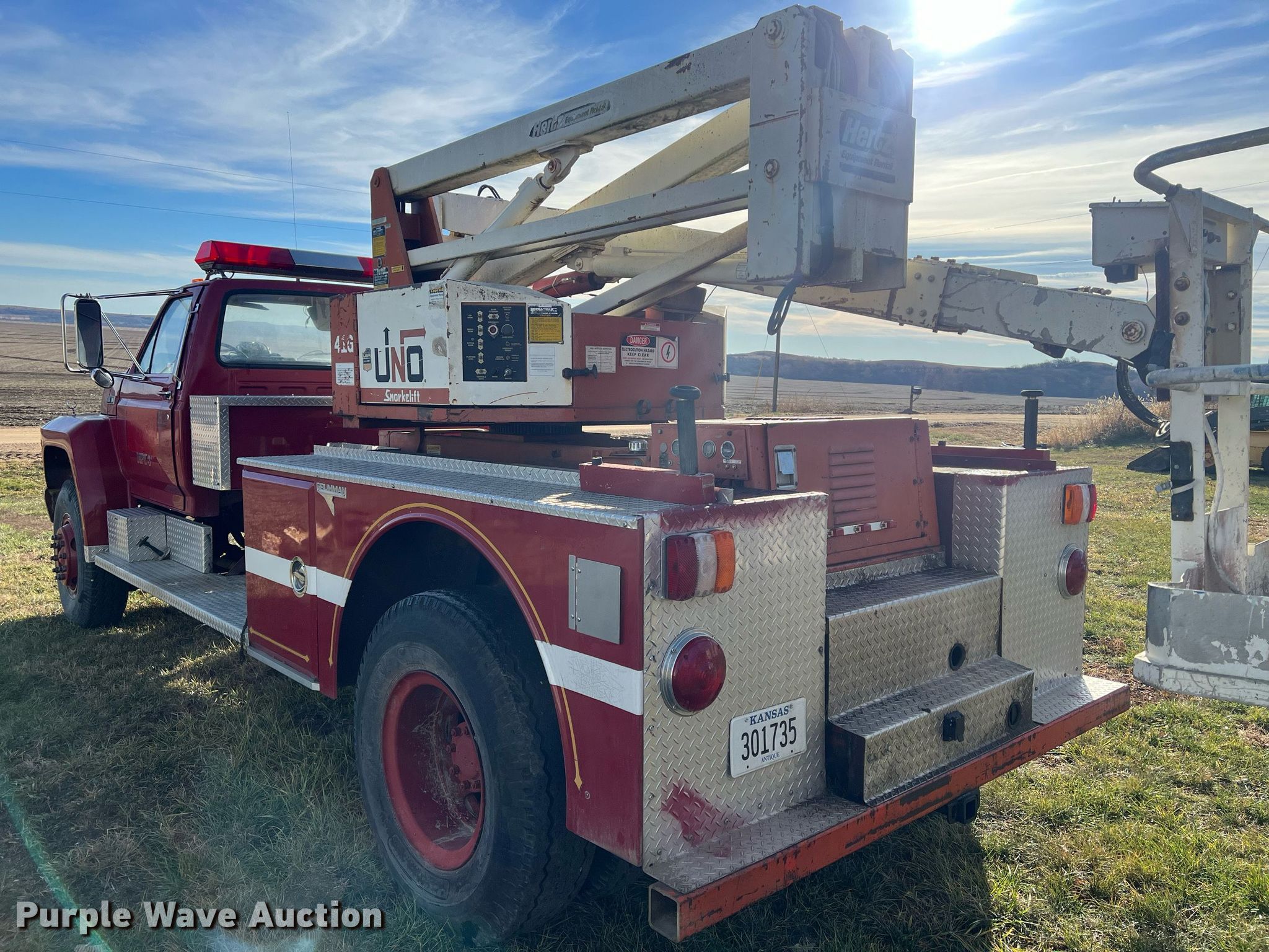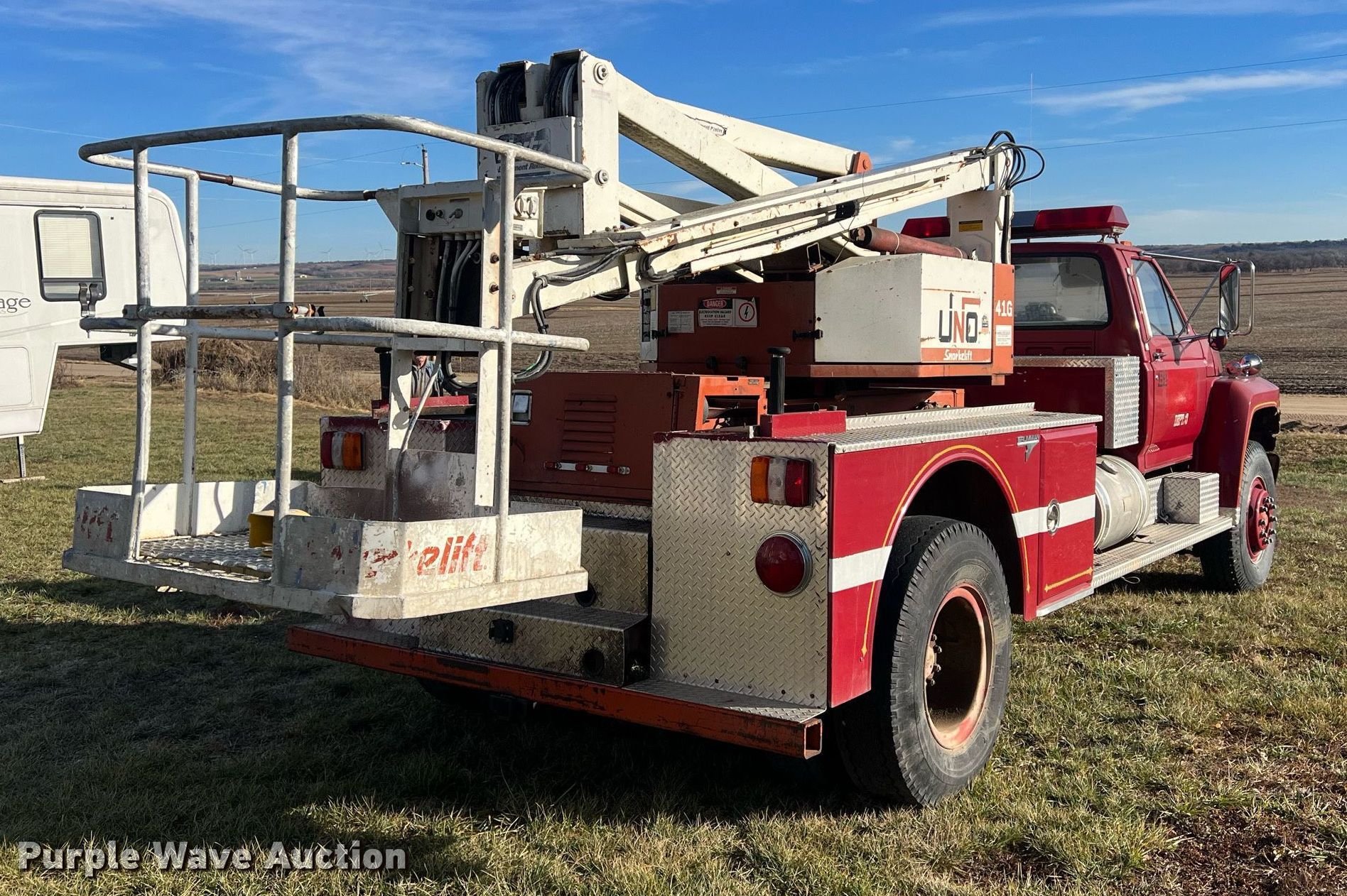 Purple Wave is selling a used Bucket Truck in Kansas. This item is a 1985 Ford F750 bucket truck with the following: Miles: 25,107 on odometer, VIN: 1FDYF82K2FVA14312