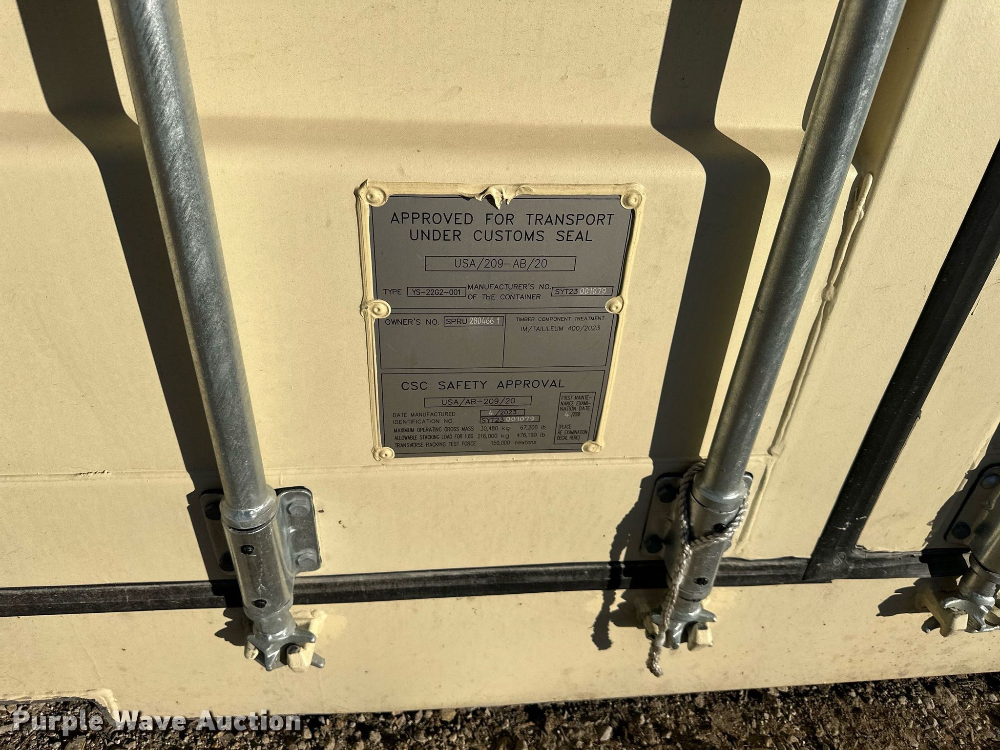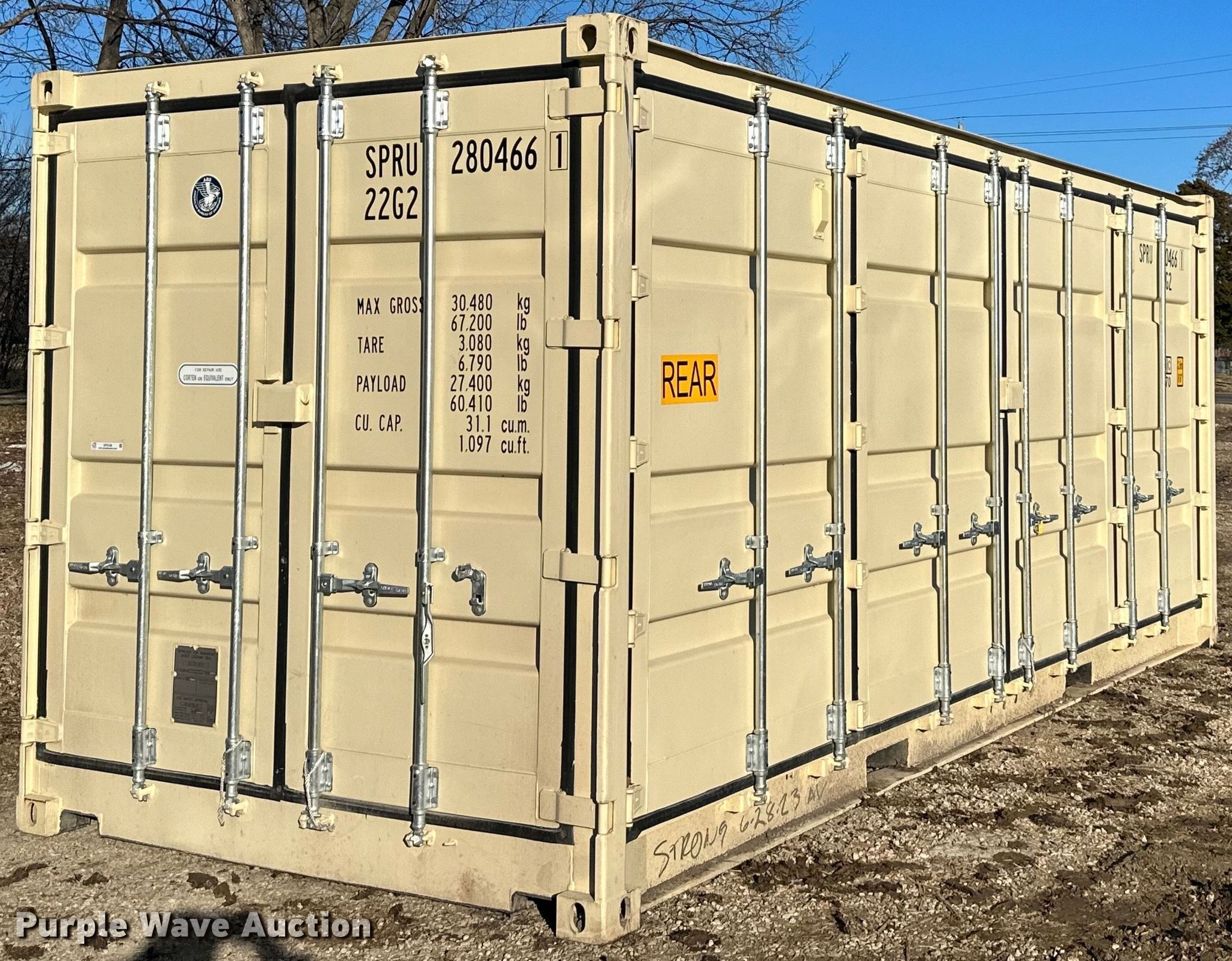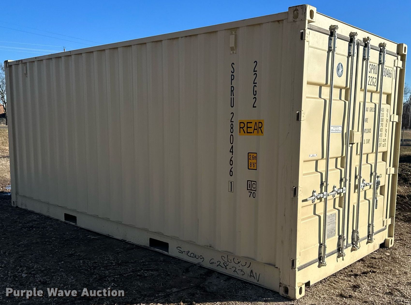 Purple Wave is selling a used Storage or Shipping Container in Kansas. This item is a 2023 20' L shipping container with the following: Side entry, Unused
