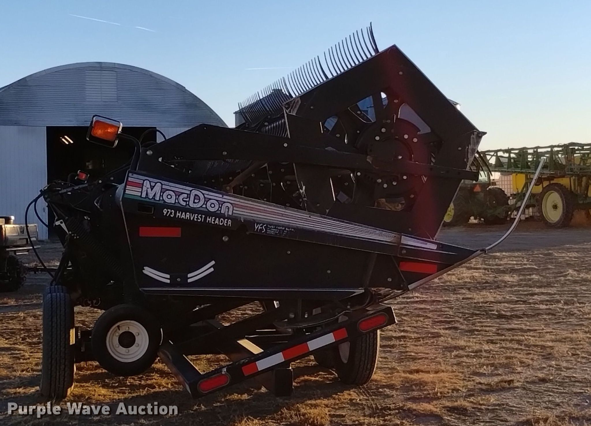 Take a look at this used 2005 MacDon 973 draper head being sold on December 27th, 2023 in the SOLD! December 27 Ag Equipment Auction made by MacDon. Take a look at all of the item information below or take a look at similar auctions for Harvesters.