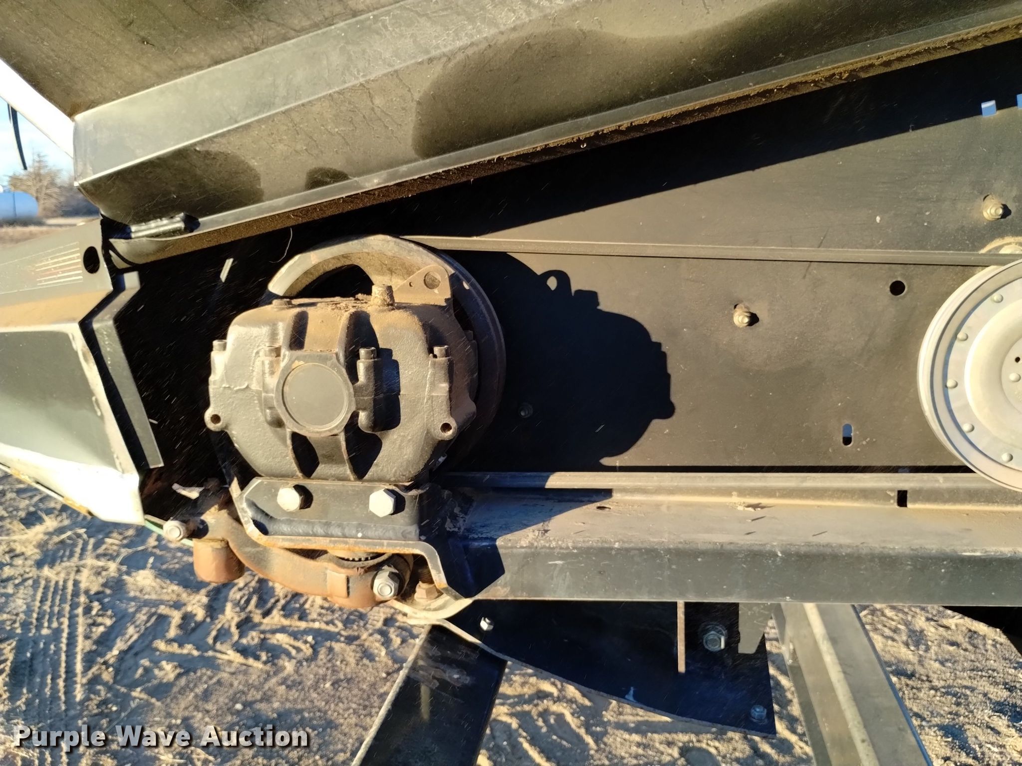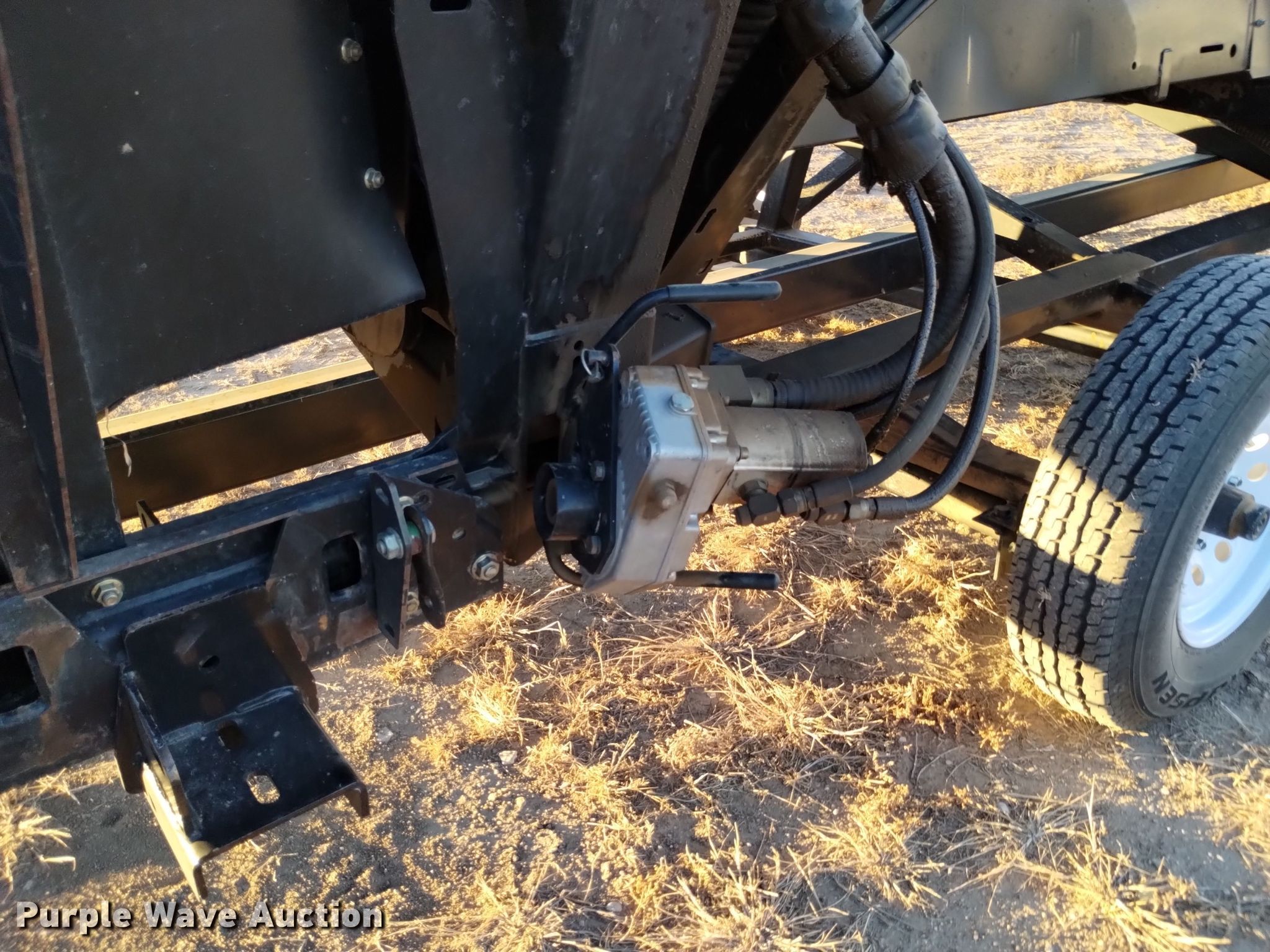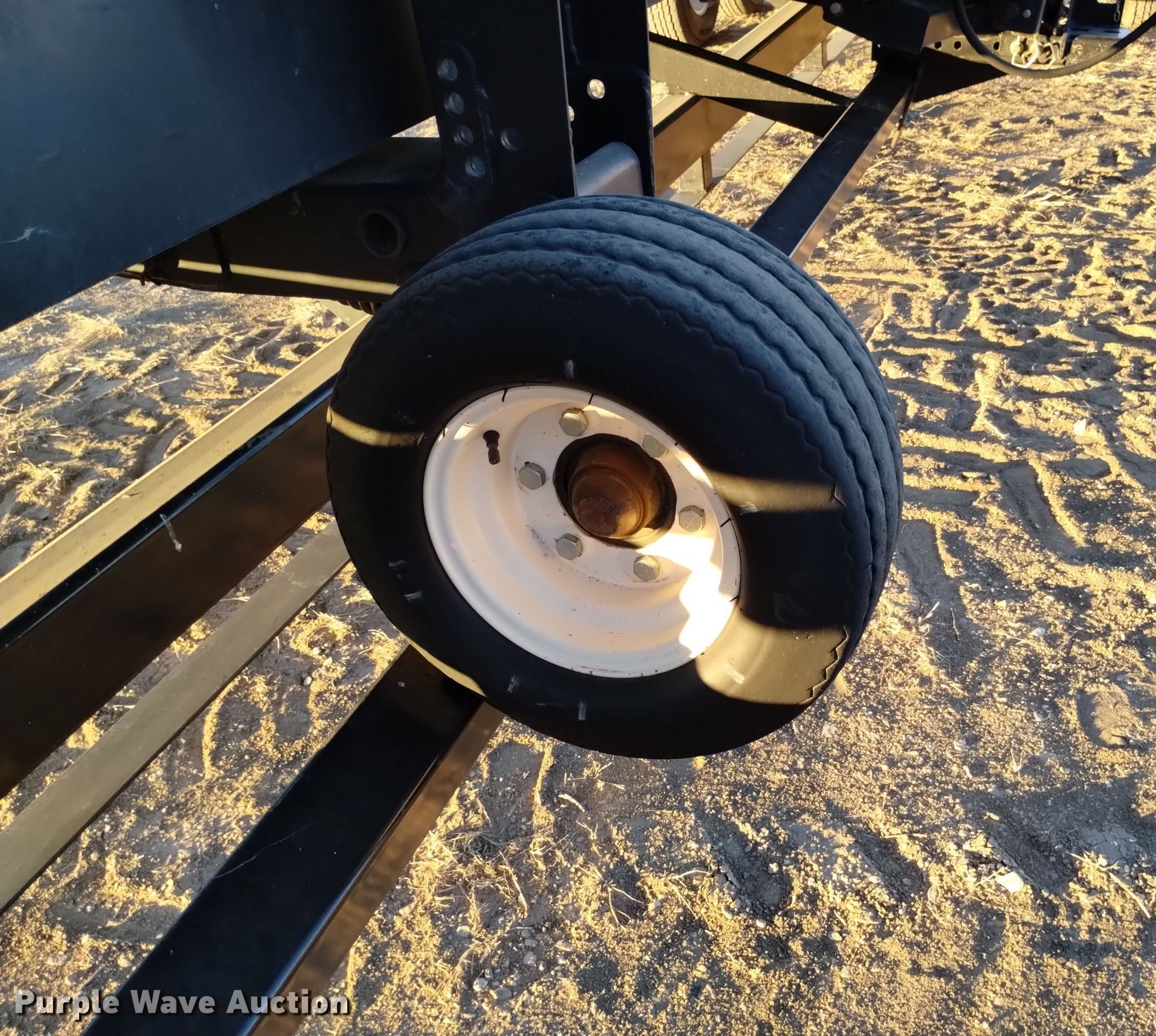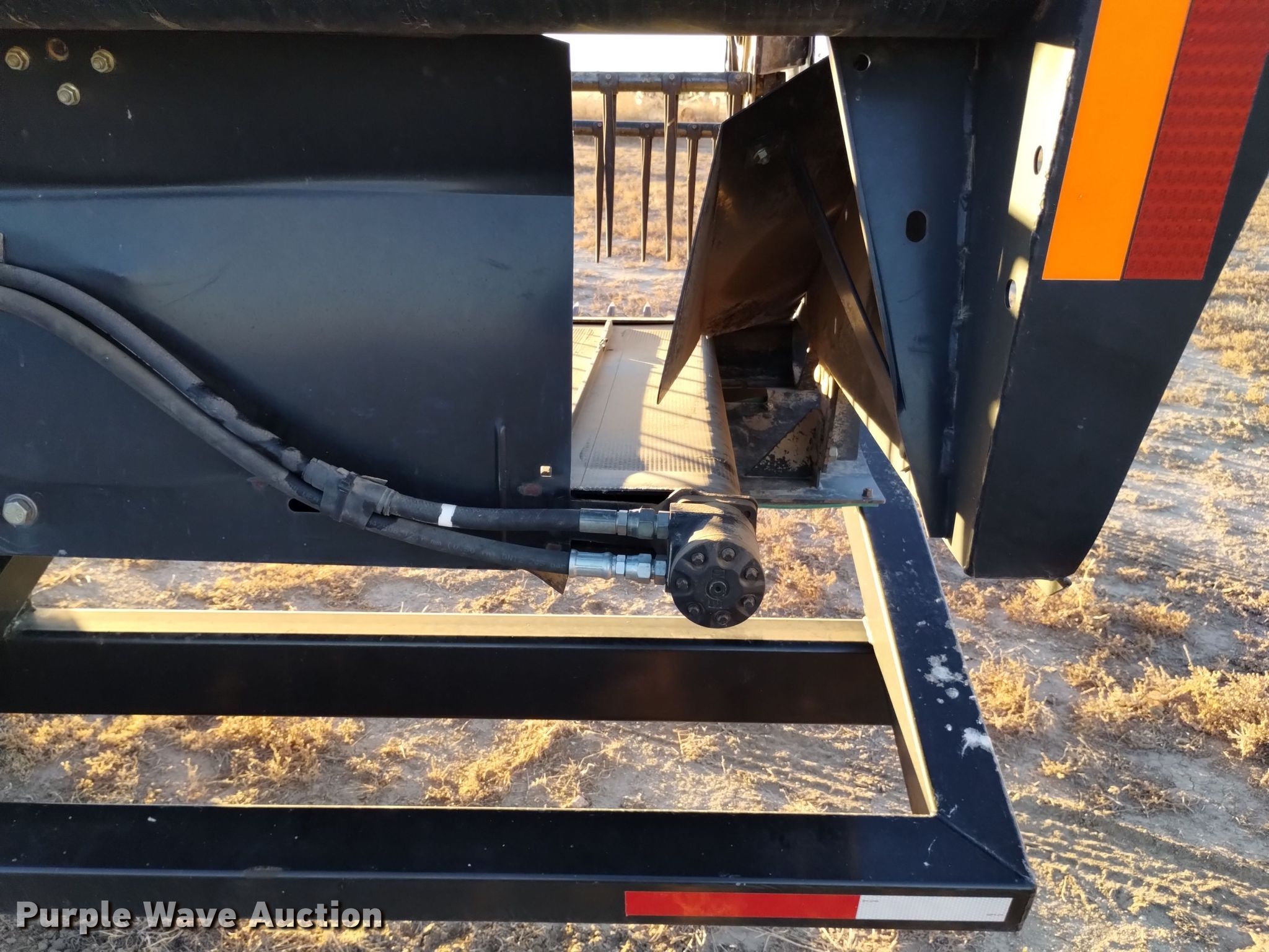 2005 MacDon 973 draper head. Serial: 164783. Features Width: 36', Reel: Finger Hydraulic reel height control, Skid plates: Poly, Single point coupler, Drivelines: Single. Tires Tire size: 20.5-8.00. Notes Trailer not included. Harmon Ranch. Springfield, CO 81073