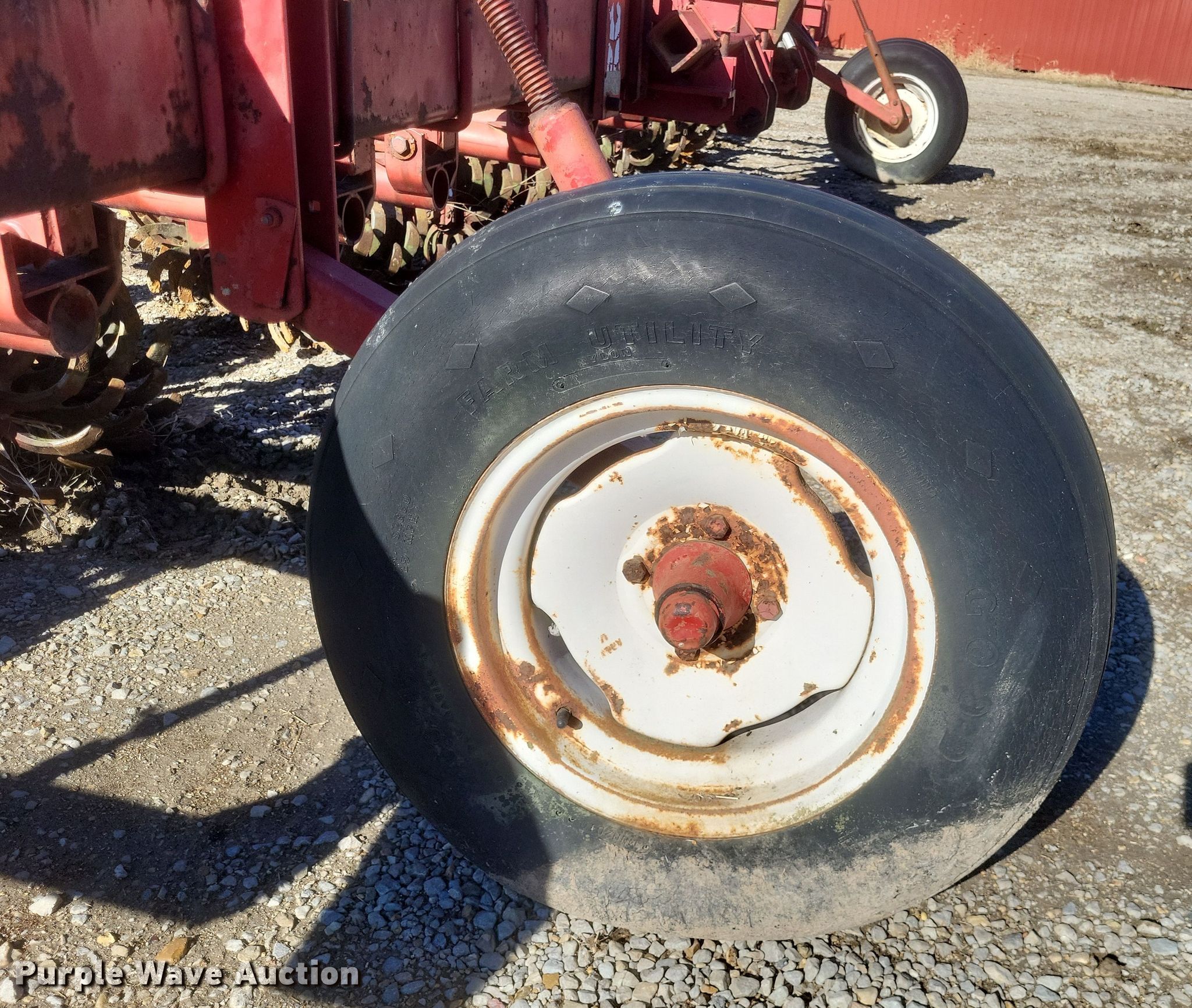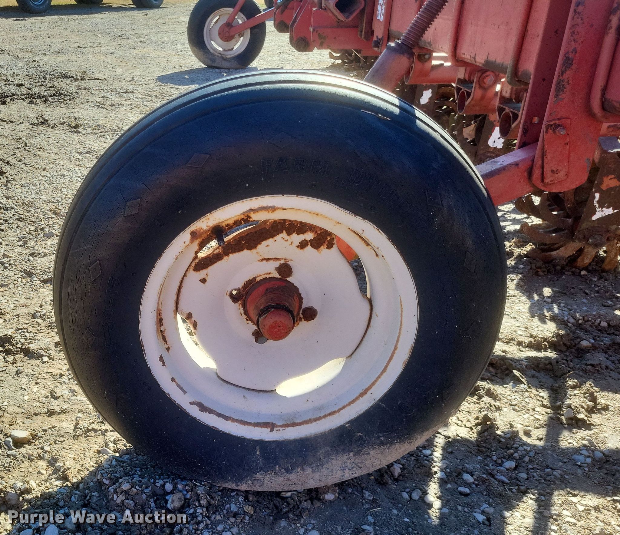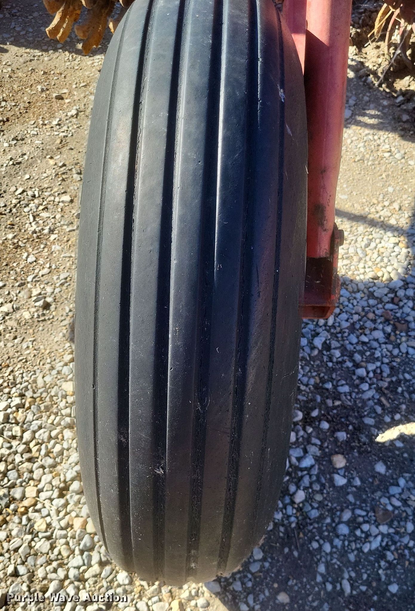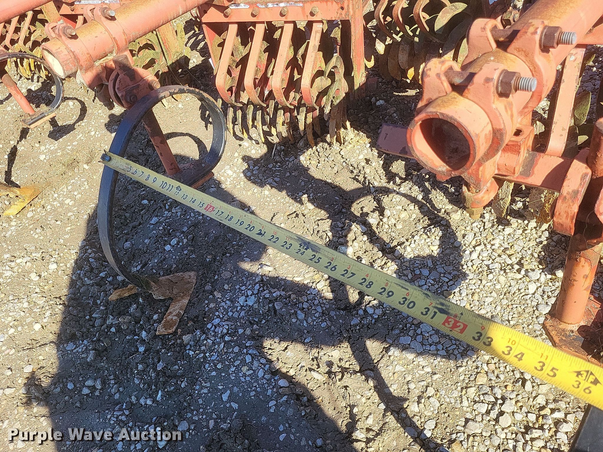 Lilliston row crop cultivator. Overall width: 25' 5". Features 36" rows, 10" sweeps, Hitch: Three point, Gauge wheels Size: 7.60-15. Allen Tesreau Farms Retirement Auction. 16284 County Rd 206. Campbell, MO 63933