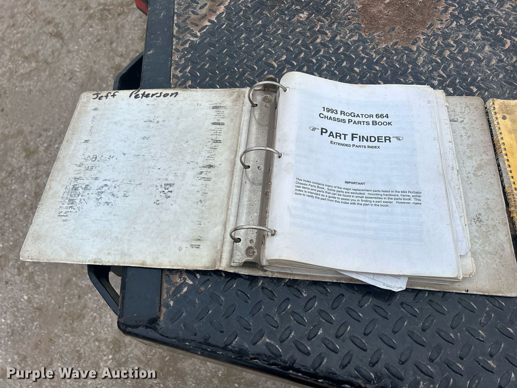 1993 Ag-Chem RoGator 664 sprayer. Engine hours: 5,723 on meter, Serial: 6401823. Engine Cummins, Cylinders: 6, Fuel type: Diesel. Transmission Hydrostatic, Four wheel drive. Operators station AC, Heat. Features Capacity: 630 gallons, Type: Stainless Steel, Foam marker Capacity: 35 gallons, Boom Width: 60', Sections: 5, Boom breakaway, Hydraulic boom fold, Hydraulic height control, Nozzle Spacing: 20", Make: TeeJet, Nozzle bodies: 3-way, Electronics Light bar Trimble EZ-Guide 250, Spray controls Raven SCS460.. Tires Size: 320/80R42, Row crop tires. Notes Additional 380/85R34 tires and wheel included, Headlight broken , Taillight broken. Huebner Farms LLC. w812 County Road Z. Kaukauna, WI 54130