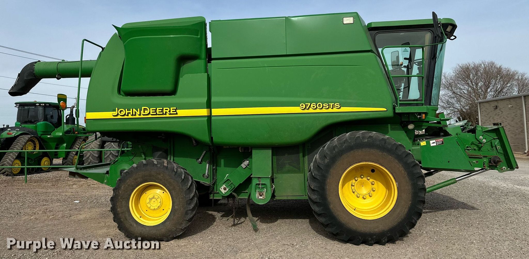 Purple Wave is selling a used Combine in Oklahoma. This item is a 2005 John Deere 9760 STS combine with the following: Engine hours: 3,893 on meter, Separator hours: 2,749 on meter, Serial: HO9760S711505