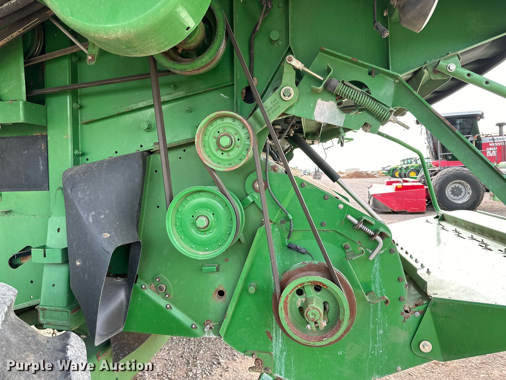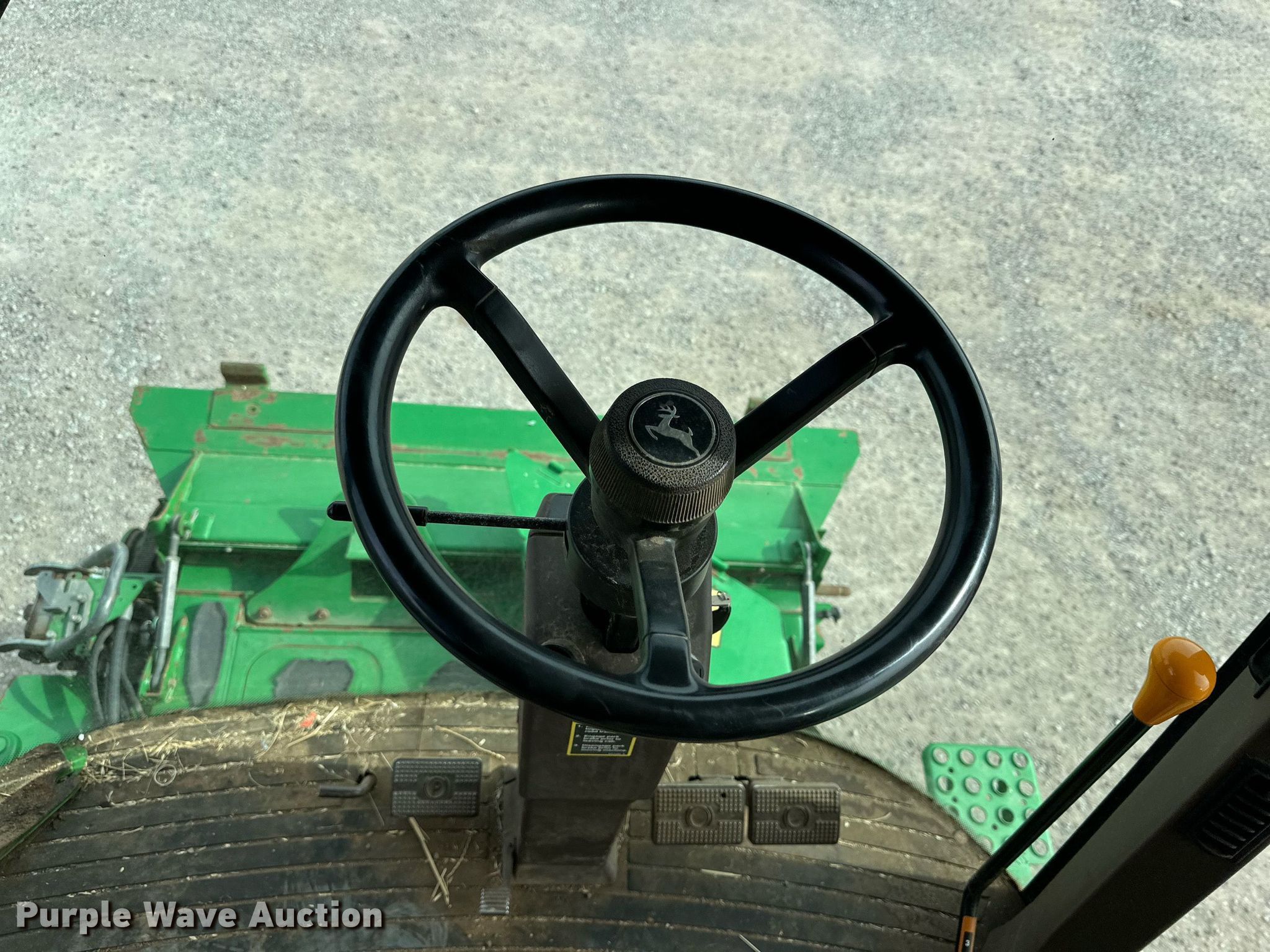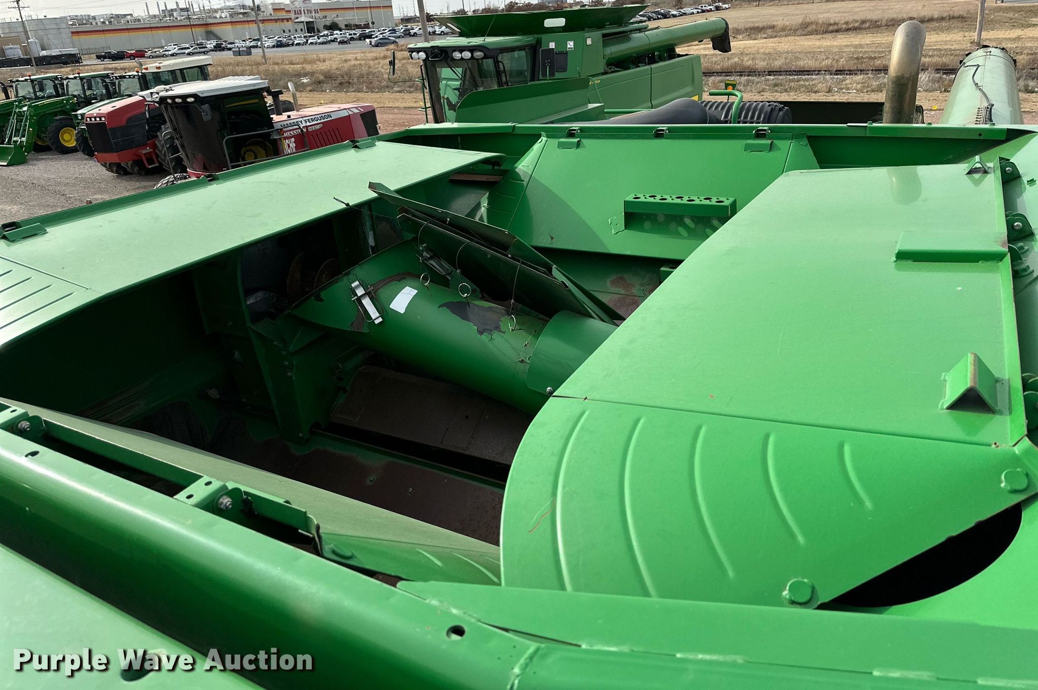 2005 John Deere 9760 STS combine. Engine hours: 3,893 on meter, Separator hours: 2,749 on meter, Serial: HO9760S711505. Engine John Deere 6081H, Serial: RG6081H268590, Displacement: 8.1L, Cylinders: 6, Fuel type: Diesel, HP: 340. Transmission Hydrostatic, 3F - 3R. Interior AC, Heat. Features Single point header coupler, Feederhouse: Lateral tilt, Variable speed, Reverser, Concaves: Round, Chaff spreader, Straw chopper, Bin: Extensions, Unloading auger length: 22'. Tires Front: 800/65R32, Rear: 18.4R26. Western Equipment. 3008 East Broadway Street. Altus, OK 73521