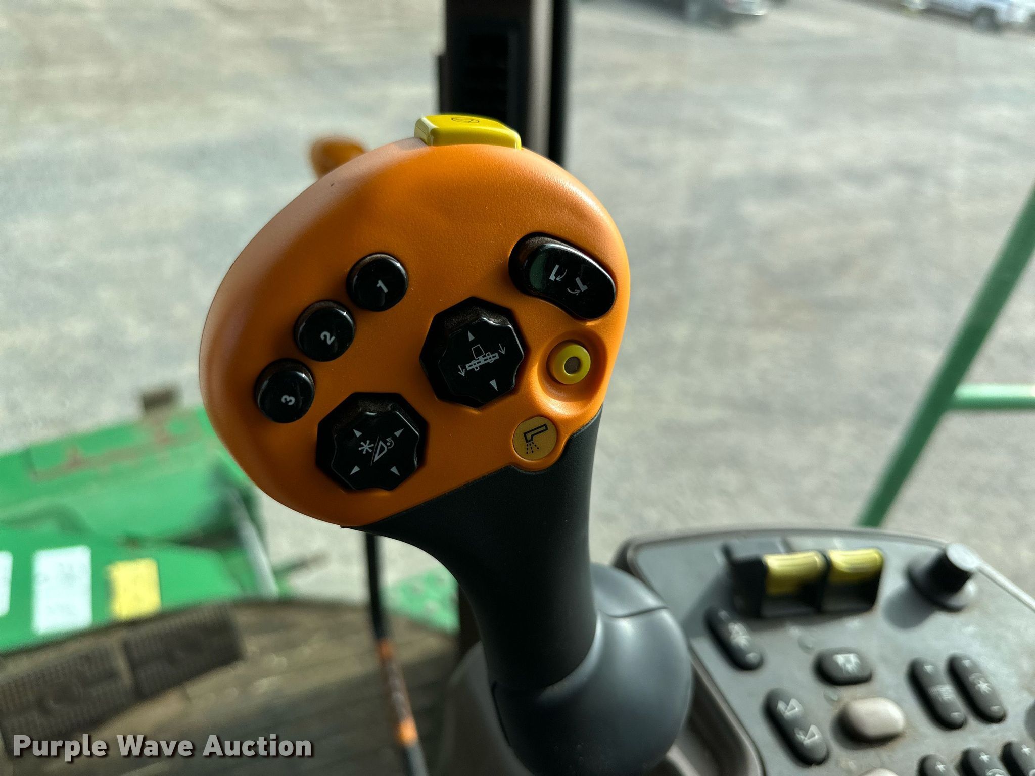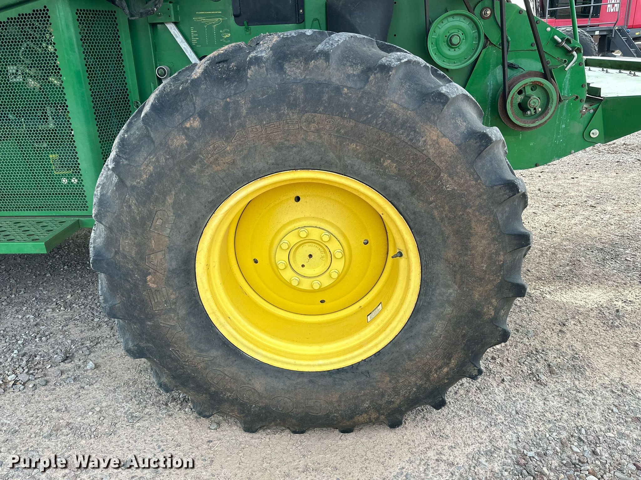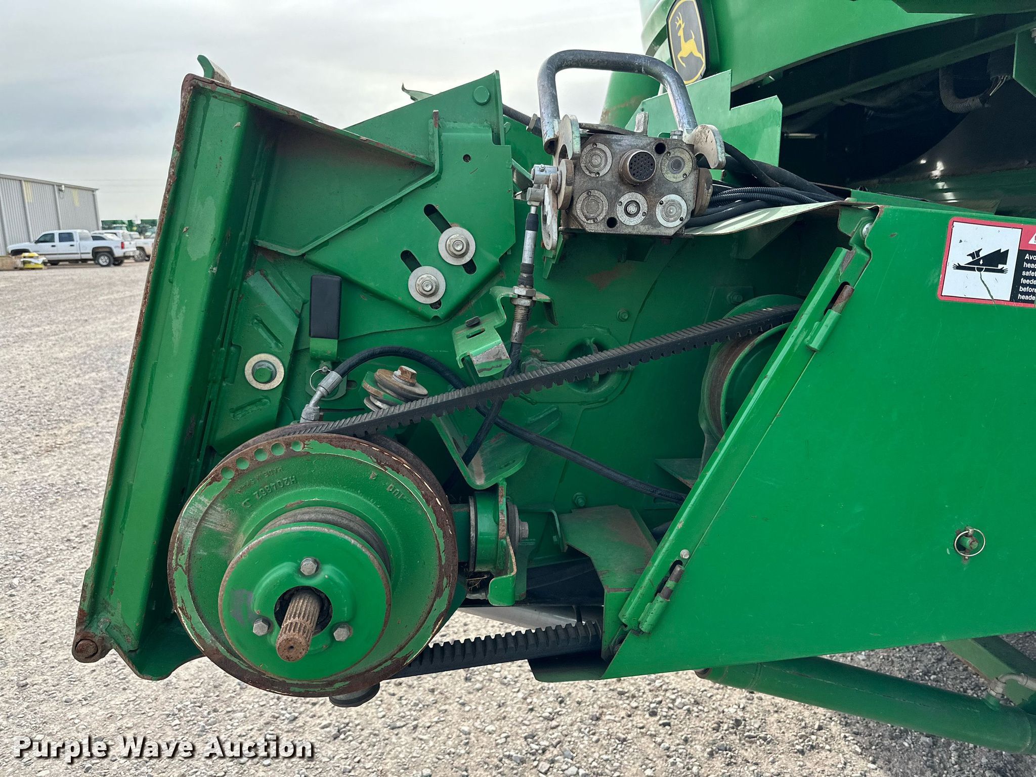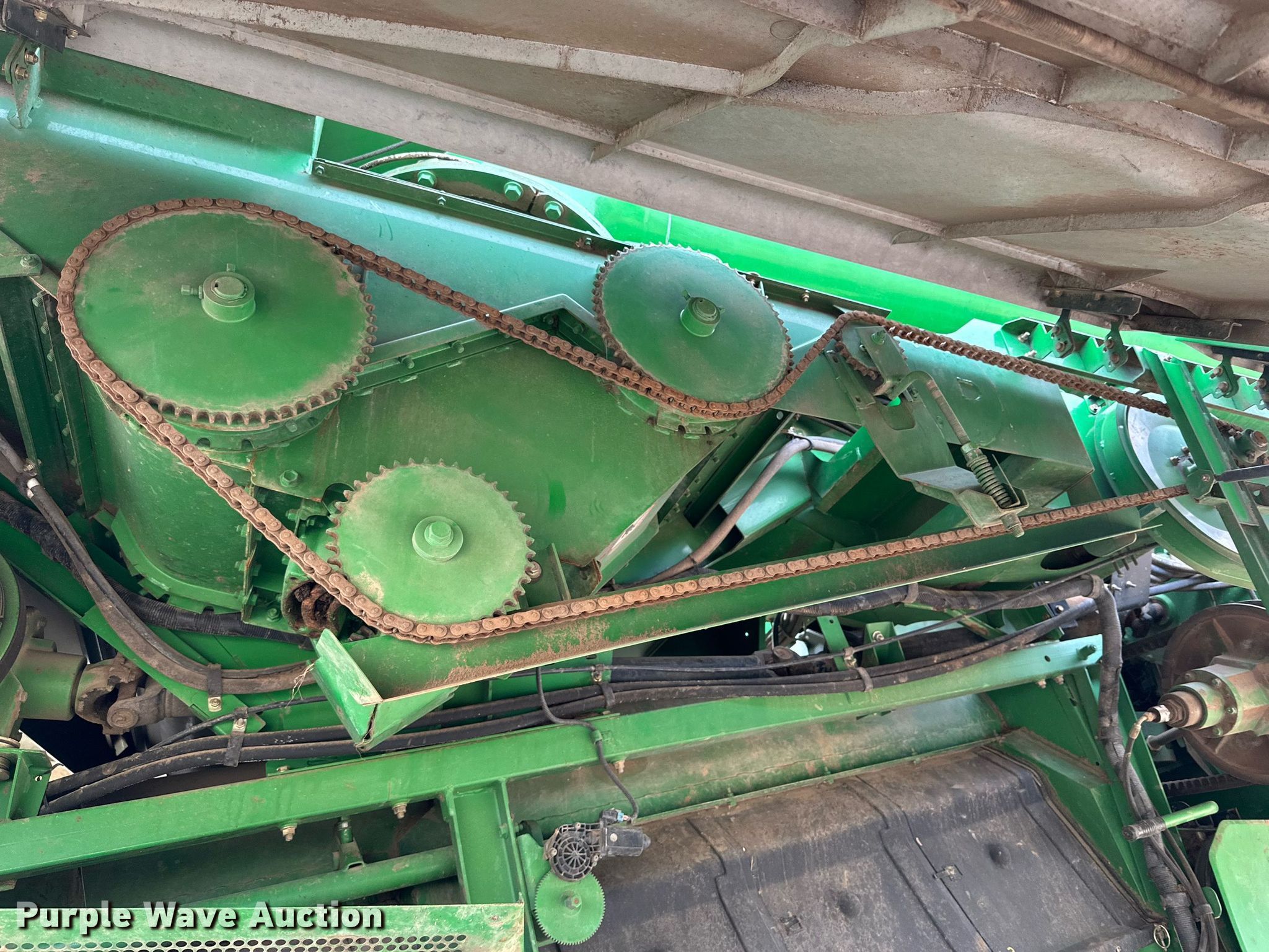 2005 John Deere 9760 STS combine. Engine hours: 3,893 on meter, Separator hours: 2,749 on meter, Serial: HO9760S711505. Engine John Deere 6081H, Serial: RG6081H268590, Displacement: 8.1L, Cylinders: 6, Fuel type: Diesel, HP: 340. Transmission Hydrostatic, 3F - 3R. Interior AC, Heat. Features Single point header coupler, Feederhouse: Lateral tilt, Variable speed, Reverser, Concaves: Round, Chaff spreader, Straw chopper, Bin: Extensions, Unloading auger length: 22'. Tires Front: 800/65R32, Rear: 18.4R26. Western Equipment. 3008 East Broadway Street. Altus, OK 73521