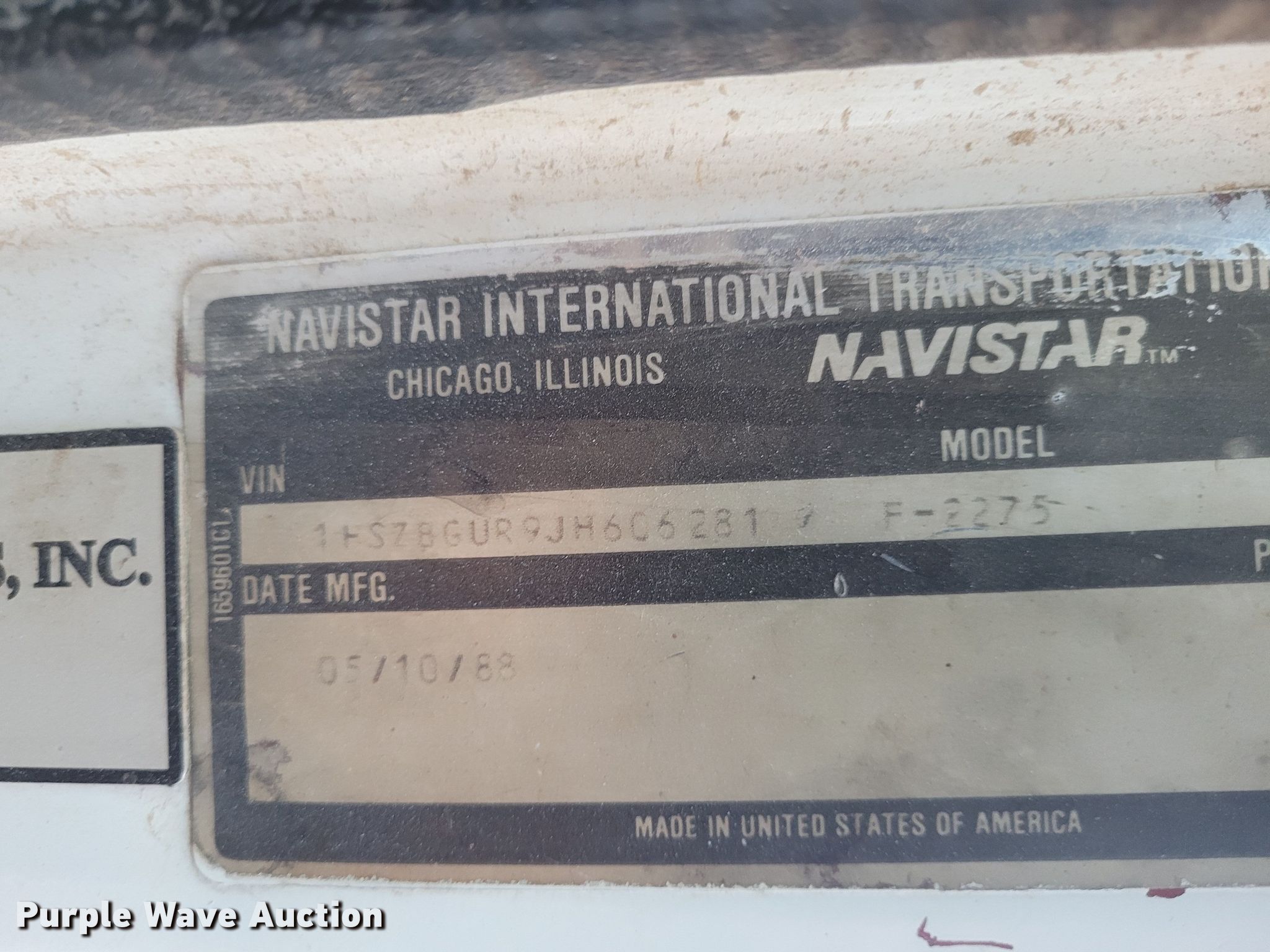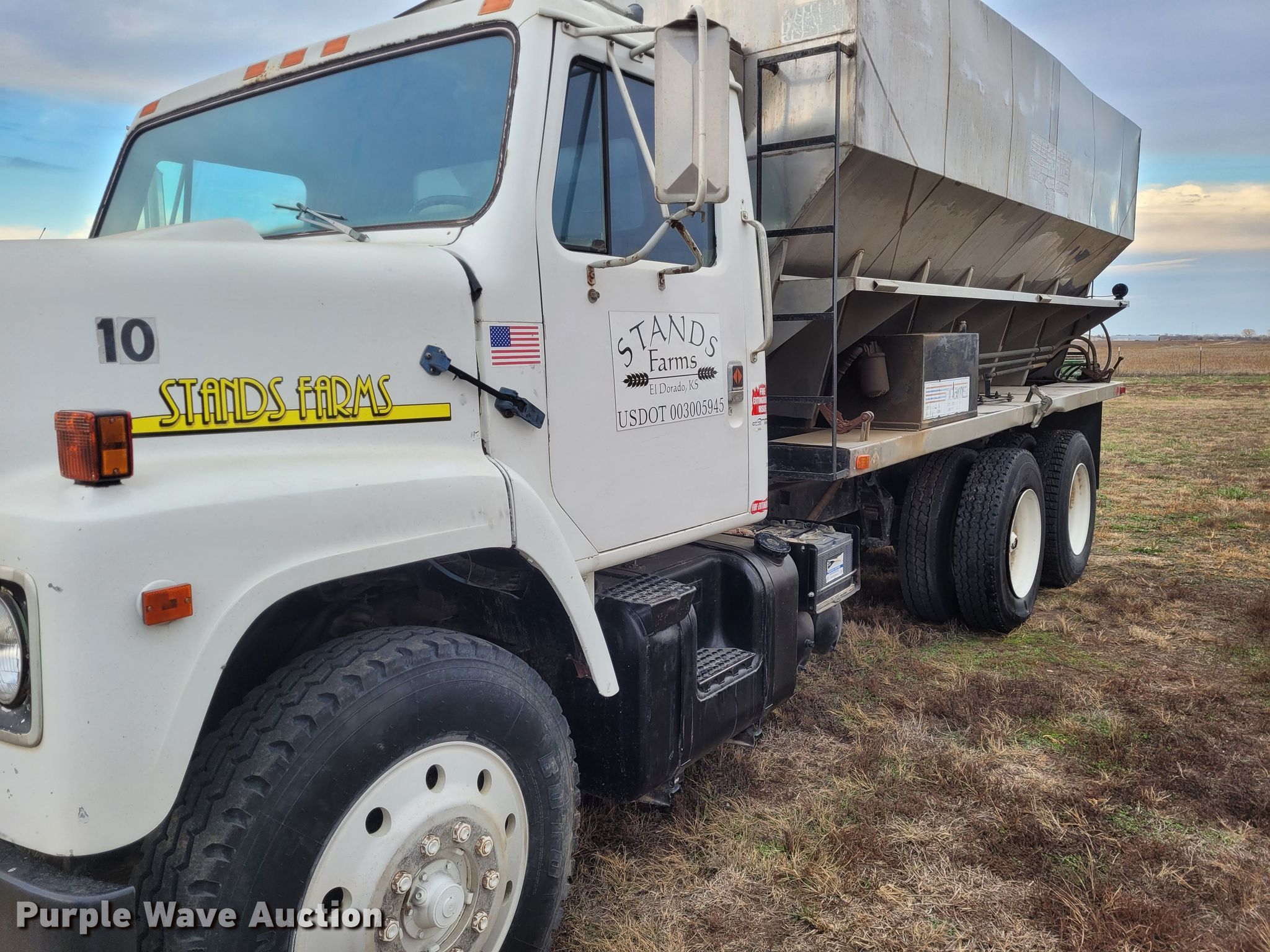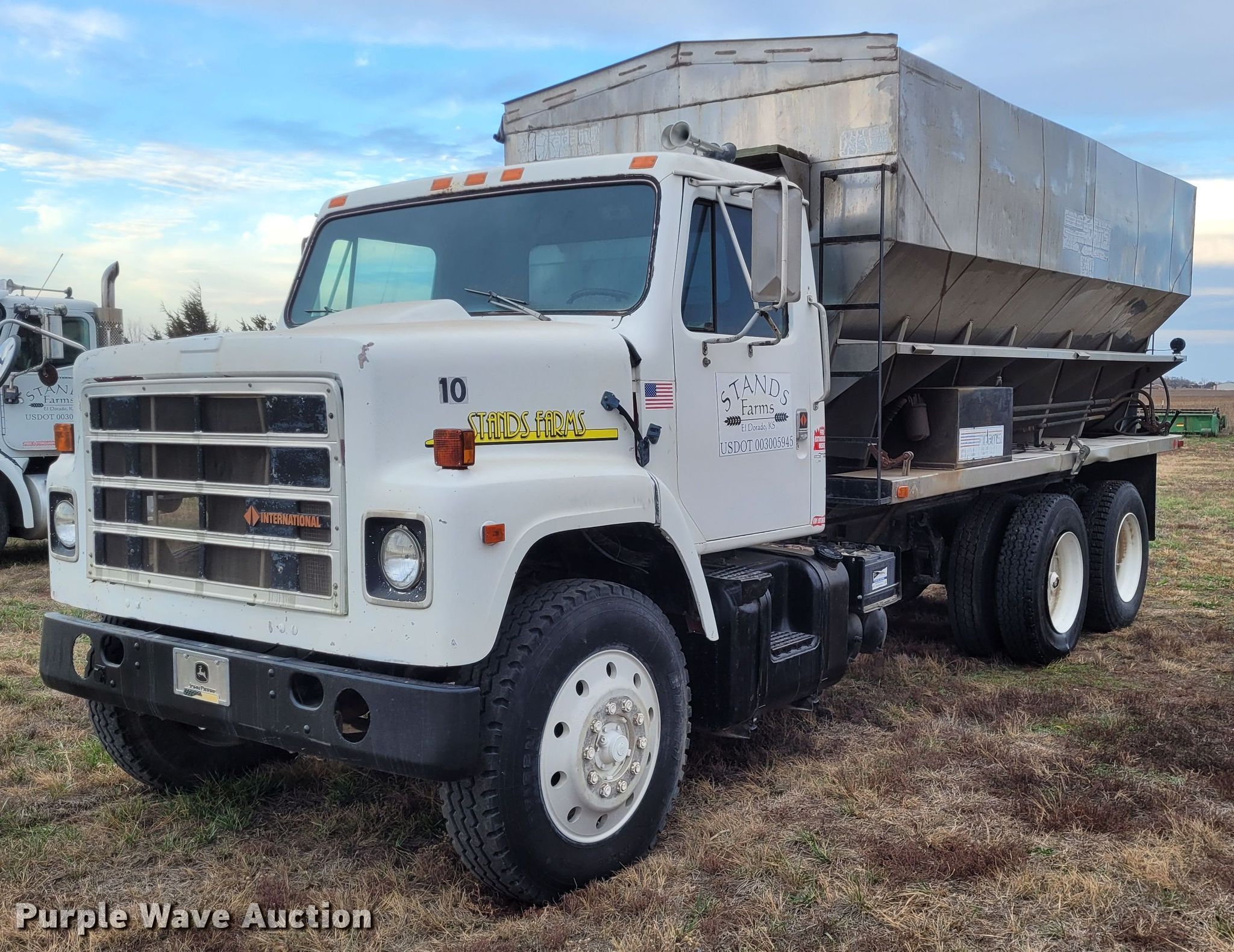 1988 International F2275 fertilizer delivery truck. Miles: 348,635 on odometer, VIN: 1HSZBGUR9JH606281. Engine Displacement: 14.0 L, Cylinders: 6, Fuel type: Diesel. Transmission Manual, Speed: 9. Chassis Axles: Tandem, Suspension: Spring, Brakes: Air, PTO. Interior AC, Heat. Features Delivery bed Adams, Steel. Tires Size: 11R24.5. Notes Flat tire, will be repaired prior to auction. Oklahoma classic title. Title distribution may be delayed up to 14 days from verification of funds. Stands Farms, LLC. El Dorado, KS 67042