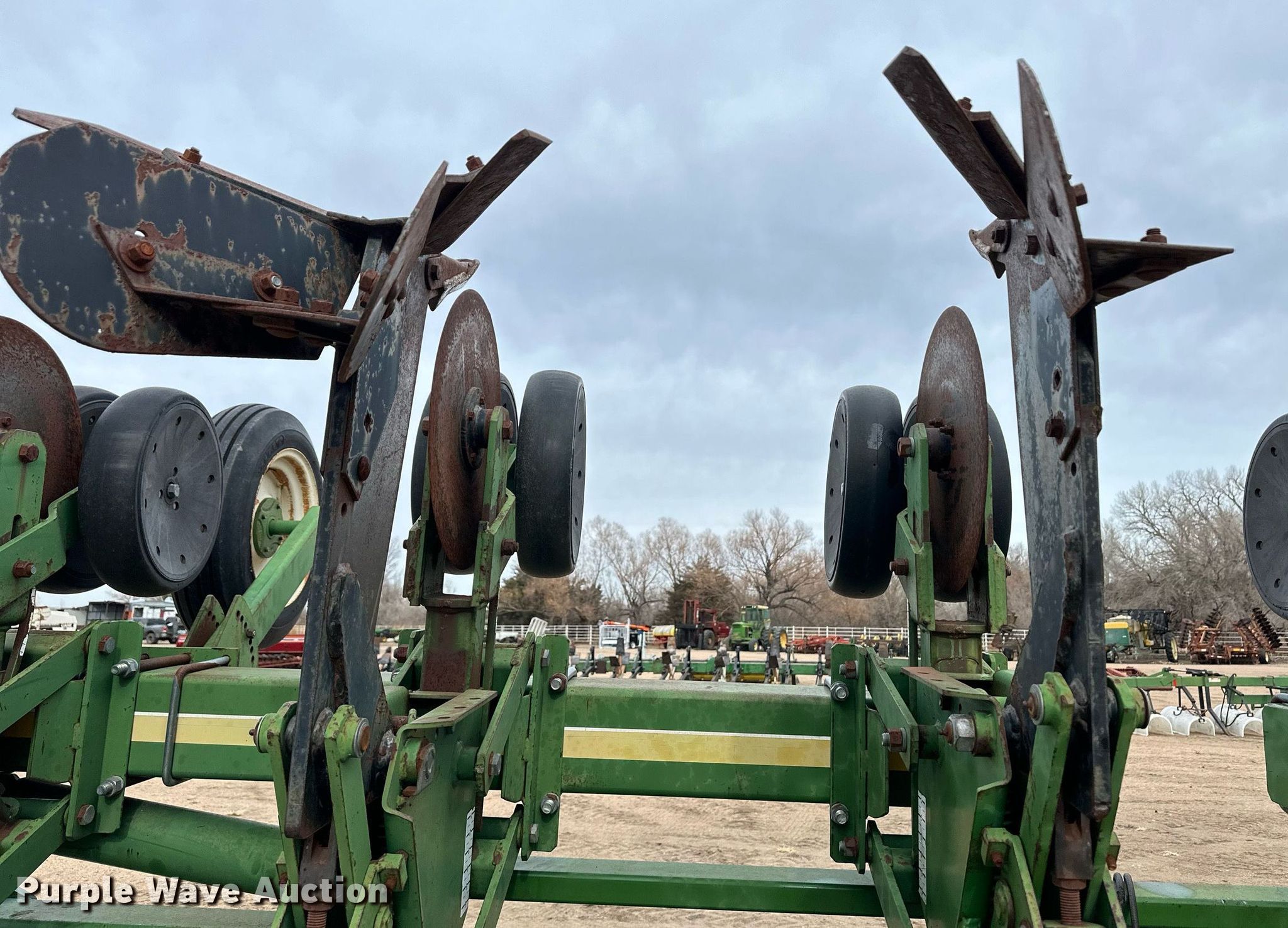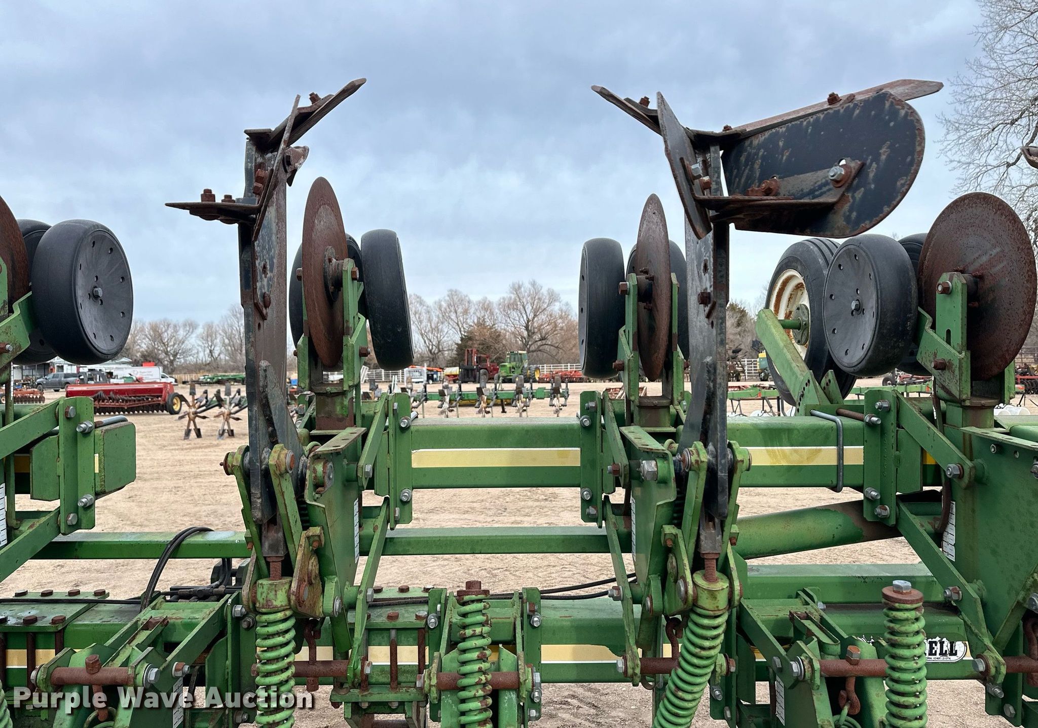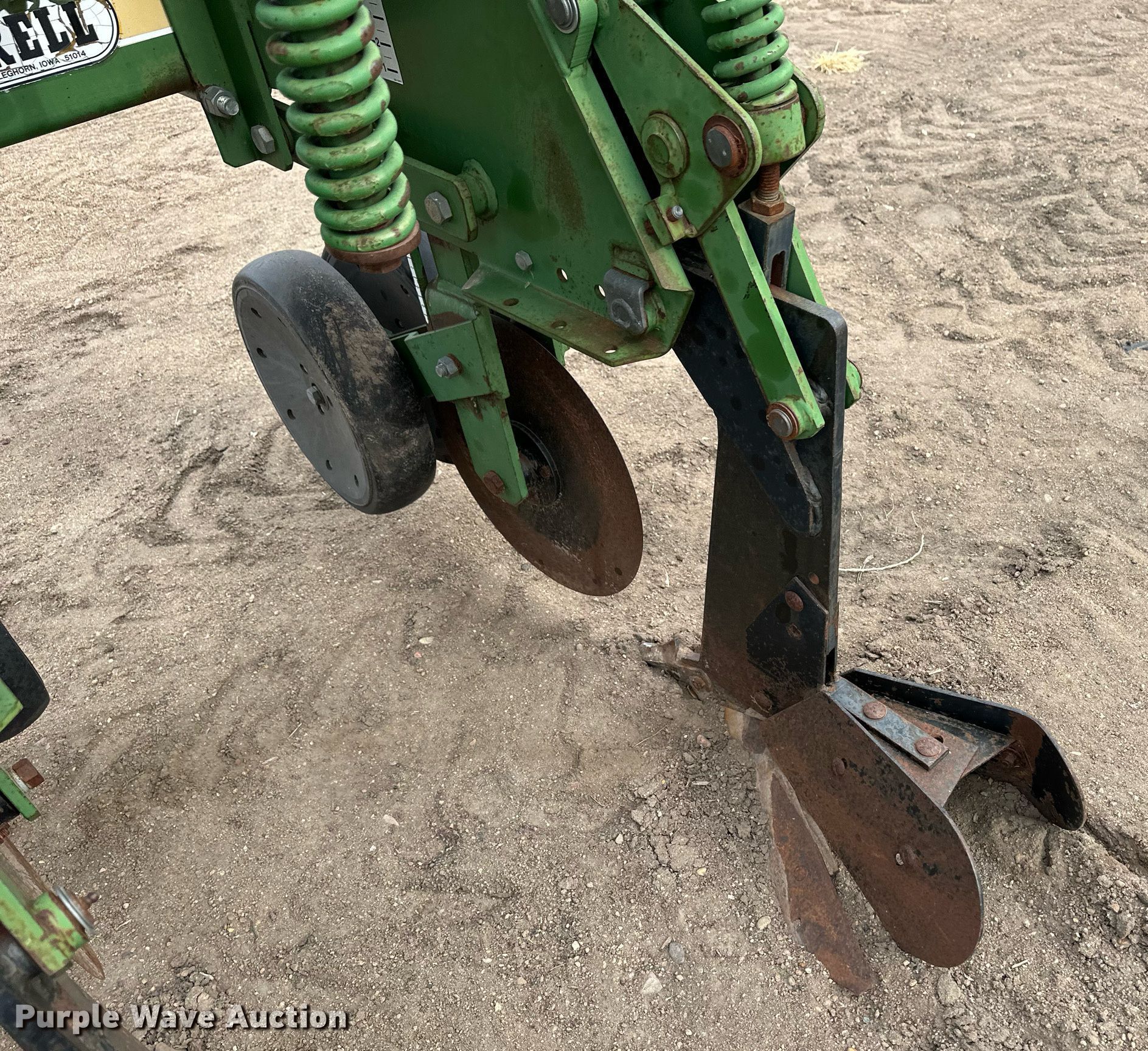 Etherell 2700 row crop cultivator. Overall width: 30'. Features Number of rows: 12, Row spacing: 30", Disk openers: Single, Shanks, Gauge wheels, Hydraulic fold, Hitch: Three point. 1137 90th Ave. Kinsley, KS 67547