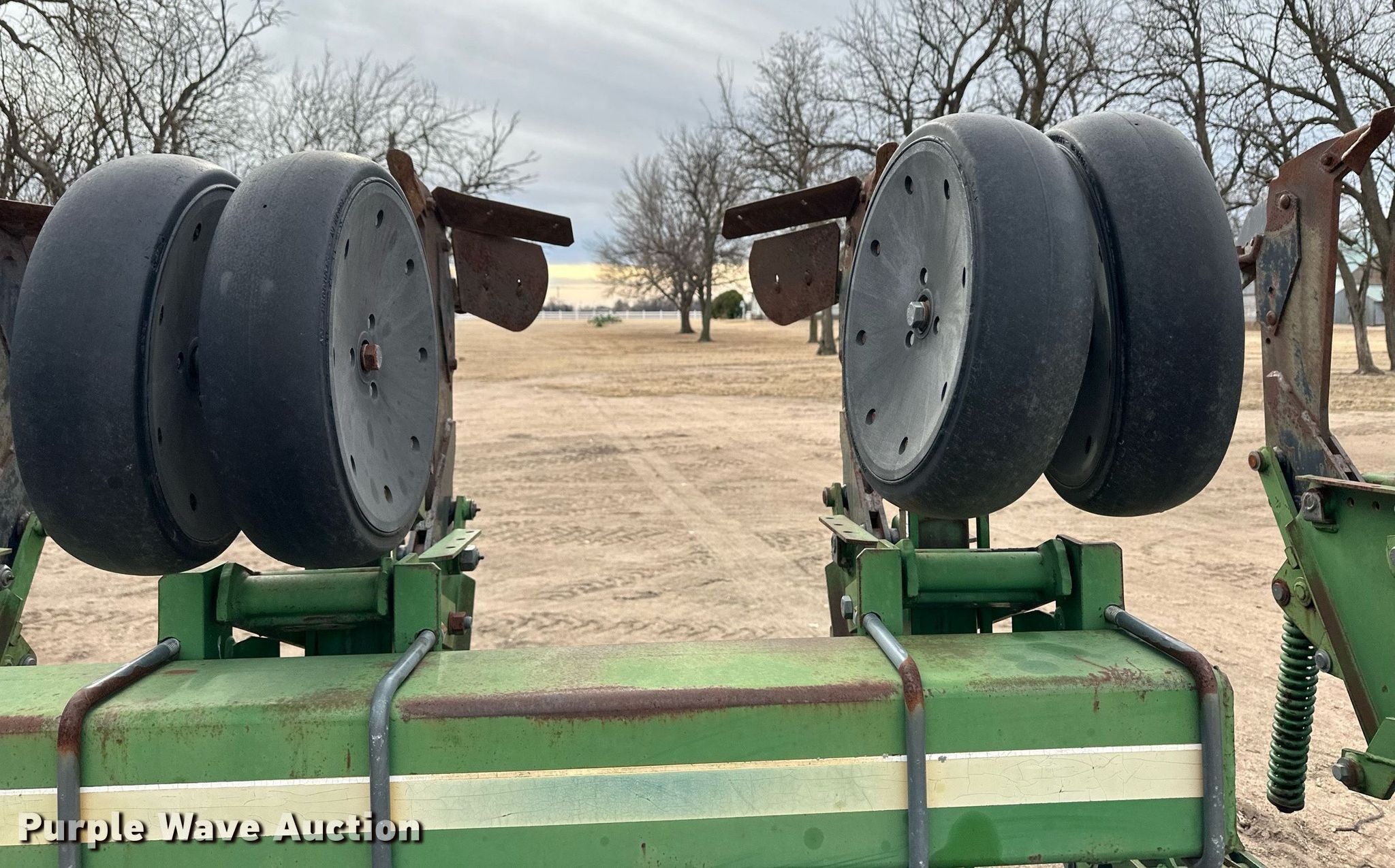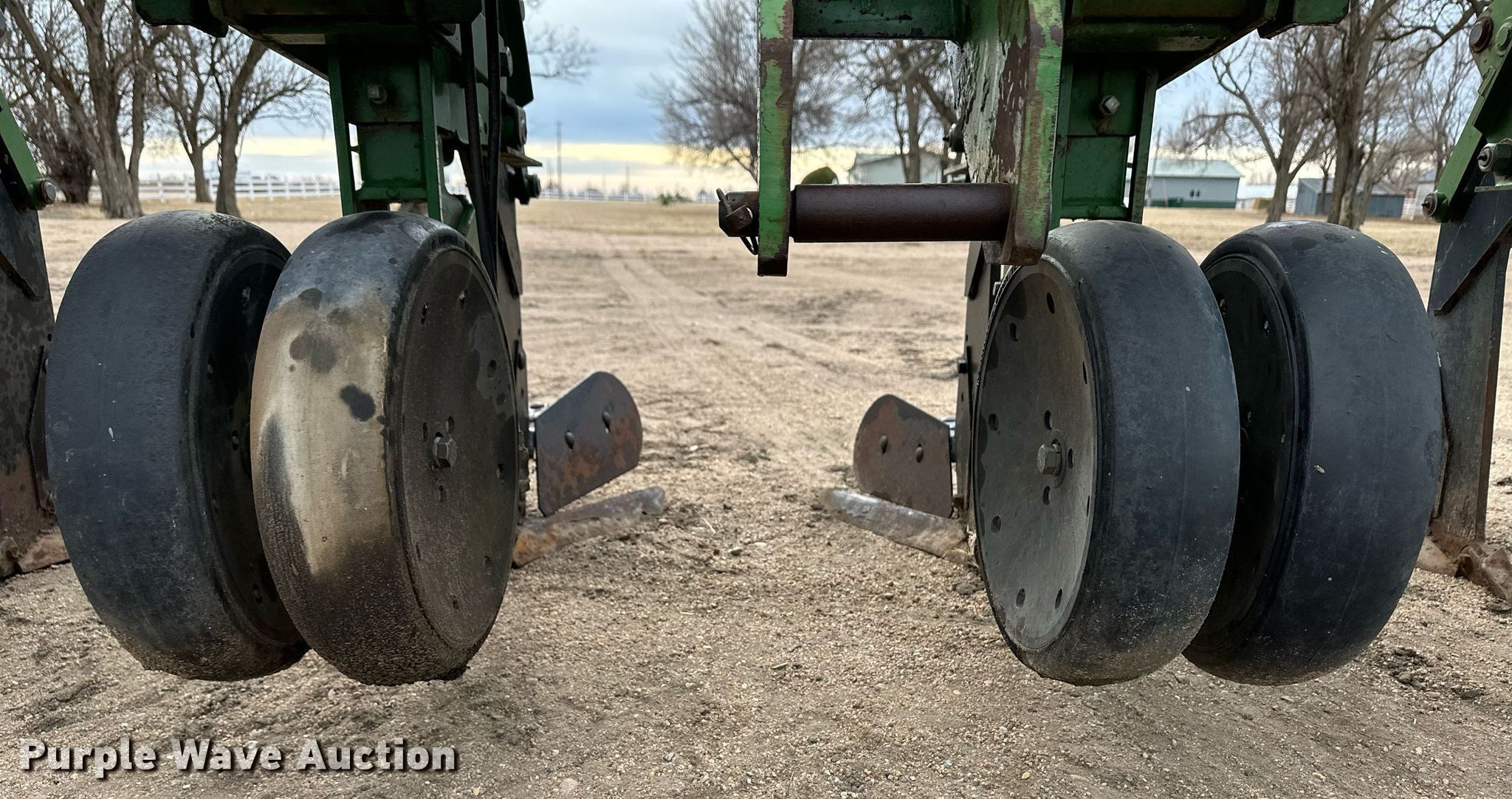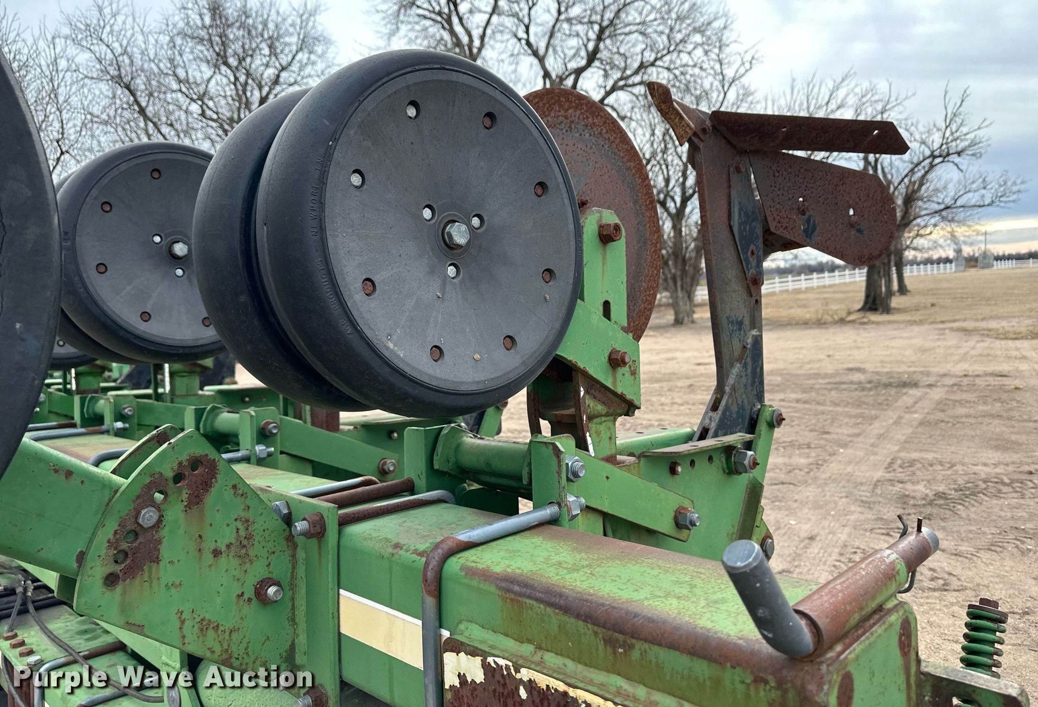 Etherell 2700 row crop cultivator. Overall width: 30'. Features Number of rows: 12, Row spacing: 30", Disk openers: Single, Shanks, Gauge wheels, Hydraulic fold, Hitch: Three point. 1137 90th Ave. Kinsley, KS 67547