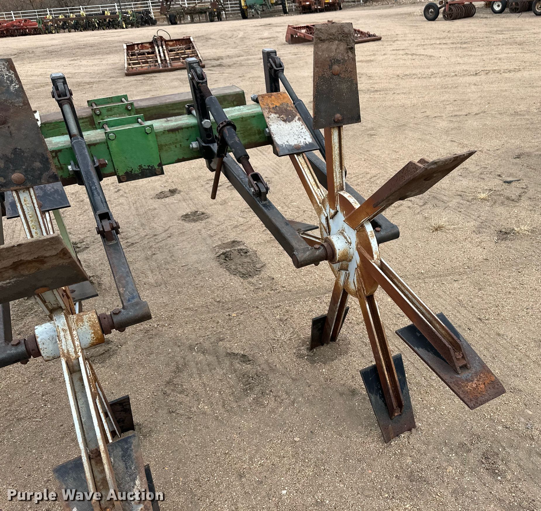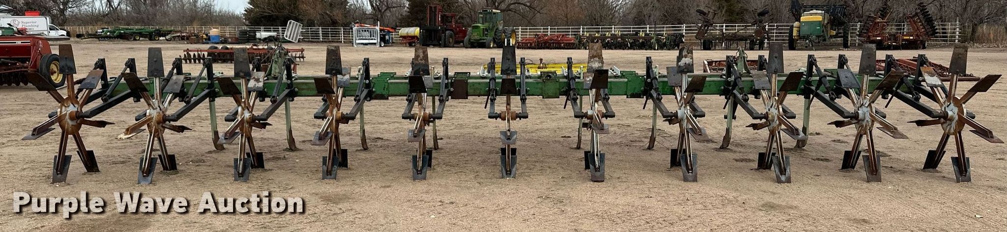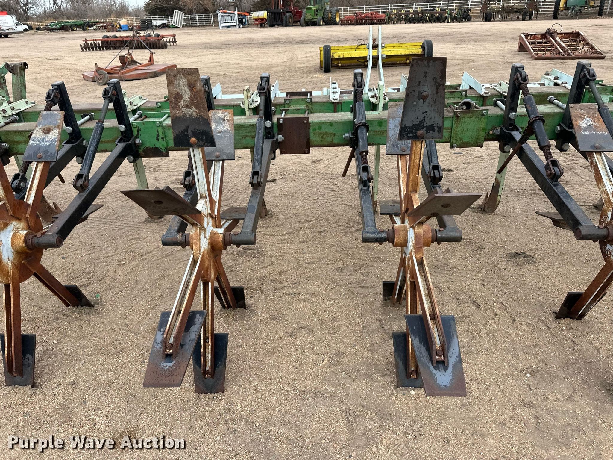 Purple Wave is selling a used Row Crop Cultivator in Kansas. This item is a Row crop cultivator with the following: Overall width: 33', Number of rows: 11, Row spacing: 36", Shanks, Hitch: Three point