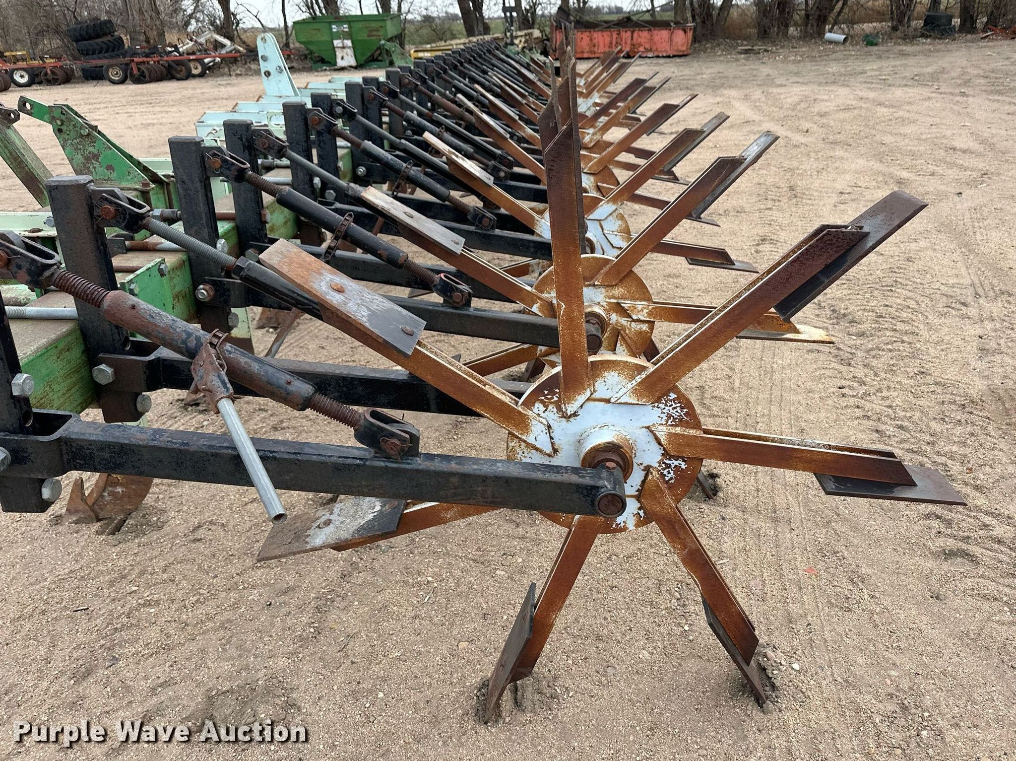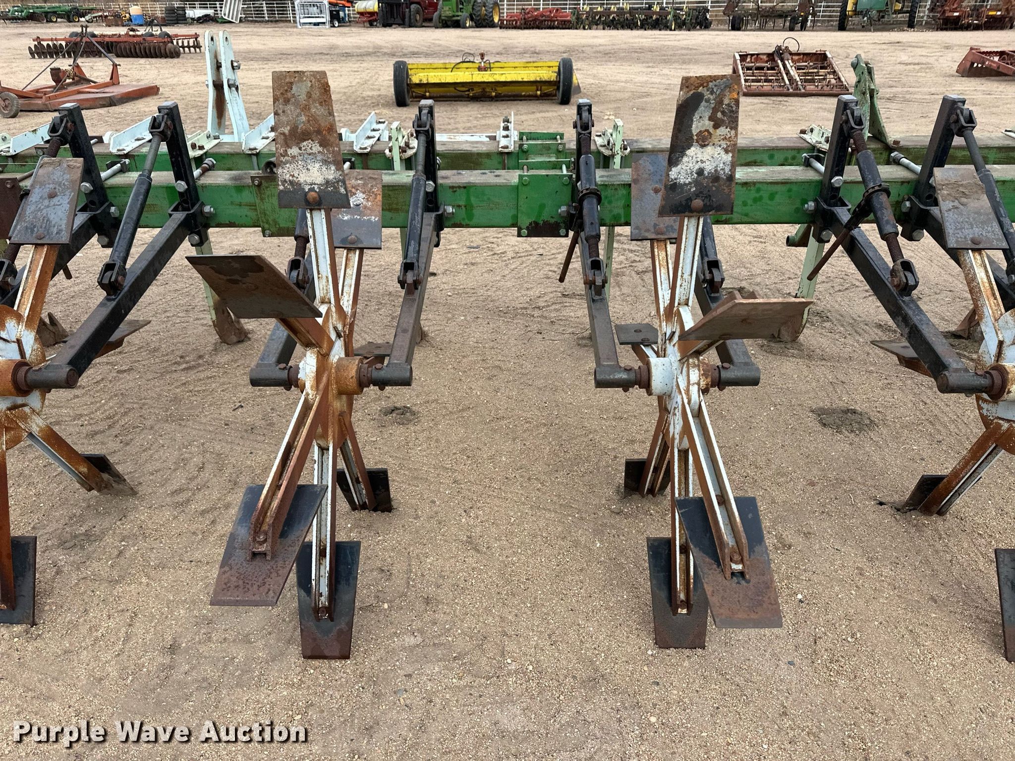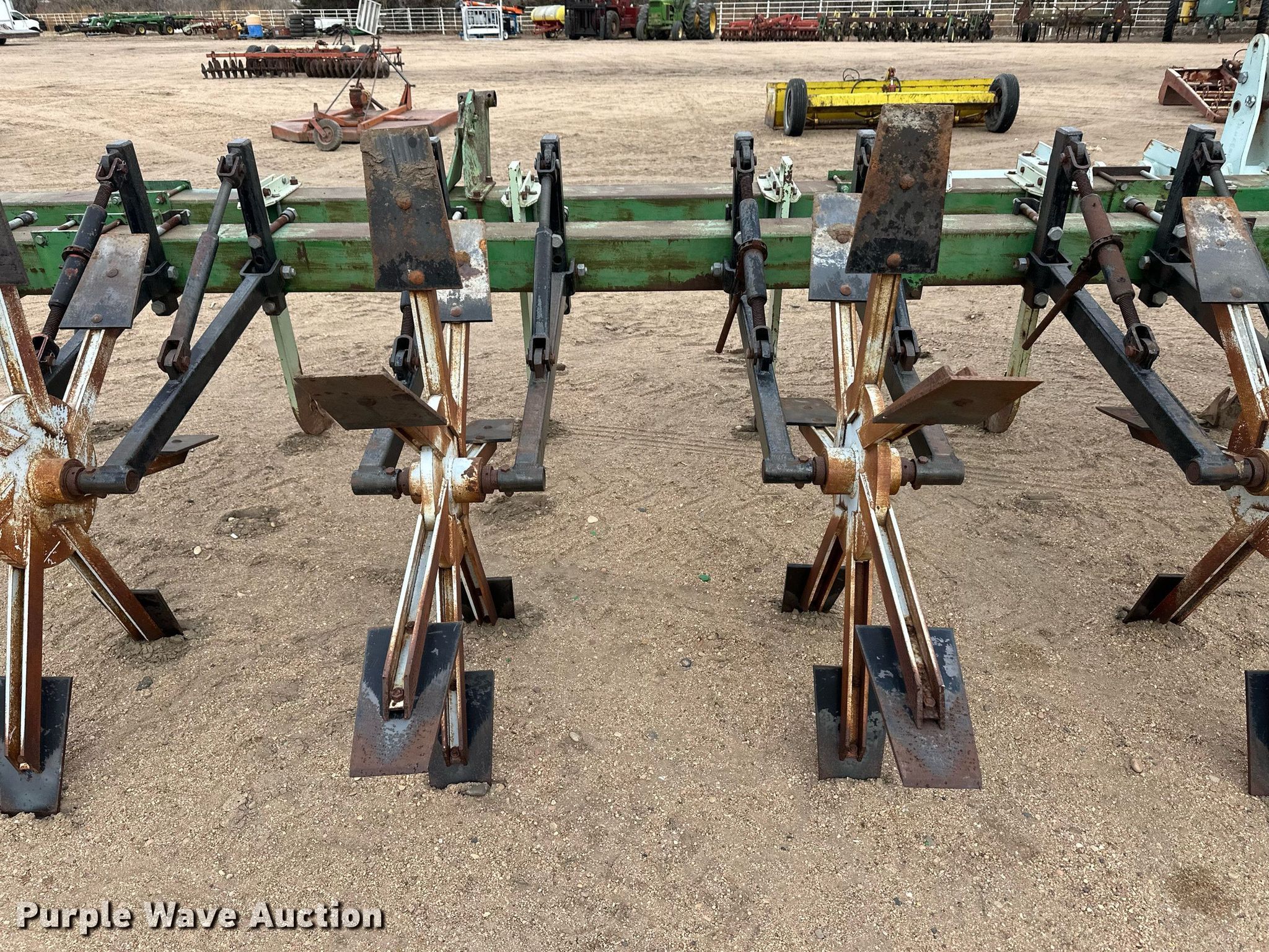 Purple Wave is selling a used Row Crop Cultivator in Kansas. This item is a Row crop cultivator with the following: Overall width: 33', Number of rows: 11, Row spacing: 36", Shanks, Hitch: Three point