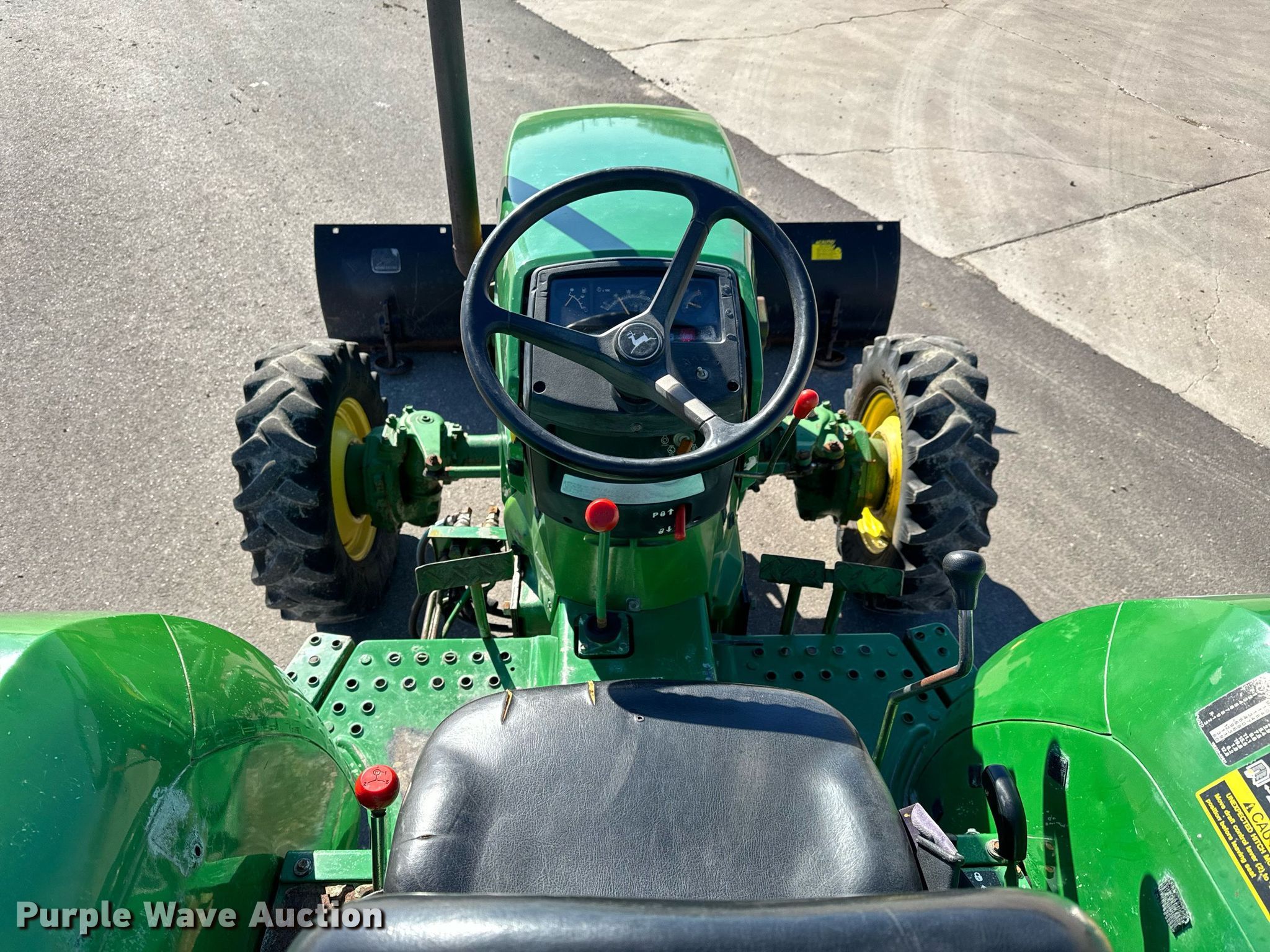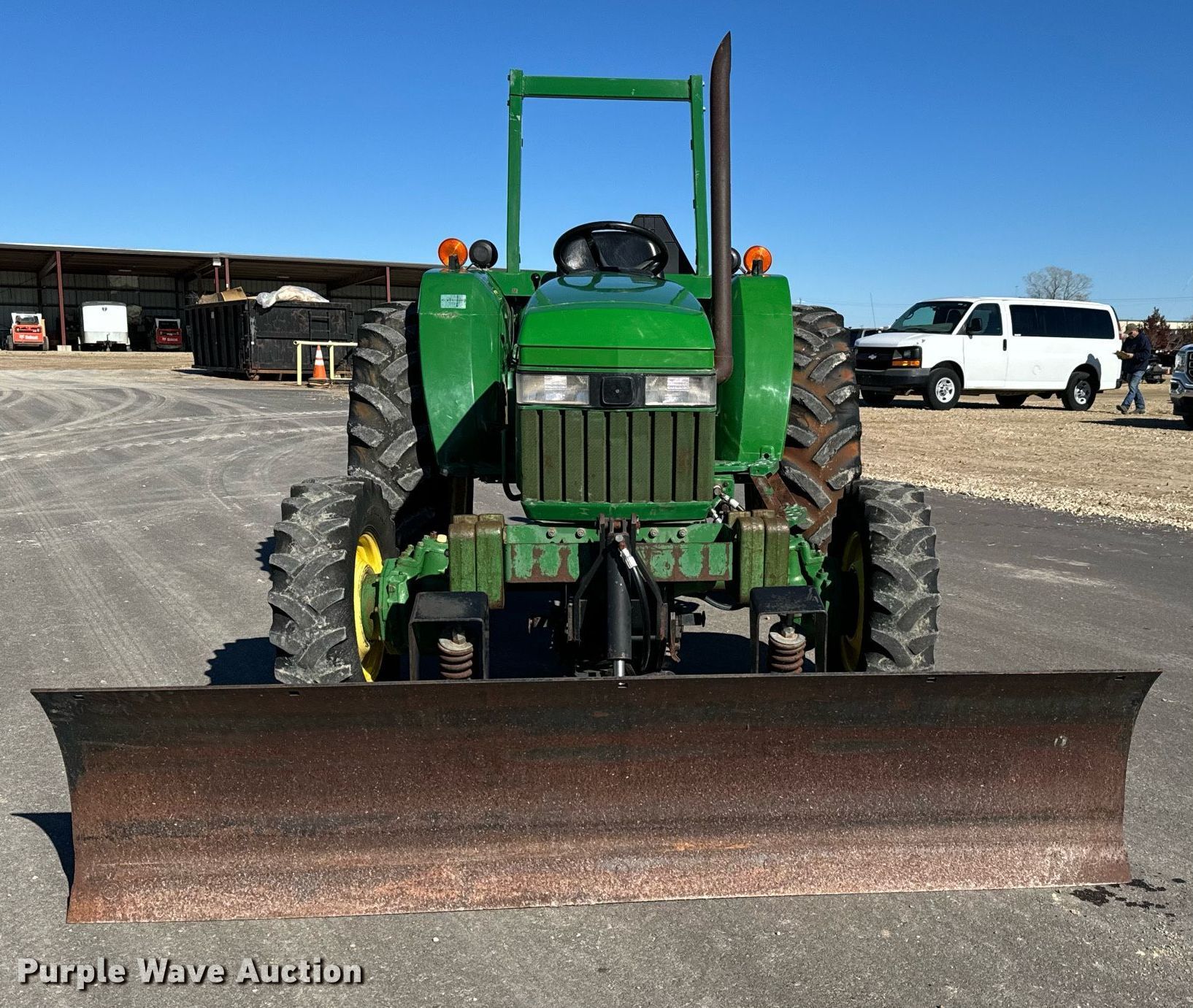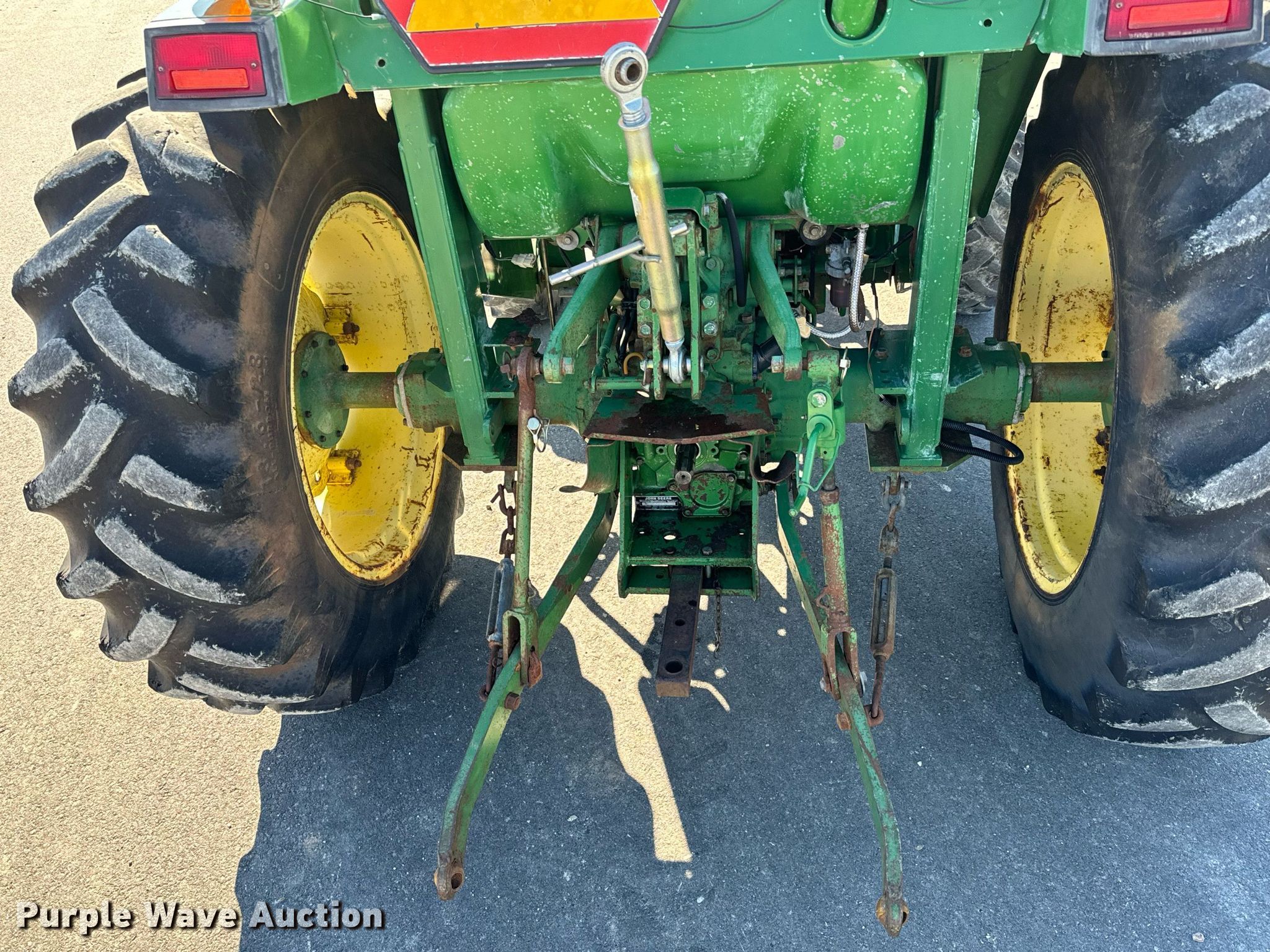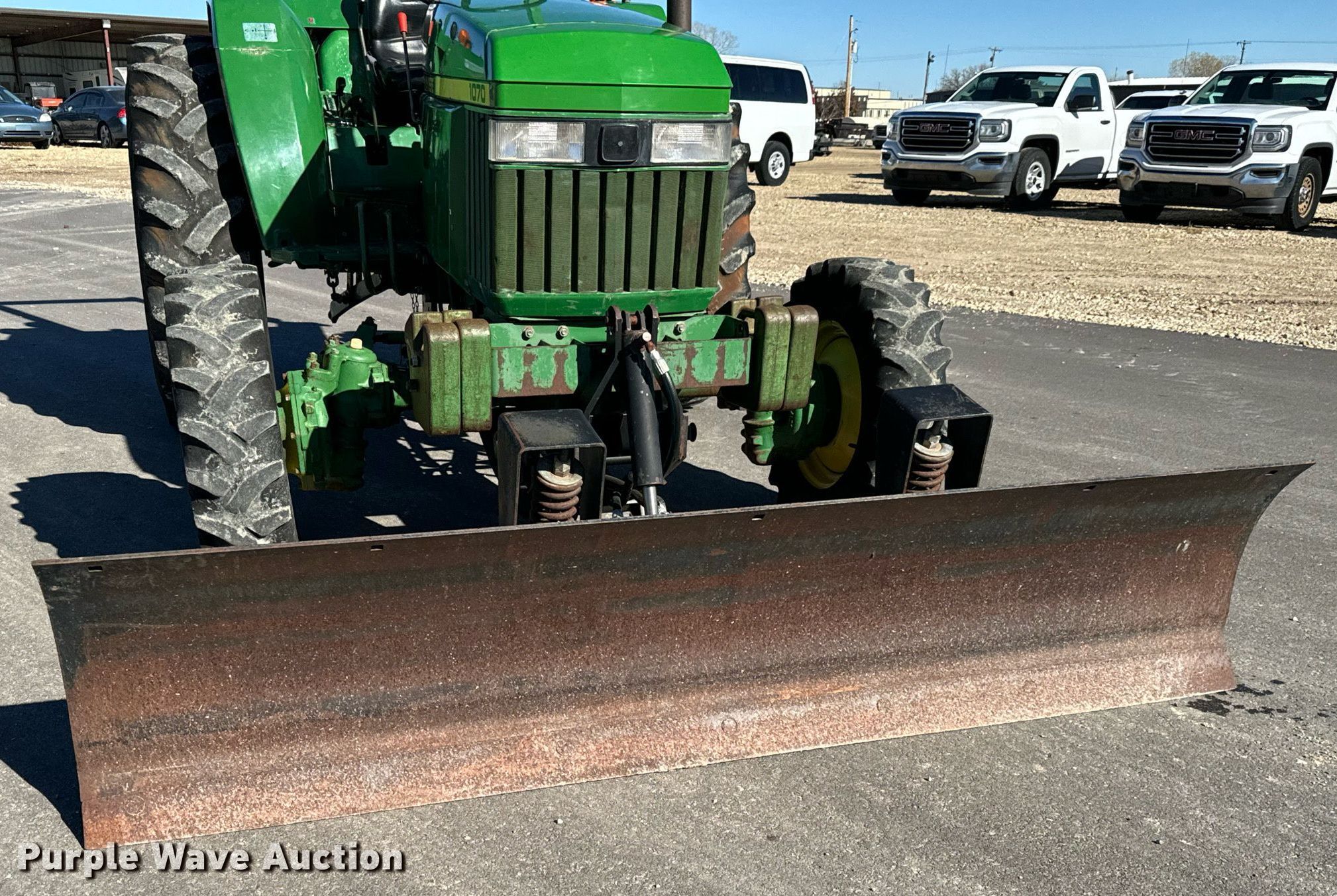 1997 John Deere 1070 MFWD tractor. Hours: 2,393 on meter, Serial: M01070A160291. Engine John Deere 4TN84-RJK, Cylinders: 4, Fuel type: Diesel. Transmission Manual, 9F - 3R. Features PTO: 540, Three point Top link, Hydraulic remote sets Front: 2, Suitcase weights: 4, Front blade John Deere , Width: 84", Height: 20", Blade controls: Joystick. Tires Front: 8-16, Rear: 13.6-28. CD&H, Inc.. El Dorado, KS 67042