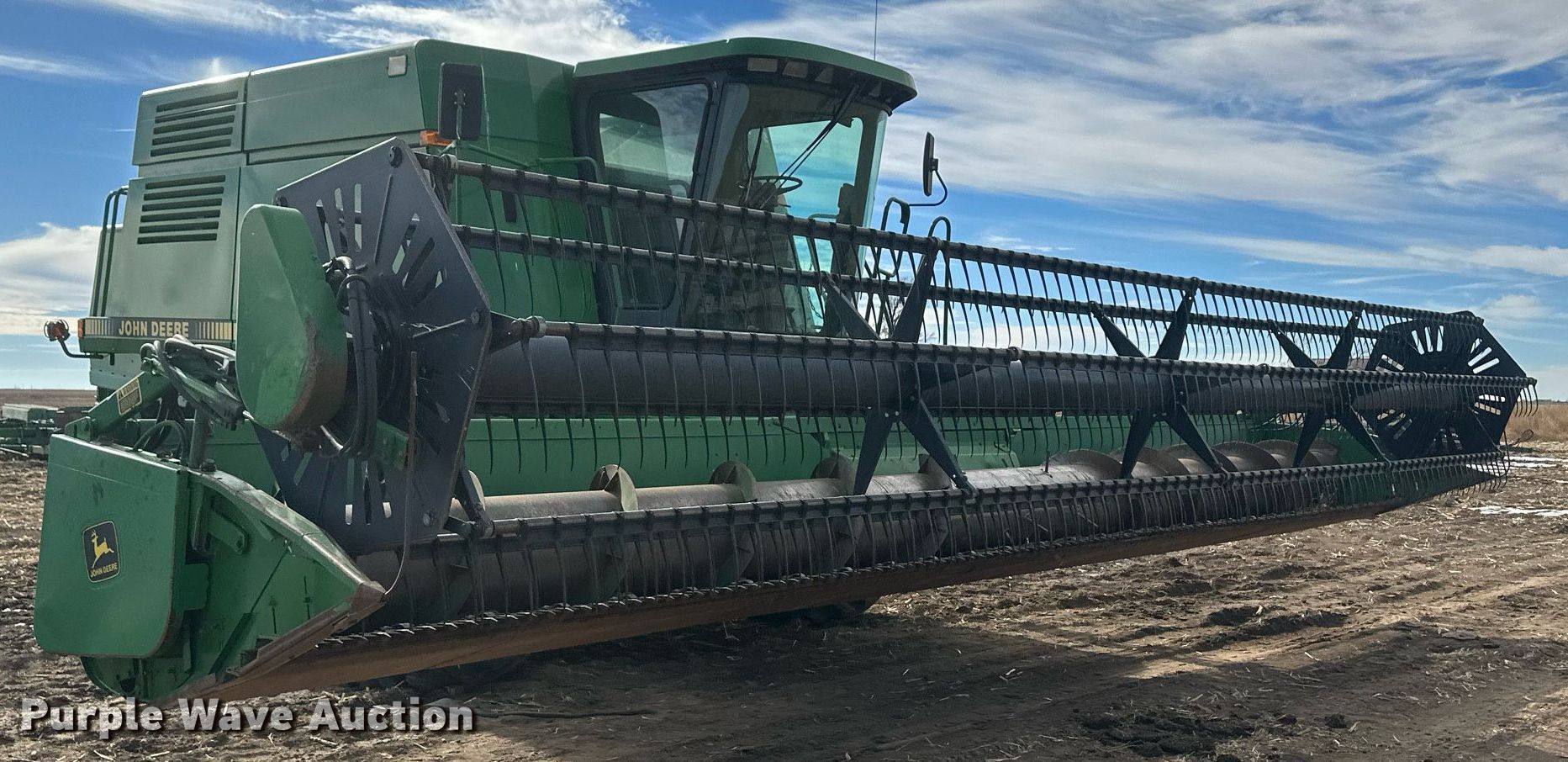 1991 John Deere 9600 combine. Engine hours: 4,385 on meter, Separator hours: 3,192 on meter, Serial: H09600X641601. Engine John Deere, Cylinders: 6, Fuel type: Diesel. Transmission Hydrostatic, 3F - 3R. Interior AC, Heat. Features Feederhouse: Variable speed, Reverser, Rotor speeds: Variable, Straw chopper, Bin: Extensions, Unloading auger length: 19', Header John Deere 930, Serial: H00930P641225, Platform head Rigid, Width: 30', Reel: Finger Hydraulic fore/aft, Hydraulic reel height control, Skid plates: Steel, Drivelines: Dual. Tires Front: 30.5L-32, Rear: 14.9-24. Fort Dodge, KS 67843