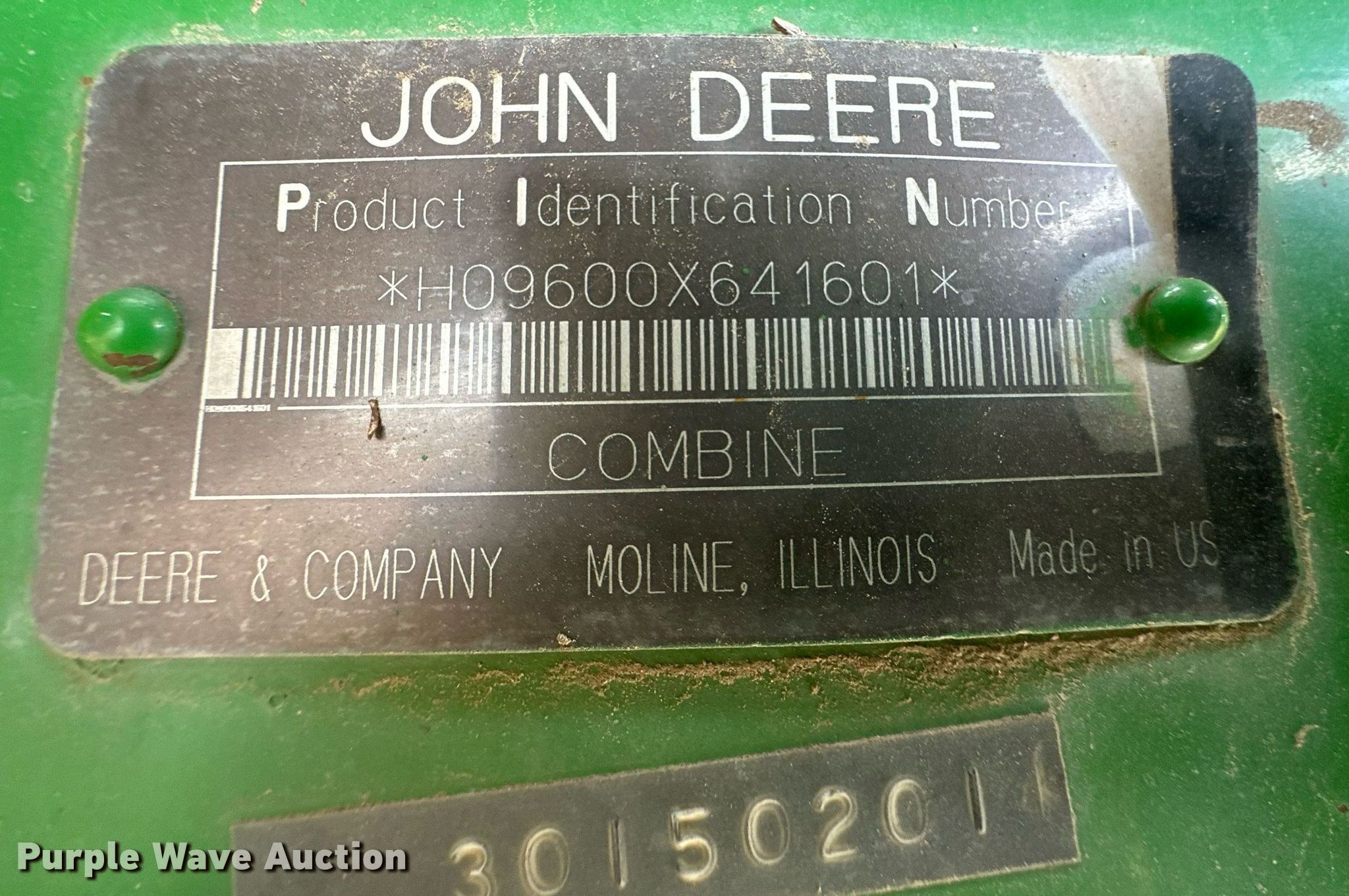 Purple Wave is selling a used Combine in Kansas. This item is a 1991 John Deere 9600 combine with the following: Engine hours: 4,385 on meter, Separator hours: 3,192 on meter, Serial: H09600X641601