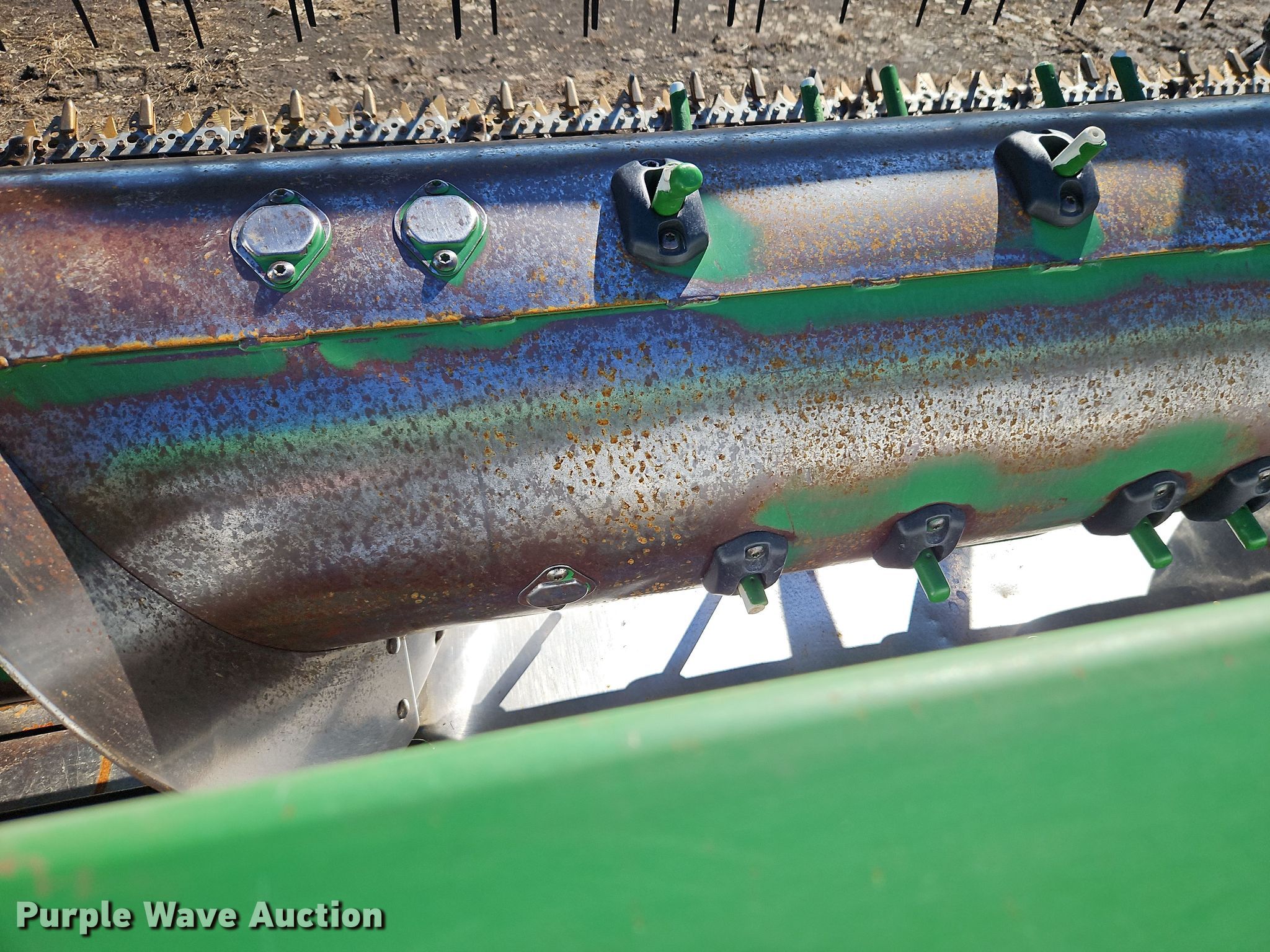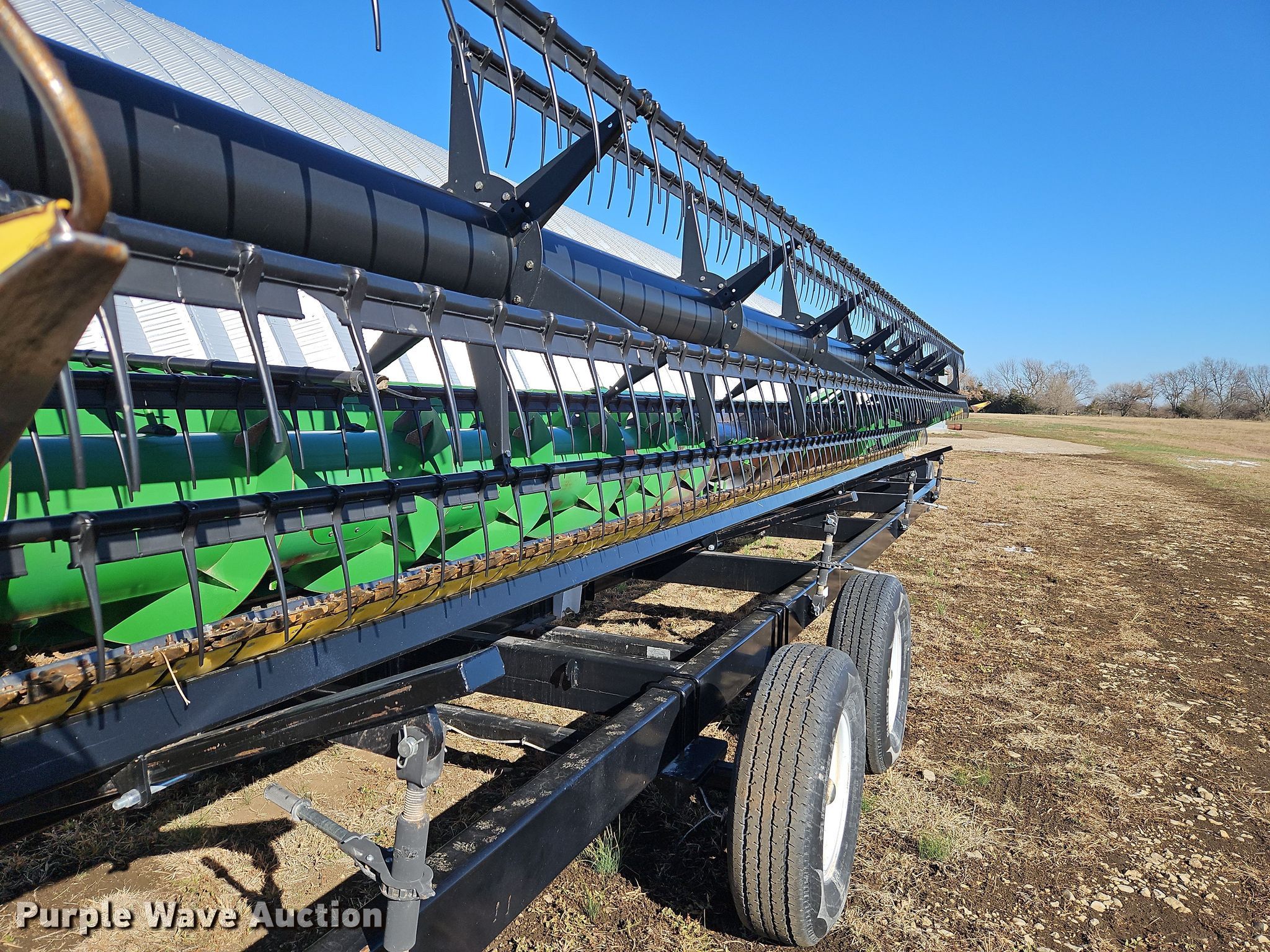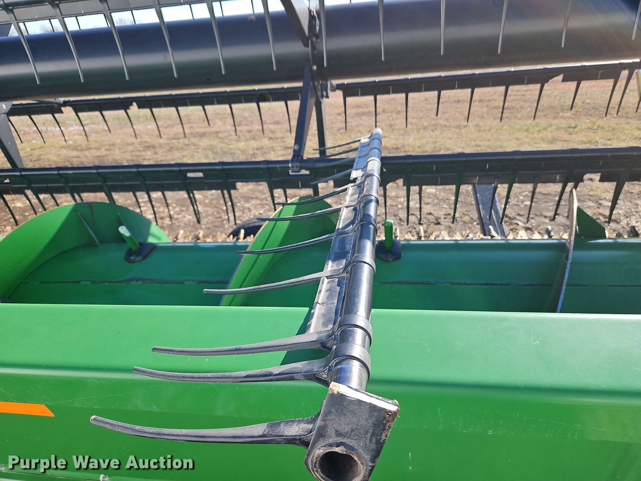 2011 John Deere 635F flex head. Serial: 1H00635FEB0742471. Features Width: 35', Reel: Finger Hydraulic fore/aft, Hydraulic reel height control, Skid plates: Poly, Single point coupler, Drivelines: Single, Full finger auger. Notes Trailer not included, Reel needs repairs. Iola , KS 66749