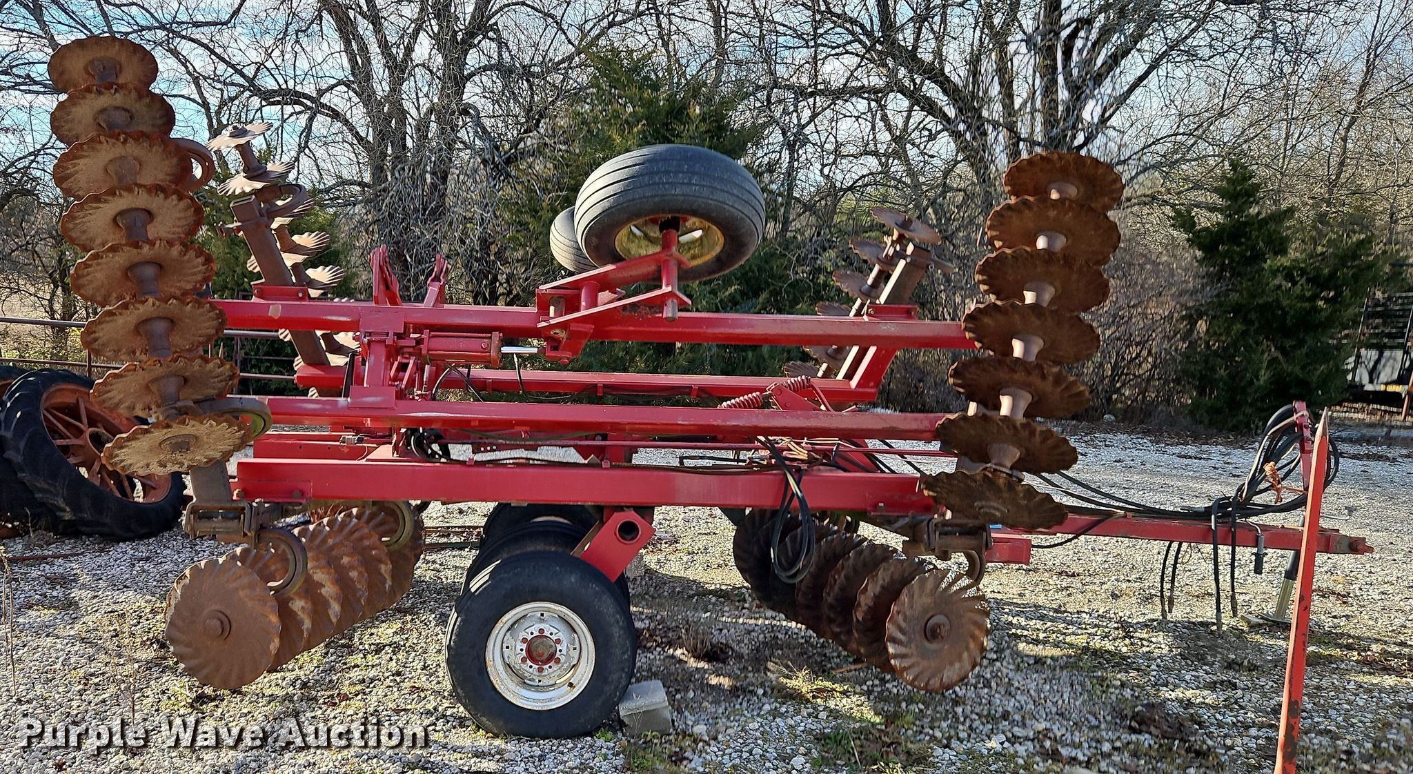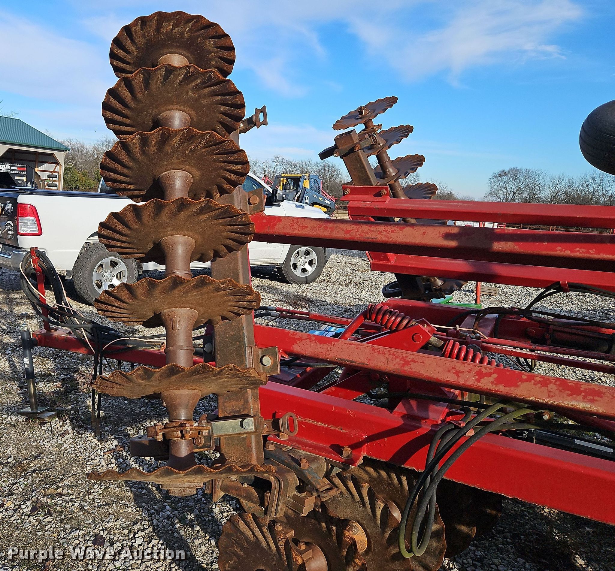 Case 496 double off-set disk. Overall width: 22', Serial: C470000U046497. Features Front blades Diameter: 20", Spacing: 9", Rear blades Diameter: 20", Operation Hydraulic lift, Hydraulic fold, Leveler: Manual, Attachments Rear hitch, Coulter disks, Additional bearings included. Tires Tire size: 11L-15. M&A Farms. 4058 West 271st Street. Louisburg, KS 66053