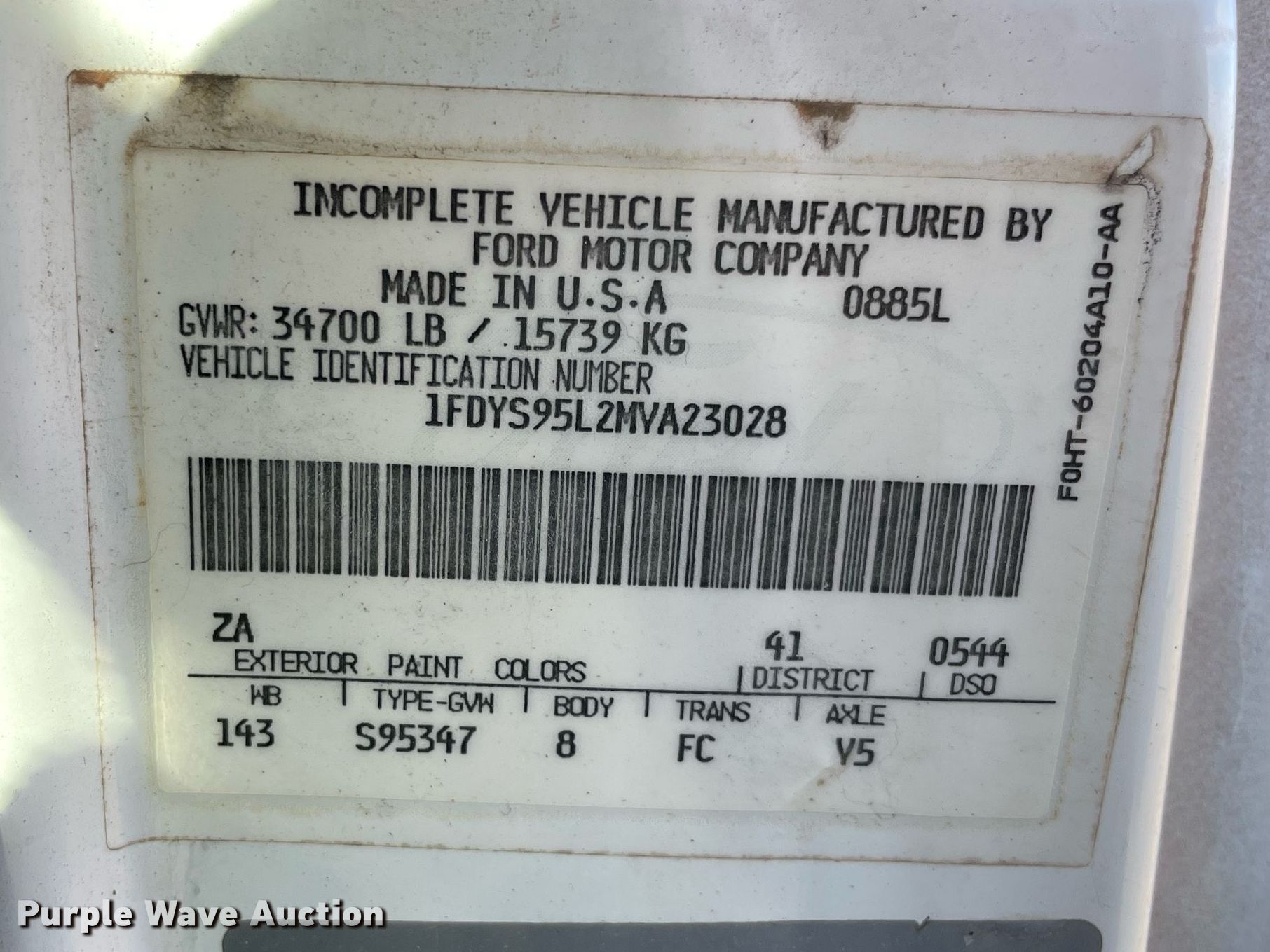 - VIN: 1FDYS95L2MVA23028