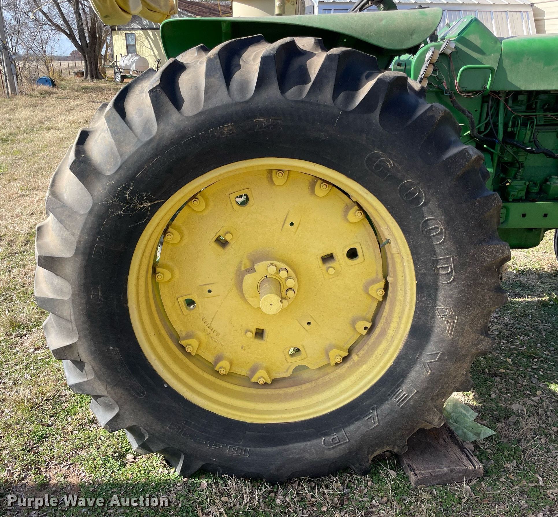 1963 John Deere 4010 tractor. Hours: 430 on meter, Serial: 21T39092. Engine Cylinders: 6, Fuel type: Diesel. Transmission Synchro, 8F - 2R. Features PTO: 540, Three point, Hydraulic remote sets Rear: 2. Tires Front: 10.00-16, Rear: 18.4-38. Notes Non-operational unit. 27502 East County Road 1660. Elmore City, OK 73433