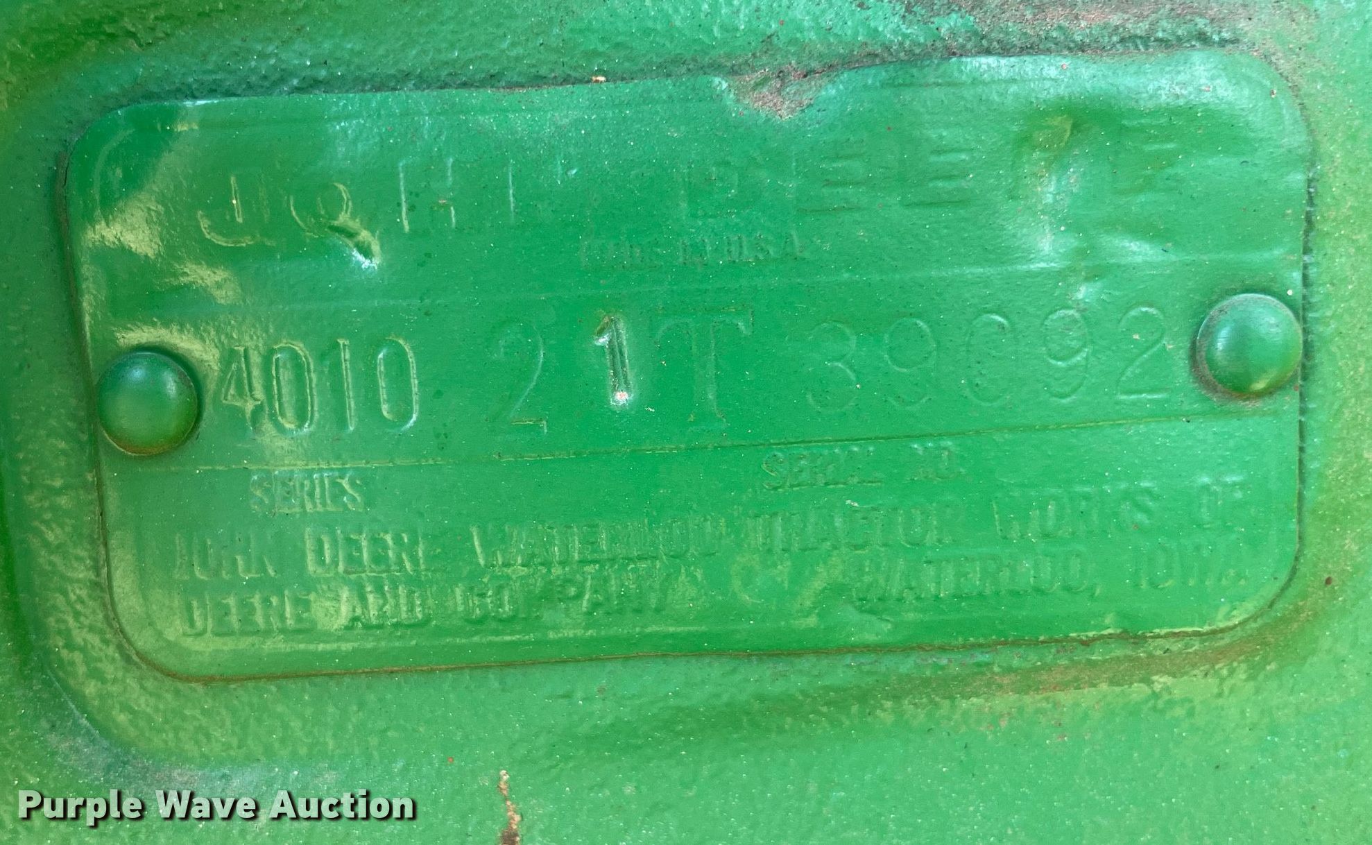 Purple Wave is selling a used Tractor in Oklahoma. This item is a 1963 John Deere 4010 tractor with the following: Hours: 430 on meter, Serial: 21T39092