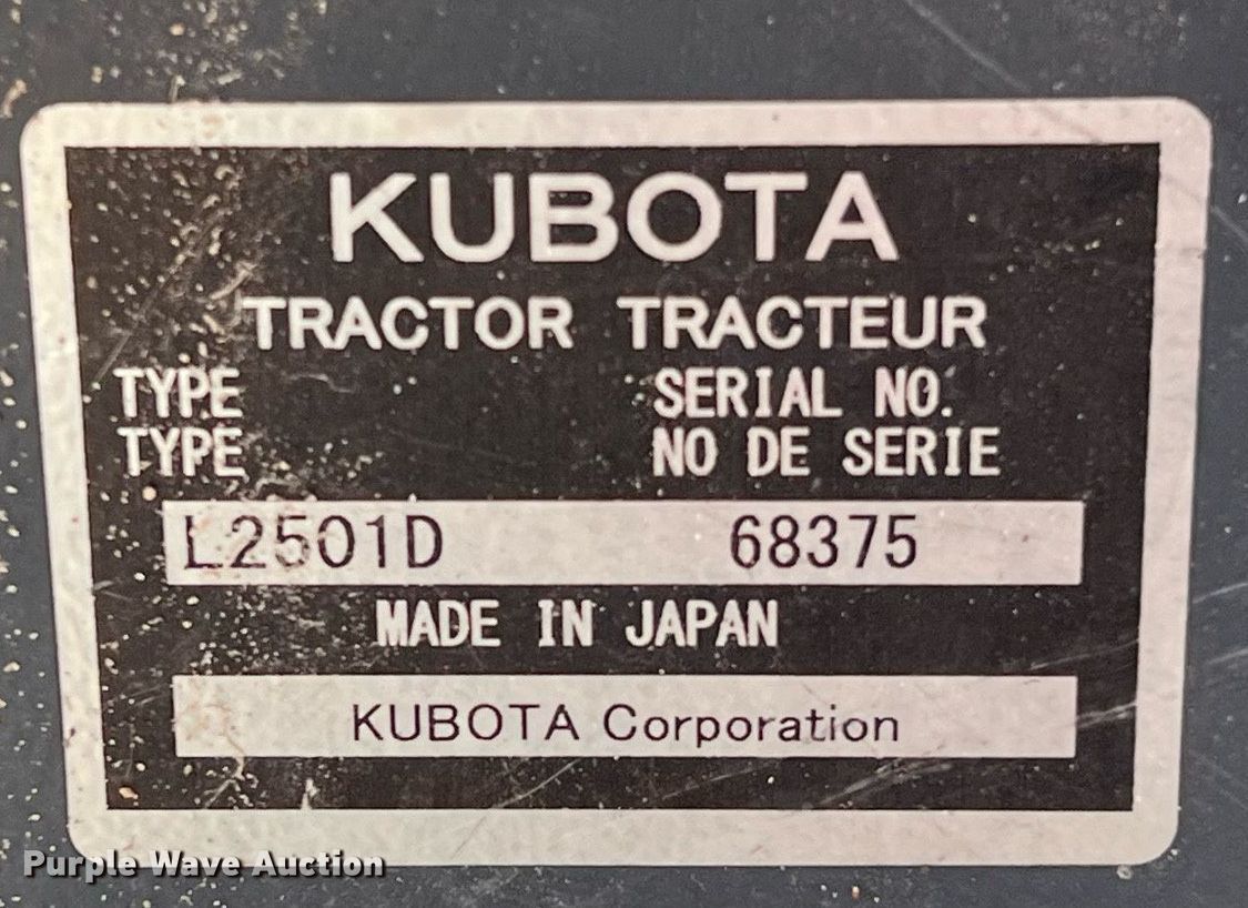 Purple Wave is selling a used Tractor in Texas. This item is a 2017 Kubota L2501HST MFWD tractor with the following: Hours: 358 on meter, Serial: 6837, Unit #: D71023