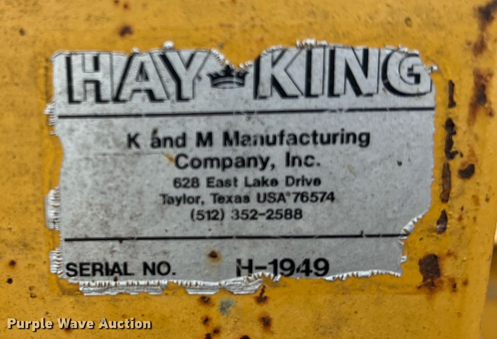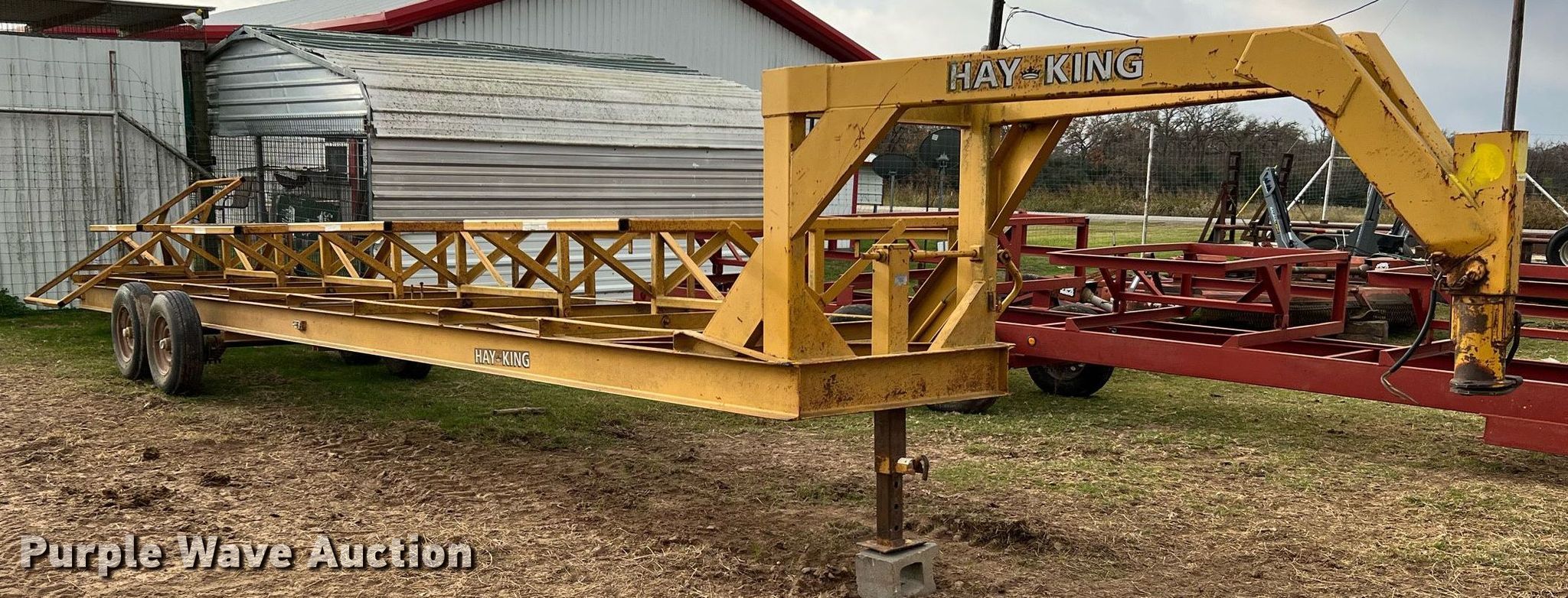 Purple Wave is selling a used Hay Handling in Texas. This item is a Hay King hay bale trailer with the following: VIN: H-1949