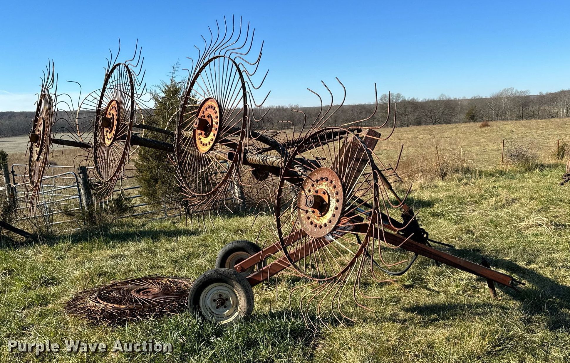Purple Wave is selling a used Hay Rake in Missouri. This item is a Vicon hay rake with the following: Serial: 4400122103