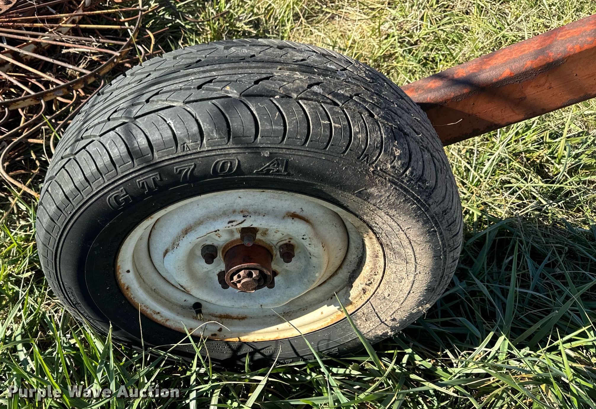 Vicon hay rake. Serial: 4400122103. Features Width: 18', Wheels: 8 Diameter: 55", Hydraulic lift, Ground driven. Tires Size: P185/70R13. Notes Thee point rake converted to pull type, (8) additional wheels, Hydraulic hoses issue, cracked. Bland, MO 65014