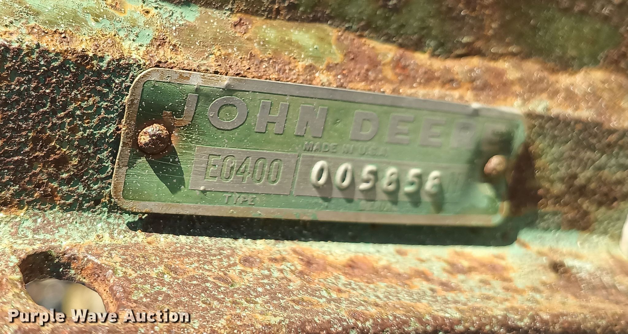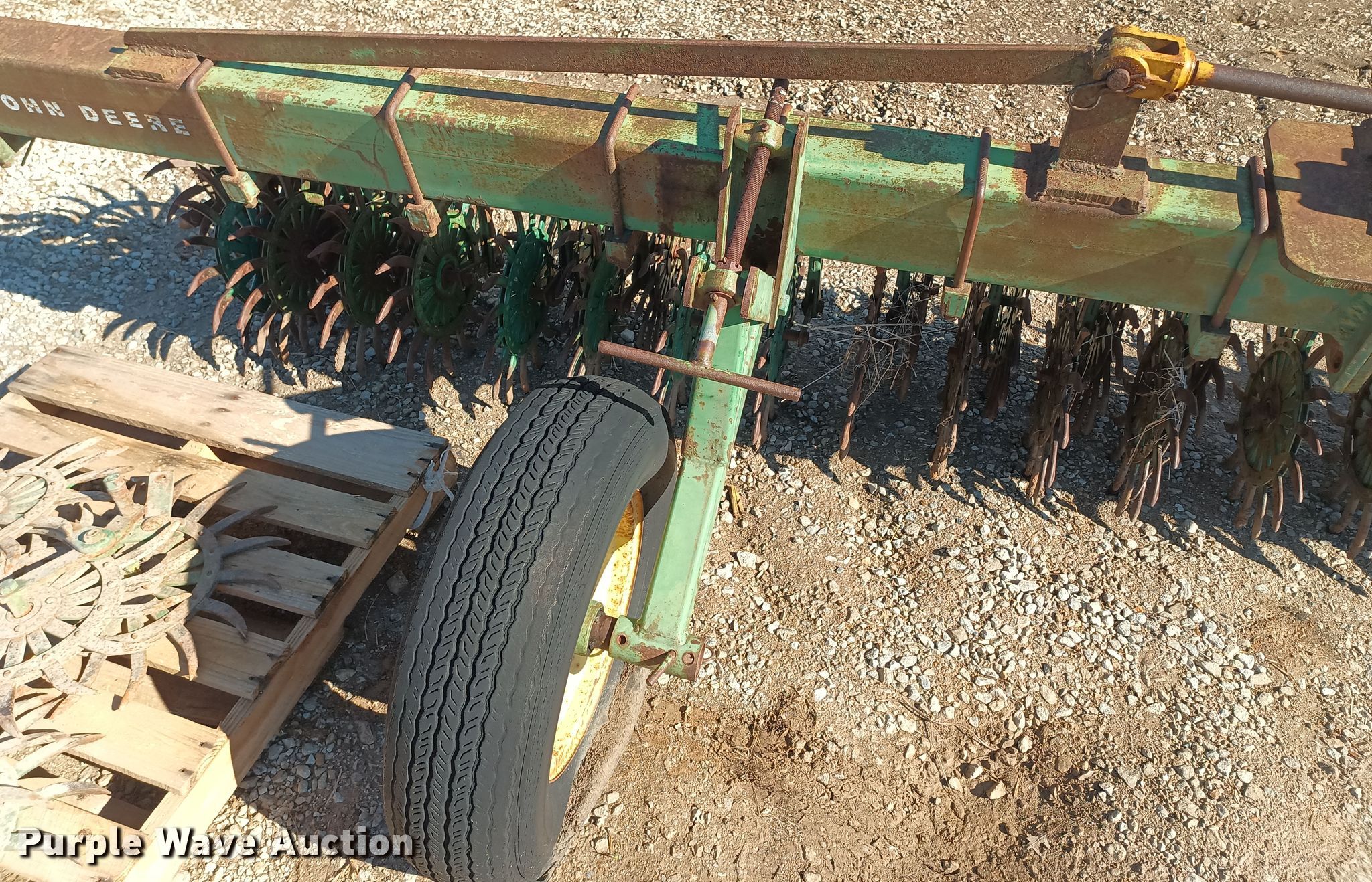 Purple Wave is selling a used Rotary Tillage in Missouri. This item is a John Deere EO400 rotary hoe with the following: Overall width: 30', Serial: 005858N