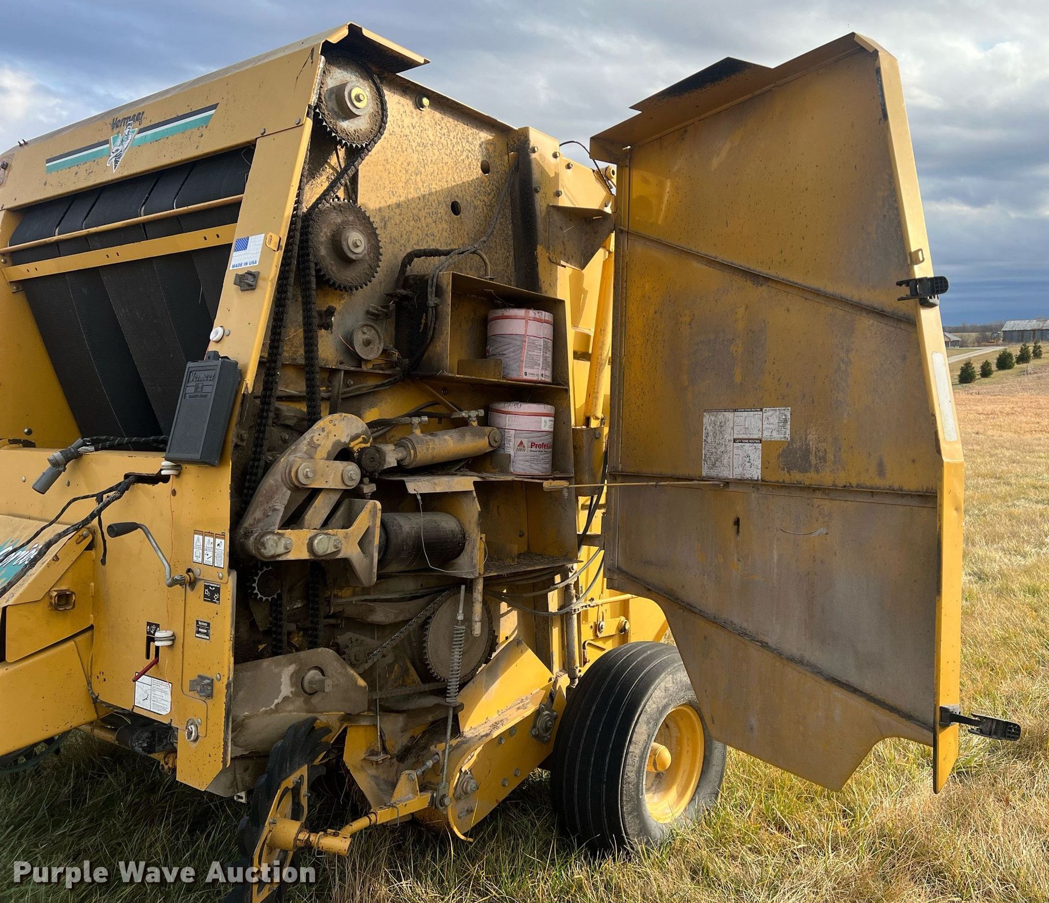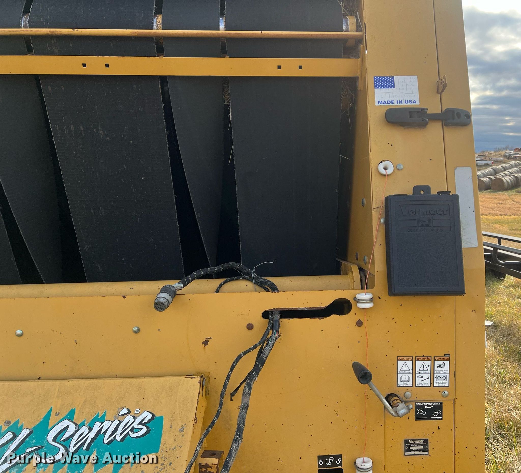 Purple Wave is selling a used Round Baler in Kansas. This item is a Vermeer 605XL round baler with the following: Bale count: 14,501, Serial: 1VRV141M011000152