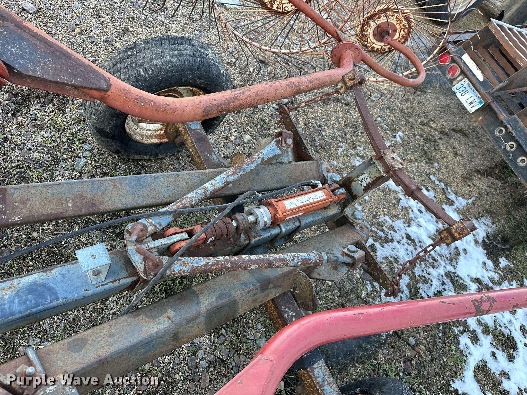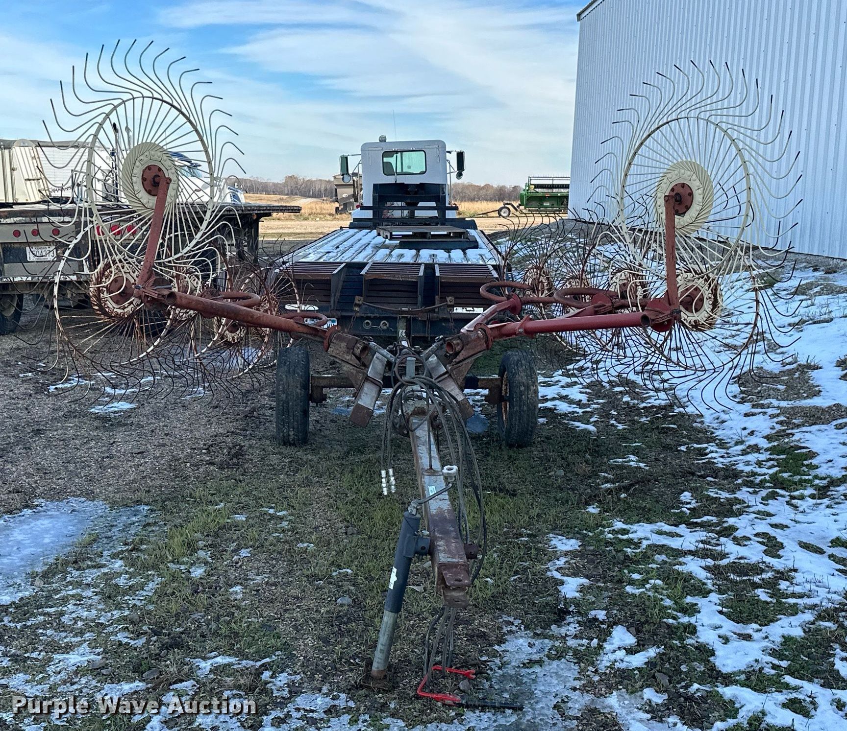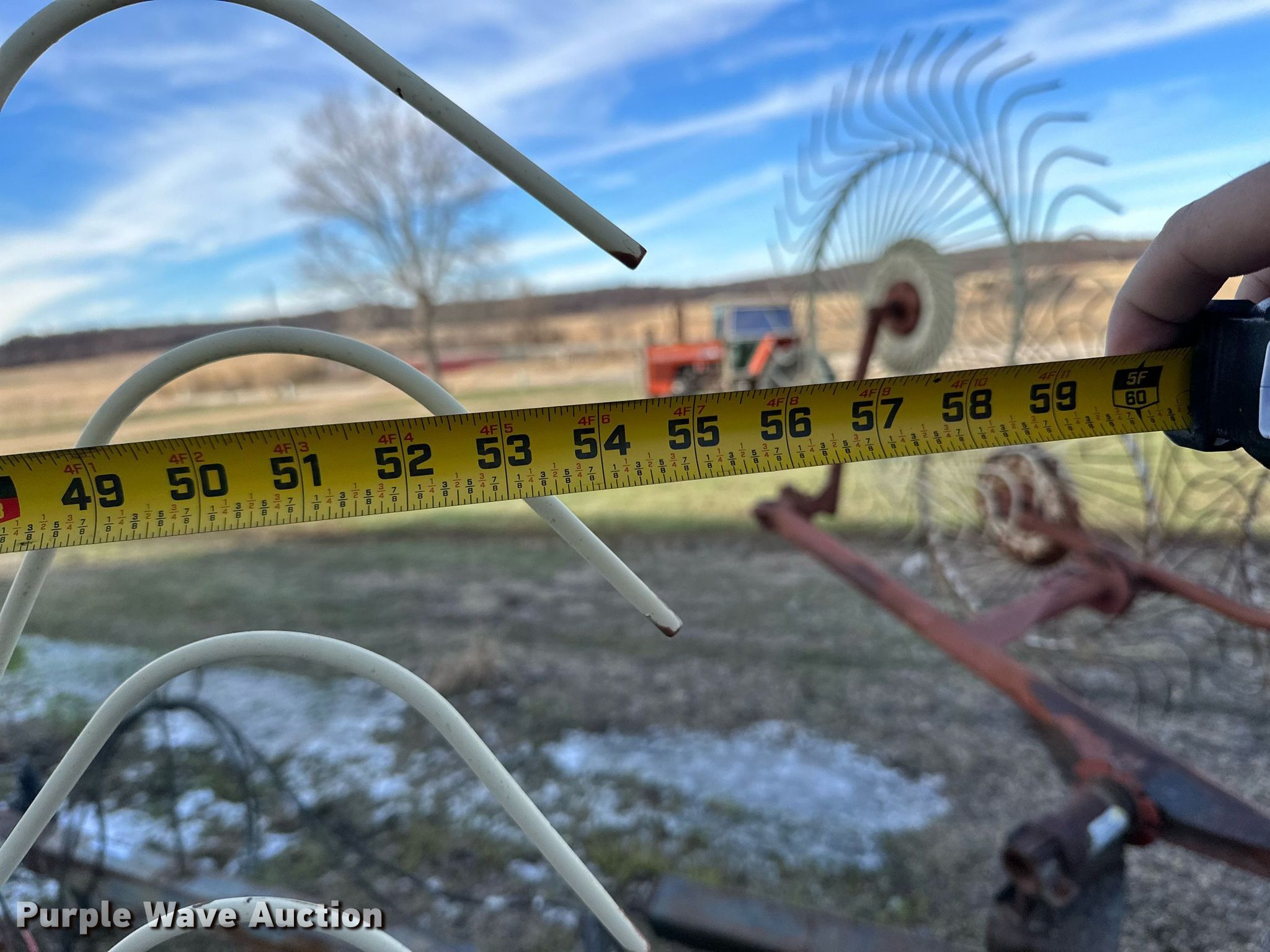 Purple Wave is selling a used Hay Rake in Kansas. This item is a OMI AGC hay rake with the following: Wheels: 10, Diameter: 55", Hydraulic lift, Hydraulic fold, Ground driven